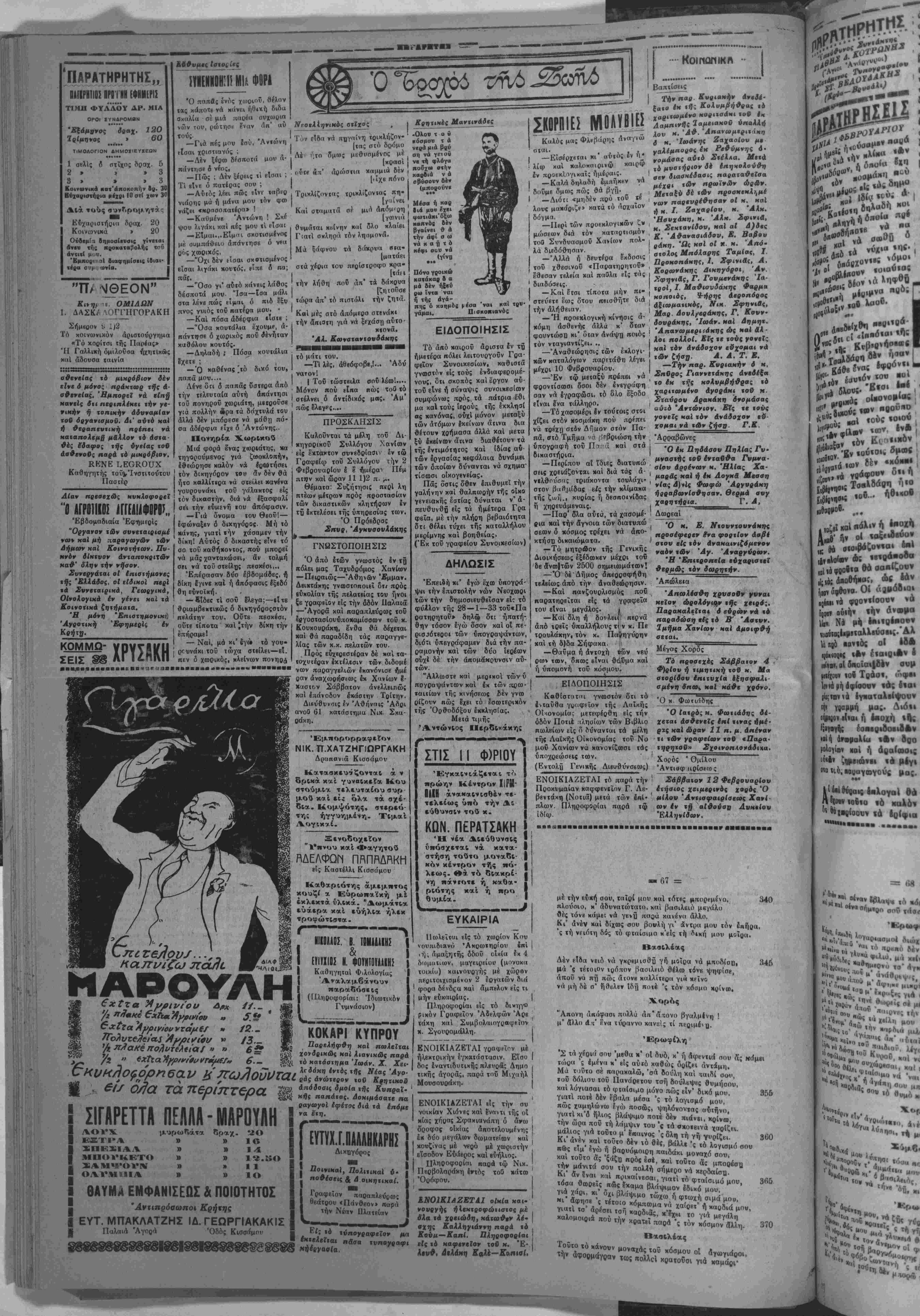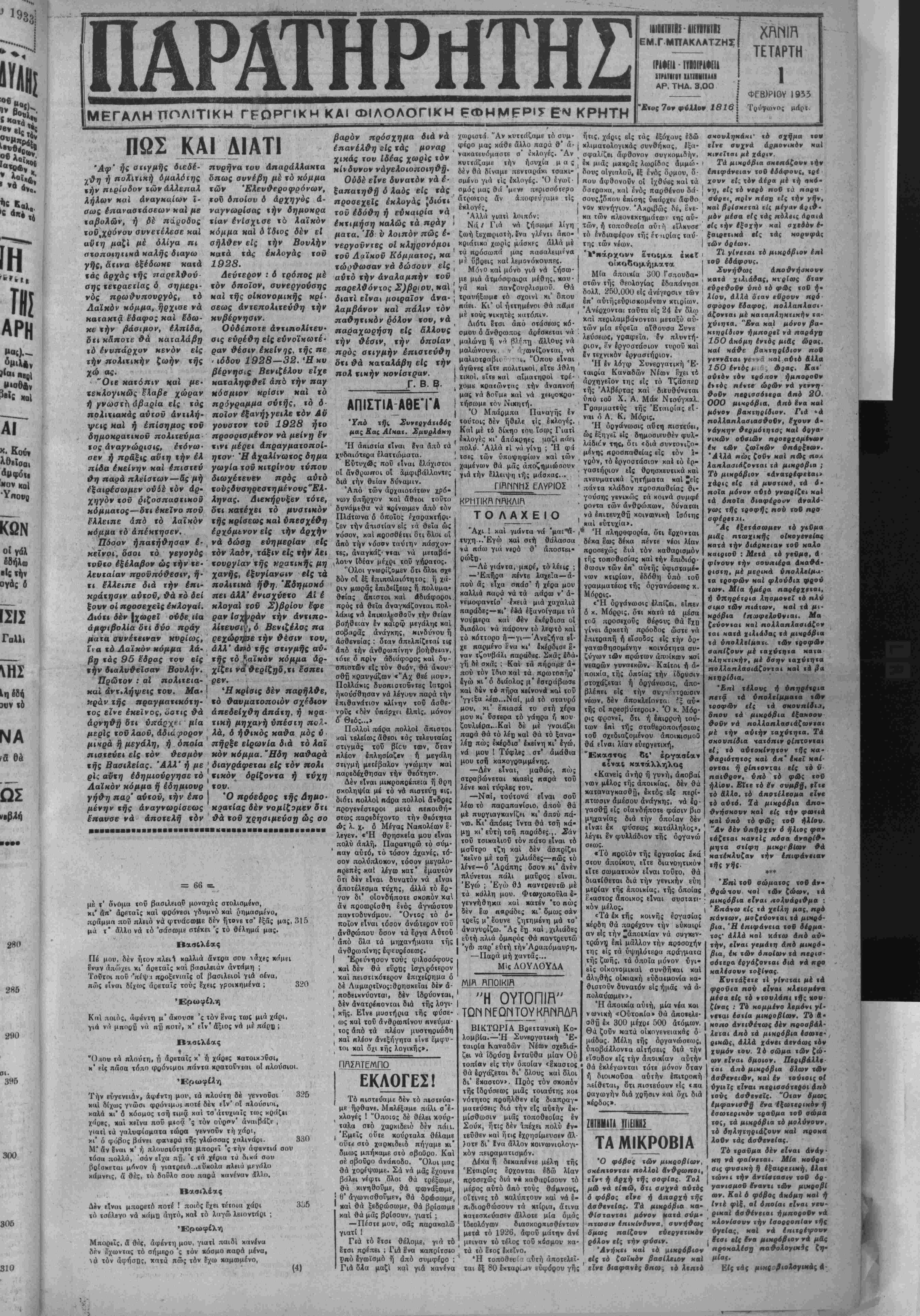 χ ι κάς τού Ιδίας χωρΐς <όν 'Λφ' ήί στιγμάς διεδέ- πνρήνα χον άπαράλλακχα κίνδυνον νάγελοιοποιηθή. χθη ή πολΐίΐκη ομαλότης όπως αννέβη μέ χό κόμμα ομ$ εχνε Ουνα,Ον νά έ- %ήν ηίρίοδον χώνάλλεηαλ ϊών Ελευθέρα φρόνων, ξαπαχη&ί} ό λαός είς χάς λήλων καί άναγκαίων ι- εοθ οποίον δ άρχηγός ά- ηροαεχεΐς εκλογάς ;διότι σως έπαναστάαεων καί μ& ναγνωρίαας χήν δημοκρα του ^ά&η ή εύκαιρία νά «αβολιδν, η δέ πάροδος χίαν ενίσχισε »ό λαϊκόν τοΰ,χρόνον συνετέλεσε καΐ κόμμα καί δ ϊδιος δέν εί αυτή μαζι μέ ολίγα πι σηλθεν είς την Βουλήν κακά χάς εκλογάς χοΰ 1928. Δεύτερον : δ χρόπος μέ έκχιμήοη καλώς χά πράγ ματα. Ίδ υ λοιπόν πώς έ- νεργοϋνιες οί κληρονόμοι χοϋ ΛαΪΗοϋ Κόμμαχος, κα τώοθωσαν νά δώαουν είς κατακιά έ"δαφος καϊ 8δω- κε χήν βάσιμον, έλπ'ιδα, δχι κάποτε Θά καταλάβπ «ό ε*Ί»πάρχον κενόν είς την πολιτικην ζωην «ής χώ άς. "Οιε κατόπιν και με· τεκλογικώς έ'λαβε χώραν γνώσις άβαρΐα είς χάς σεοποιηιικά καλης διαγω γής, Άτινα εξέδωκε καΐά χάς αρχάς χής παρελθού¬ σης νεΐραεΐίας ό σημερι¬ νάς πρωϋ'υπουργός, χό Λαϊκόν κόμμα, ήρχισε νά σεως άντεπολιτεύθη την χαμβάνον 'καΐ'πάλιν χον Ουδέποτε αντιπολίτευ¬ σις ευρέθη είς εύνοϊκωτέ- ραν θέσιν έκείνης, χής πε ' ιόδου 1928—32. ·Ηκν βέρνησις Βενιζέλον είχβ καίαληφθεί άπό την παγ ηόαμιον κρίσιν καί χό πρόγραμμα αυτής, χό δ- πολιτιακάς αυτού αντιλή- ποίον έξανήγγειλε τόν Δϋ ψεις καΐ ή έπίαημος χον γουοχον χοϋ 1928 ήτο δημοκρατικόν πολιχεύμα προορισμένον νά μείνη έ'ν χος άναγνώριαις, έχόνω- χνι μέρει άπραγμαχοποί- αεν ή πράξις αϋχη χήν έλ ηχον Ή άχαλίνωχος δημα πίδα εκείνην καϊ έπισχεύ γωγία χον κιτρίνου τύπον θη παρά πλείστων—άς μη διωχέτευεν πρός αύτό έξαιρέοωμεν ουδέ χον άρ· χούςδυαηρεαχημένους"Βλ- χηγόν χοΰ ρ'ιζοσπασχικοΰ ληνας. Διεκήρυξεν τότε, κόμματος—δχι έκεϊνο ποΰ δχι καχέχει χό μυστικόν ί'λλειπε άπό τό Λαϊκόν της κρίσεως καί ΰπεσχέ&η κόμμα χό άπέκχησεν. ερχόμενον είς την αρχήν Πόσον ήπαχή&ηοαν έ- ι νά δώστ) ευημερίαν είς κείνοι, όσοι τό γεγογός χον λαόν, τάξιν είς την λει τουτο έξέλαβον ώς χήν τε- τουργίαν τής νραχικής μη λευχαίαν προϋπόθεσιν, ή· χανής, έξυγίανοιν είς τα βλλειπε διά χήν επι· πολιχικά η"θη. Έδημοκό αΰχό χήν άναλαμηήν χον χον δηοϊον, αυνεργούσης ηαρελΰόνχος Σ)βριον, καί | γα καί πανζουρλισμού, θά καί της οΐκονομικής κρί· διατί είναι μοιραίον άνα- ; τραυηξωμε τό σχοινί χι' οπου πάβι. Κι' υί ήττημένοι θά πάμβ μέ τ ούς νικητάς κατόπιν. Διότι ετσι άπά στάσεως χό· ομού ό άνθρωπος άρέσκεται νά , μαλώνχ) ή νά βλΓ.ττ] άλλθυς νά μαλώνονν* ν" */οονίζονται, νά μαλιοτρηβιι ι. Όπον είναι ι άγώνες είτε πολιτικοί, εΐτβ άθλη Ι τικοί, βιτβ καί αίματηροί τρέ- ^ χομε κραιώντας την άναπνοή μας νά δονμκ χαΐ νά χίΐροχβο- ι τήσωμβ τόν Νίκη τή. | Ό Μπάρμπα Παναγής Ιν τούτοις 6έν ϊί,θβλε τίς έχλογές. Καί μέ ιό δίκηο τού. ϊσως Γιατί 8κλογρς κι* αποπρηες μαζί «άρι πθλυ. Άλλά τί νά γίνη ; Ή <ρά τσβς των ύποψηφίων καί των χιιμένων θά μάς άποζημιώσουν γιά την ελλβιψη τή; μάΌχας... ΓΙΒΠιΊΗΣ ΕΛΥΡΙΟΣ χωριστιί "Αν κυττάζαμε τό συμ· ήτις, χάρις είς τάς Ιξόχους ?δώ φέςο μας κάθε <5λλο παρά θ' «· | κλιματολογικάς συνθήκας, ίξ«- νακατευόμαστε σ' εκλογές. Άν σφαλίζβι άφθονον συγκομιδήν, κυττάζαμε την ήσυχία μ α ς | έκ μιας μακοάς λωρίδος αμμώ· δένθά δίναμβ ϊΐενταράκι τσακι- . δούς αίγιαλοΰ, Ι| ενός δρμου, 3- σμένο γ»ά τίς ίκλογές. Ό εγωϊ- | που άφθονοΰν οί ϊχθύβς χαί τα σμος μας θ« 'μρν? πβρισσότερο δστοακα, κι»1 ενός παοθένου δά- δτρωΐος άν αίΐοφίύ/αμβ τίς οους,'ίπου έπίσης δηάρχβι δφθο έκ