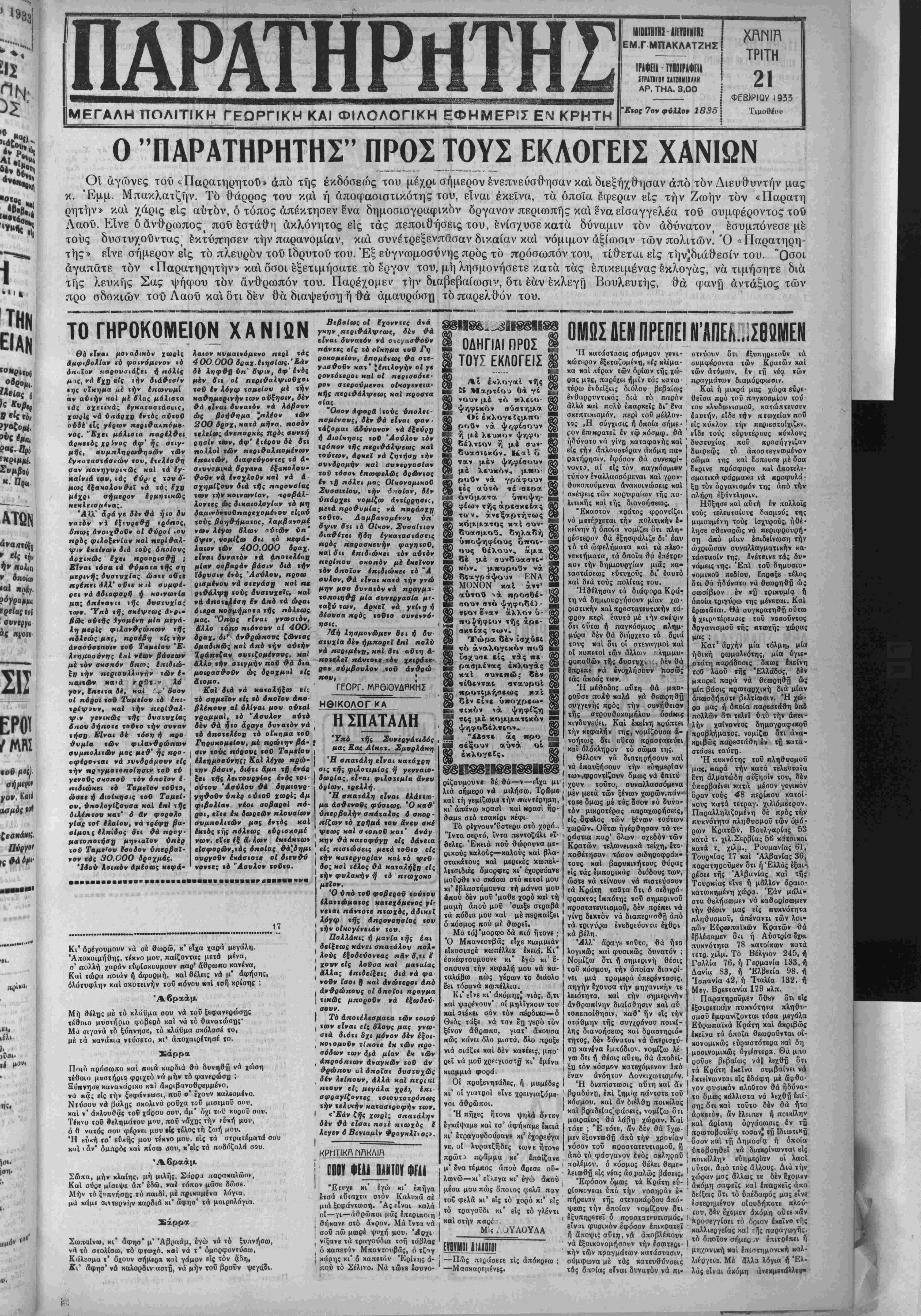 Ο "ΠΑΡΑΤΗΡΗΤΗΝ ΠΡΟΣ ΤΟΥΣ ΕΚΛΟΓΕΙΣ ΧΑΝΙΩΝ