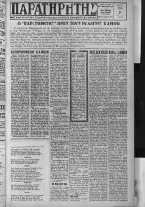 '*■< Οί άγάΥνες τοΰ «Παρατηρητο^» άπό τής εκδόσεως τού μέχρι σήμερον ένεπνεύσθησαν κα διεξήχθησαν άπό τόν Διευθυντήν μας κ. Έμμ. Μπακλατζήν. Τό θάρρος τού καΐ ή άποφασιστικότης τού, είναι έκεΐνα, τα όπσΐα έφεραν είς την Ζωήν τόν «Παρατη ρητήν» κάΐ χάρις είς αυτόν, δ τόπος άπέκτησεν δνα δημοσιογραφικόν όργανον περιωπής καΙεΎαείσαγγελέα τοΰ συμφέροντος τοΰ Λαοΰ. ΚΙνε ό ανθρωπος^ ποΰ έστάθη άκλόνητος είς τάς πεποιθήσεις τού, ενίσχυσε κατά δύναμιν τόν αδύνατον, έσυμπόνεσε μέ τους δυστυχοΰνταςι εκτύπησεν την παρανομίαν, καΐ συνέτρεξενπάσαν δικαίαν καί νόμιμον αξίωσιν των πολιτών! Ό «Παρατηρη- τής» είνε σήμερον είς τό πλευρόν τού ίδρυτου τού. Έξ εύγνωμοσύνης πρός τό πρόσωπον τού, τίθεται είς τήν]διάθεσίν τού. "βοοι άγαπατε τόν «Παρατηρητήν» κάΐδσοι έξετιμήσατε τό έργον τού, μή λησμονήσετε κατά τάς επικειμένας εκλογάς, νά τιμήσητε διά τής λευκής Σας ψήφου τόν άνθρωπον τού. Παρέχομεν την διαβεβαίωσιν, δτι εάν εκλεγή Κουλευτής, θά φανή άντάξιος των προ σδοκιών τοΰ Λαοΰ καΐδτιδέν θά διαψεύση ή θά άμαυρώση τό παρελθόν τού. * »ΜΙΗ·ΙΚΊ1ιΊΗΗ « «Ι ρΗΜΙΙΤΚΊτττΠ·™ Η ■Ι>ΙΙΐαΗΜΜ|ΙΜΗΙ·Ι1Ι.ΙΠιΤΙΙΐηηΗΙΗΙ|ΙΐυΐΗΙ1ΙΜ·Ι