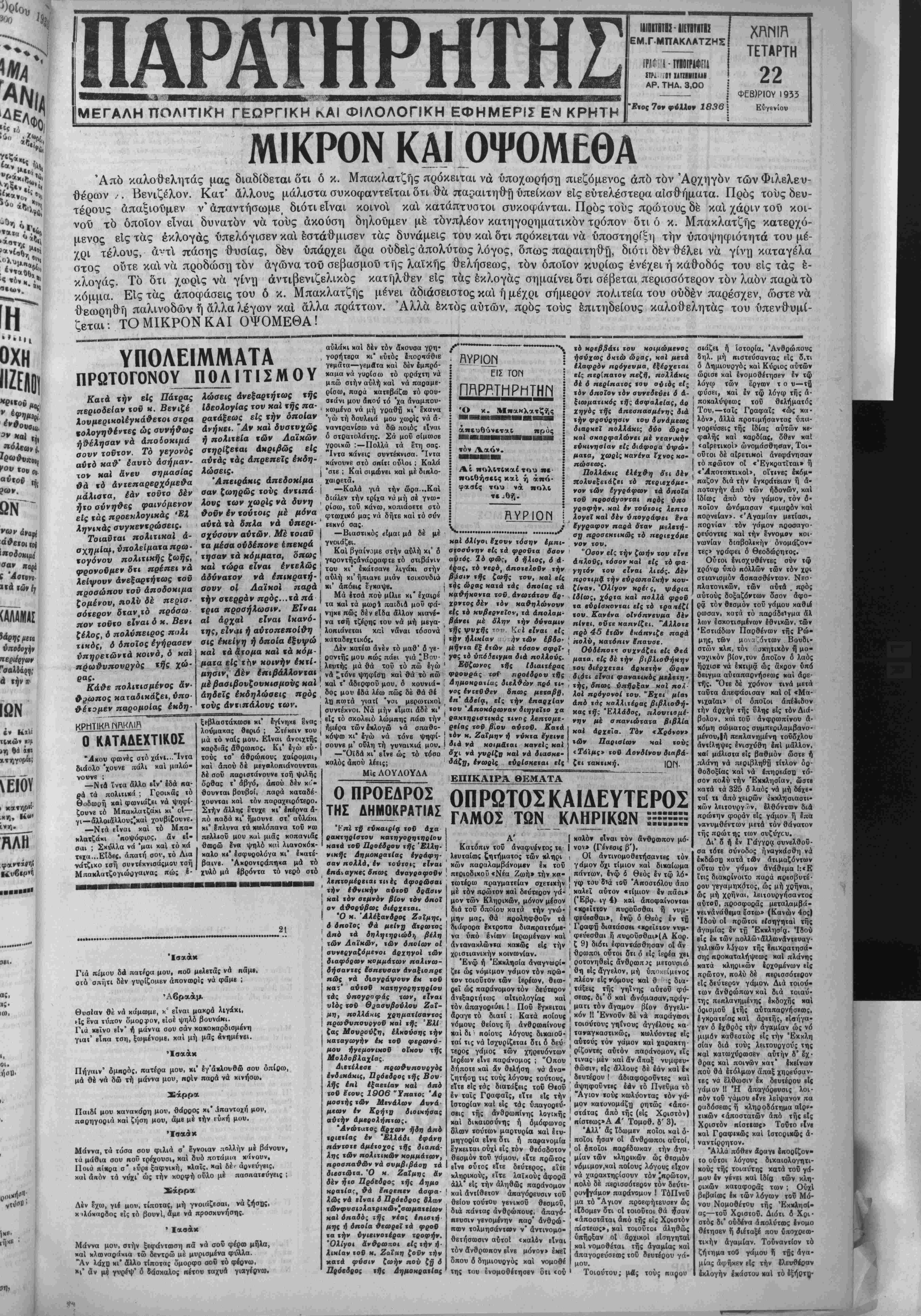 ΜΕΓΑΛΗ ΠΟΛΙΤΙΚΗ ΓΕΩΡΠΚΗ ιΑΙ ΦΙΛΟΛΟΓΙΚΗ ΕΦΗΜΕΡΙΣ ΕΝ ΚΡΗΤΗ