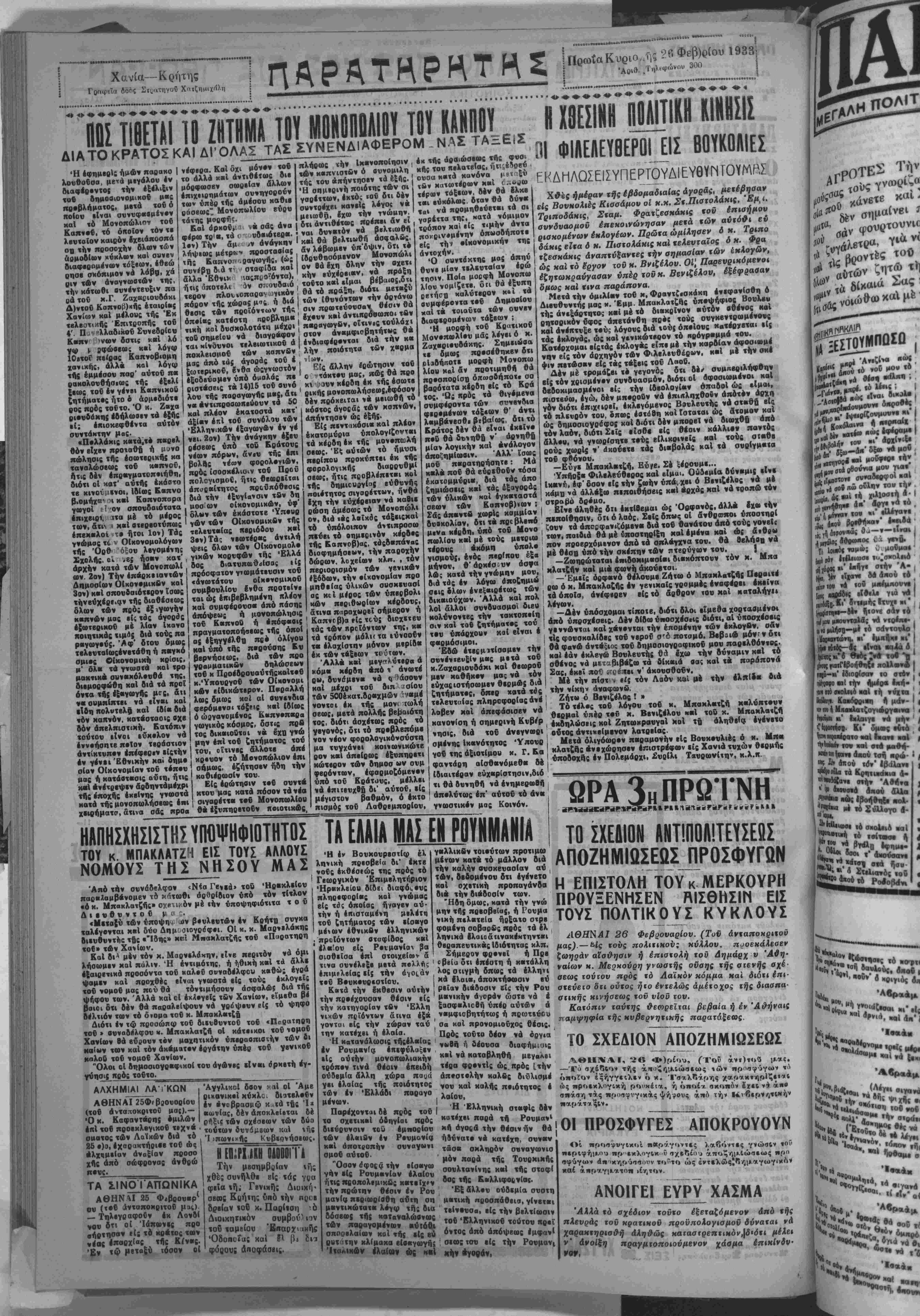 26 Φεβρουάριον. (Τοϋ άνταποχραοΰ