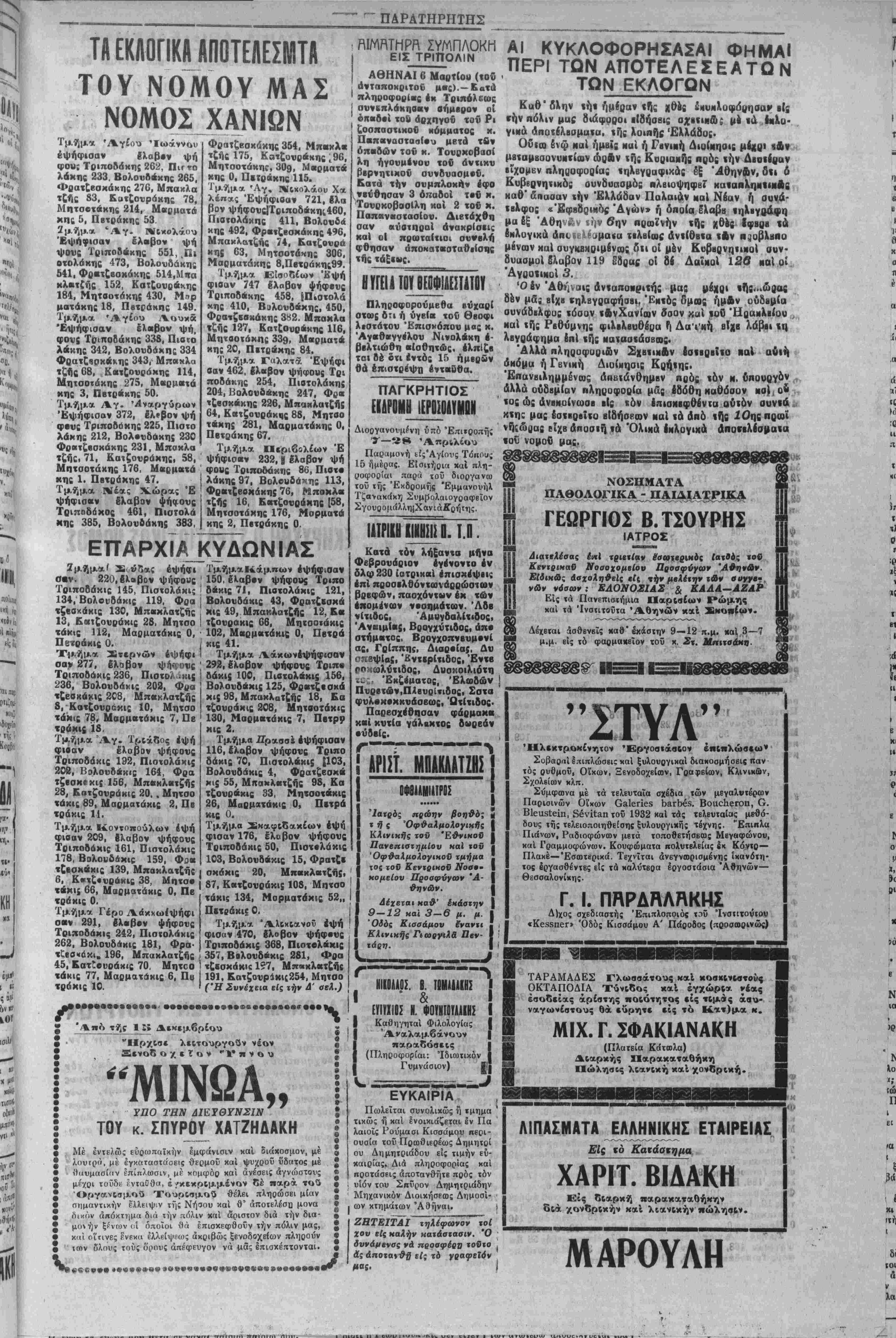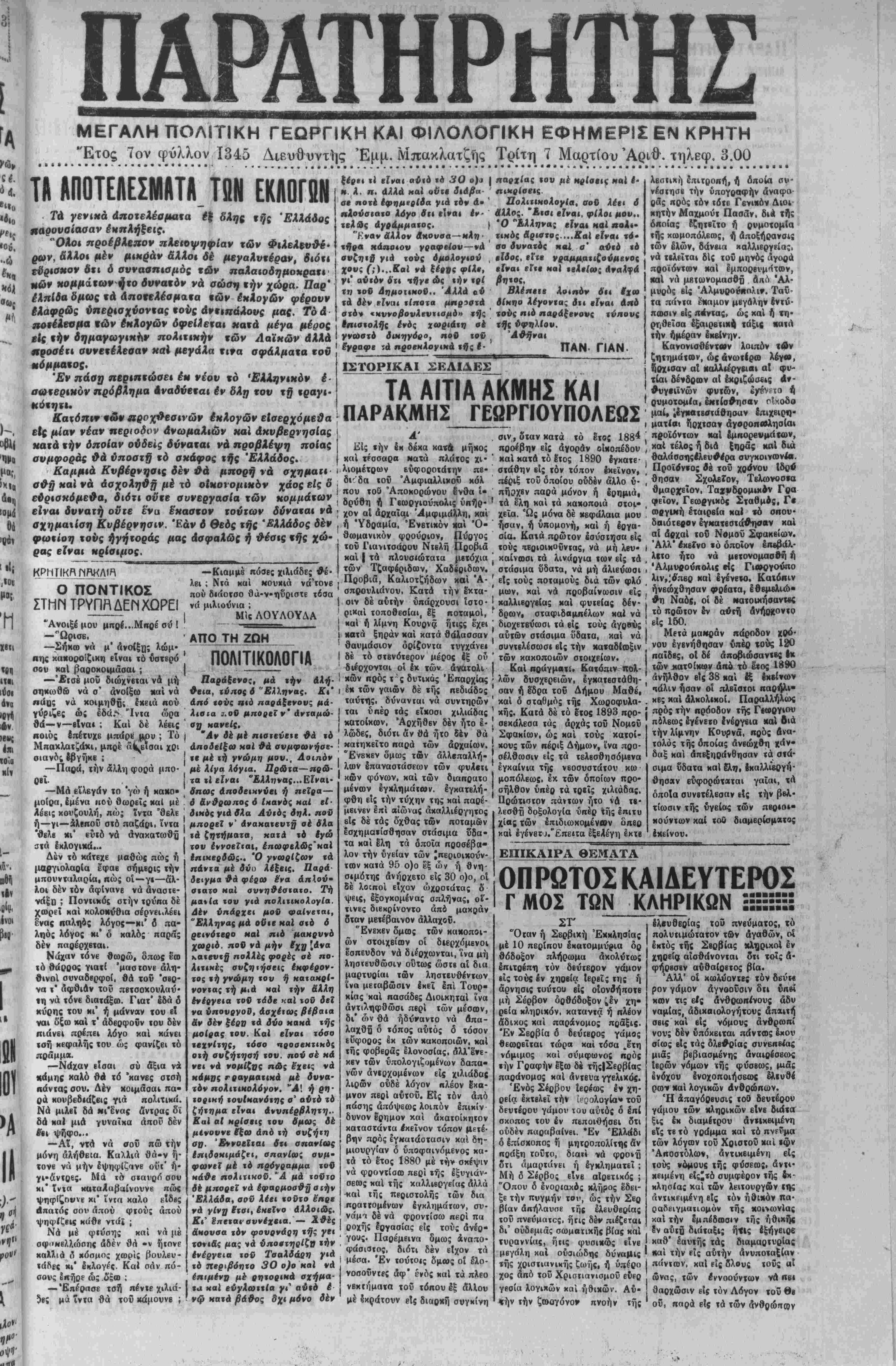 Έχος 7ον φύλλον 1345 Διευθυντάς Έμμ. Μπακλατζής Τρίτη 7 Μαρτίου Αριθ. τηλεφ. 3.00