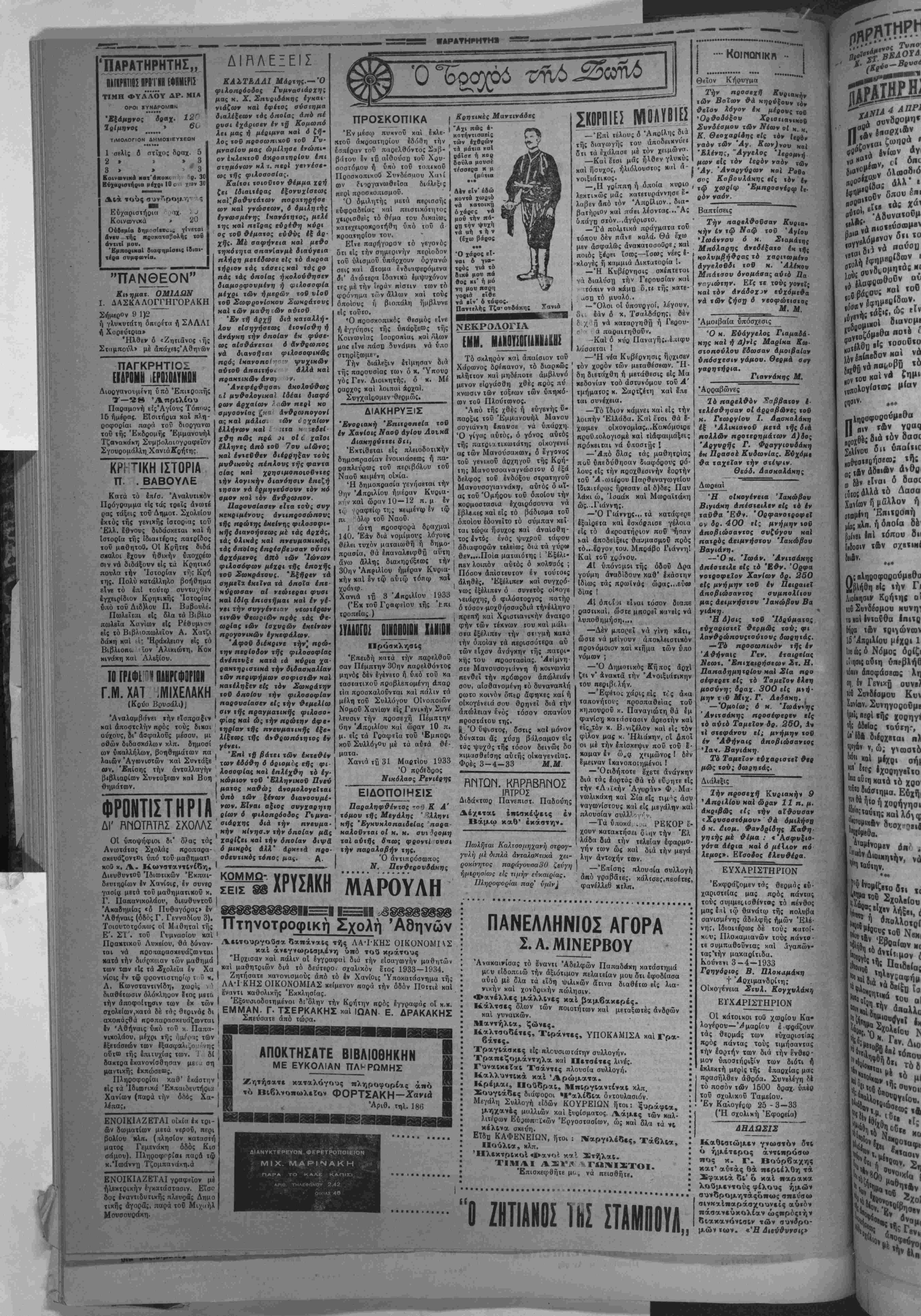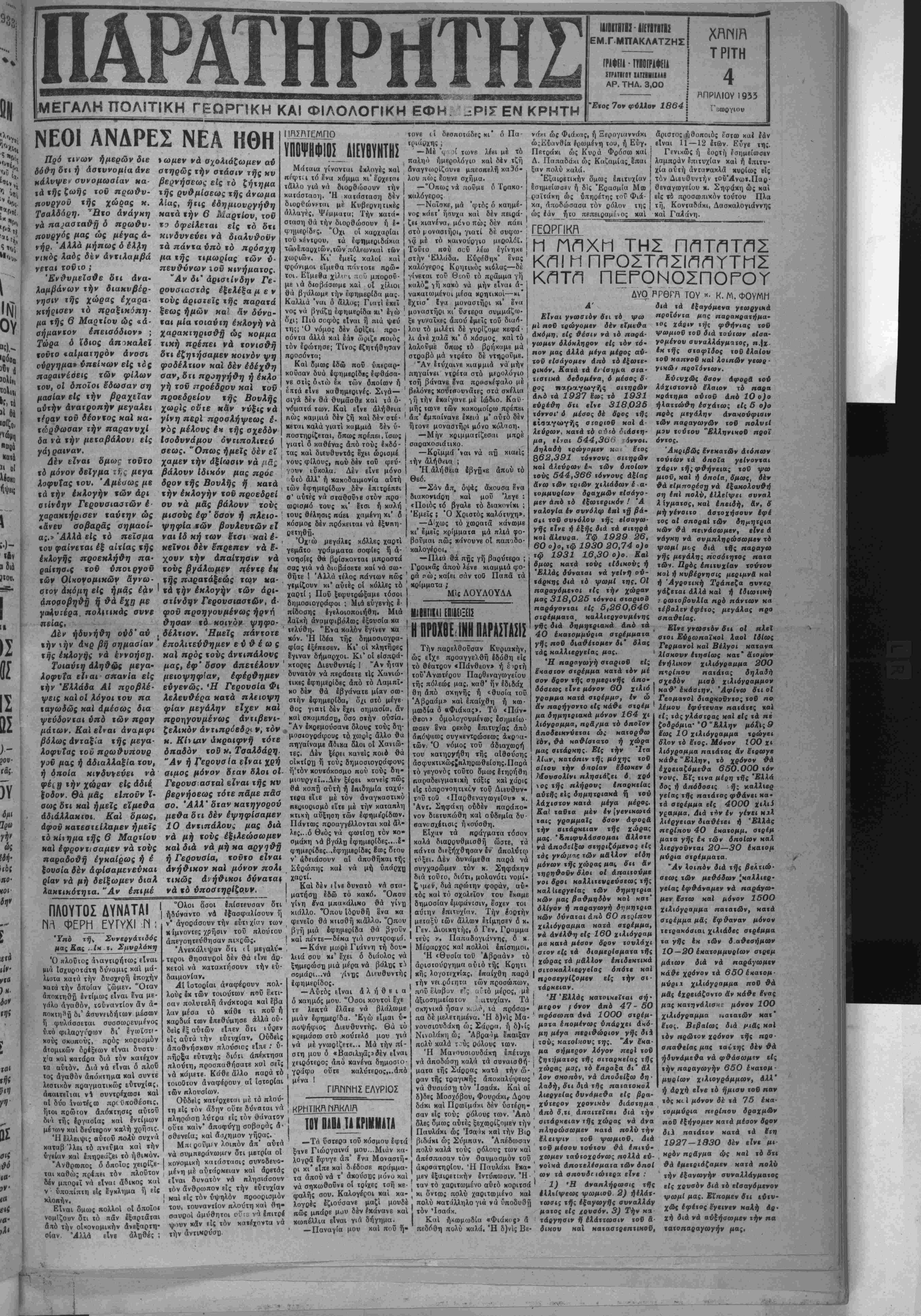 ραίτηο<ς τού ϋποιργοϋ τους βγάλωμεν πέντε έμ χών ΟΙκονομιχών &γνω- τής παρατάξεως των «α¬ σίαν άπόμη είς ημ^ς εάν ' χά %ήν εκλογήν χών όρι- άποαοβη&τ] η θά έχη με σιίνδην Γερονσιασχών, ά- γαΐ,υιέρα,. πολιτικάς συν ε φοϋ προηγουμένως ήρνή πείας, Θησαν χό κοινόν ψηφο- Δέν ηδυνήθη ούδ'αύ , δελτίον. "Ημείς πάν τ ότε χήν χήν άπρ βή σημασίαν ' έπολιτεύ&ημεν ε ϋ θ έ ω ς χής έκλογής νά εννοηθή, χαΐ πρός χούς άντιπάλονς Τοιαύτη άληθφς μέγα· μας, έφ' όσον απετέλουν λοφνϊα εί* αι σπανία είς μειοψηφΐαν, έφέρΰημεν την Έλλάδα ΑΙ προβλέ- ευγενώς. Ή Γερουαία Φι ψεις καΐοί λόγοι χου πά λελενΰέρα καχά πλειοψη χαγωδώς καϊ άμέοως δια φίαν μεγάλην είχεν καί ψεύδονται υπό χών πραγ προηγουμένως άνιιβενι- μαΐων. Και είναι άναμφι ζελικόν άντεπροεδρι ν, χον βόλωςάνταξία χής μέγα- η. Κίιιαν άκραιφνή τόχε λοφνΐας χον πρω&νπουρ όπαδόν χοϋ κ. Τσαλδάρη γ ου μας ή άδιαλλαξία τού, Αν η Γερουοία είναι χρή η δηοία κινδυνεύει νά αιμος μόνον διαν δλοι οί νΠΟΨΗΦΙΟΪ ΛΙΕΥΘΥΗΤΗΣ Μάταια γίνονται ίχλογές χαί φ ΐό 2νι» χόμμα κι' άρχεται τδλλο γιά νά διοοθώσουν την καιάσταοη. Ή κατάσιαση δέν διοοθώνεται μέ Κυβερνητικές άλλαγες, Ψίμμαΐα; Την χατά- σταση θά την διορθώσουν ή I- φημβρίδες. "Οχι οί καρχαρΐαι τοΰ χέντρου, τα εφημΕριδάκια τάνεπαοχιών,τώνπόλεωνκαί των χωρίων. Κι' ?μϊΐς καλοί καΐ φρόνιμοι είμεθα πάντοτβ ποώ- τοι. Εϊμβ§α χίλκ ι τι ΰ ϋ ά διοβάσωμε καί τονε (ϊ δίσποτάδβς κι' ό Πά τςιιάρχης, — Μβ % >ί τωνβ λέ^ι μέ τό