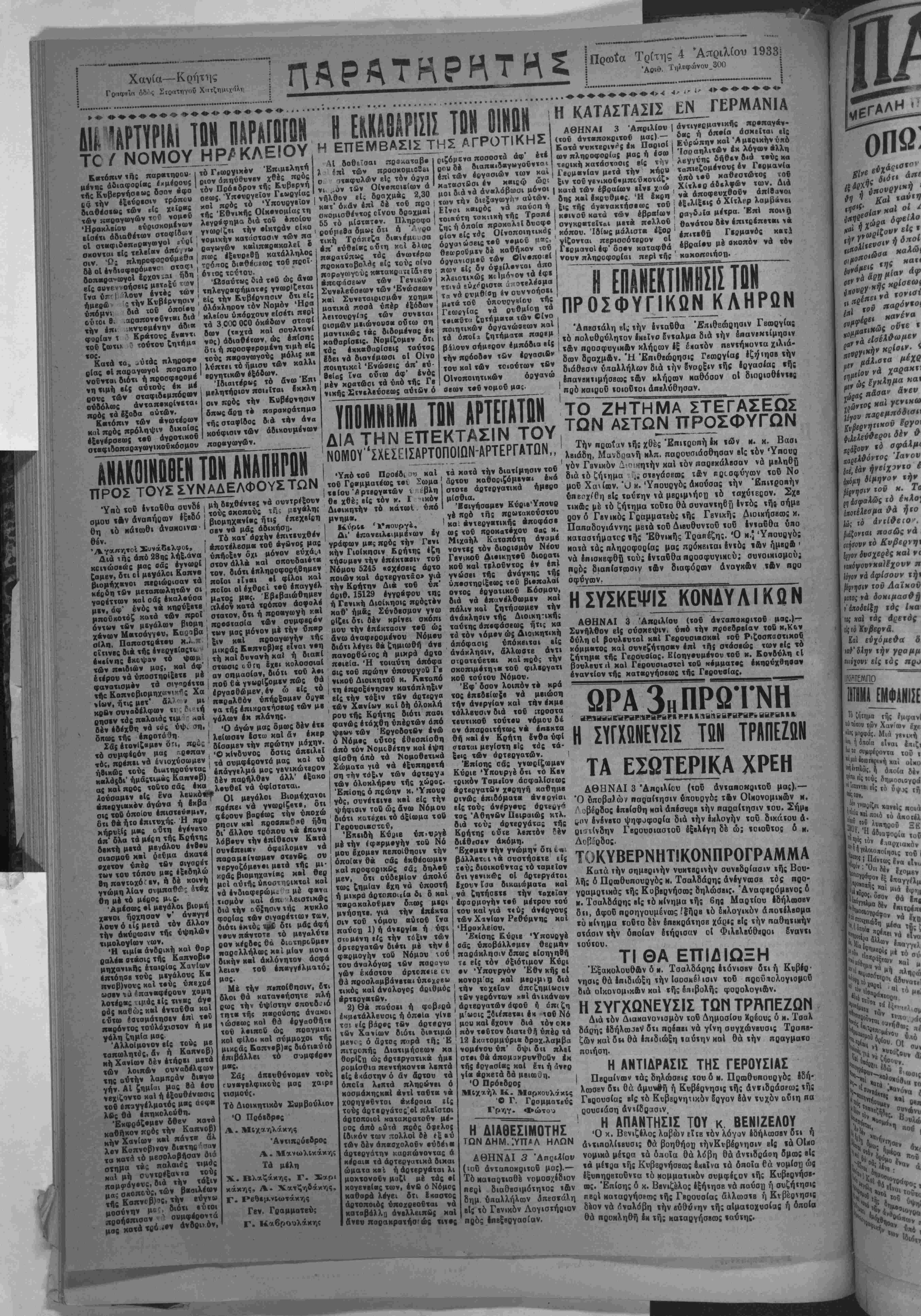 ηερΐ διαθβσιμότητος <&ν 8ημ. ύπαλλήλοον Λπβστάλη βΐς τό Γβνικόν Λογιστήριον πρός Ιπβξβργασίαν. 0ΡΑ3ηΠΡ2ΓΝΗ ΛΈΆΛ9Λ*Λ9<ΑενΐΈΛΨΛΖ% Μ» »»ΒΛΒΒ»ΙΒ»·ΒΚ ΒΒΡΒ·»» II Η ΣιΓΧβΝΕΪΣΙΣ_ΤίΜ ΤΡΛΠΕΖ8Ν ΤΑ ΕΣΩΤΕΡΙΚΑ ΧΡΕΗ ΑΘΗΝΑΙ 3 Απριλίου (τοΰ ανταηοκριιου μας).— Ό ύποβαίών παραίτησιν ύπουργό; τλν ΟΐΝονομιχών ν. Ρ οβέρΒος ίπβίσθη καί άπίσυρβ την παραίτησιν τού. Σήμε ^ον ένένβτο ψηφϋφορία διά την Εκλογήν τοΰ δικάϊου ά- ρΐίΐίνδην Γβρουσιαστοϋ έξελίγη δέ ώ: τοιούτος δ μ. Δοβίρδος. ΤΟΚΥΒΕΡΝΗΤΙΚΟΝΠΡΟΓΡΑΜΜΑ Κατά την σημβρινήν νυχτβρινήν συνβδρίασιν τής Βου- λής 6 Προοθυπουργός ν. Τσαλδάρης ανίγνοοσΒ τος προ- γραμρτΐΜΟς τής Κυβιρνήσως δηλώσβι;. Άναφβρόμενος δ μ. Τσαλδάρης αίς τό Μίνημα τής 6ης Μαρτίου Ιδήλαοσβν διι, Αφοδ προηγουμένως ?|ϊ|ρβ (ό έκλογικόν αποτϊλβομα «ό ιιίνημα τουτο δέν έπΒκράτησε χάρις β(ς την παθητΐΝην στάσιν την οποίαν Βτήρισαν οί Φιλβλβύθβροι δναντι τούτου. ΤΙΘΑ ΕΠΙΔΙΩΞΗ Εξακολουθών δ μ. Τσαλδάρης ετόνισεν δτιή Κυβέρ¬ νησις θά Ιπιδιώξη την Ισοσκέλισιν τοδ προϋΊιολογισμοΟ διά οίκονομ<κδ»ν καί τής έηιβολής φορολογίαν. Η ΣΥΓΧΩΝΕΥΣΙΣ ΤΟΠ ΤΡΗΠΕΖΩΜ Διά τόν Διακανονισμόν τοδ Δημοσίου Χρέους δ ν. Τσαλ δάρης ΙΒήλοοαβν δτι ηρβαβι νά γίνη συγχώνβυσις Τραπβ- ζών καί 5η θά επιδιώξη ταύτην χαΐ θά την πραγμανο ποιήση. Η ΑΝΤΙΔΡΑΣΙΣ ΤΗΣ ΓΕΡΟΥΣΙΑΣ Πβραίνον τάς δηλώσΒΐς τού δ μ. Προαθυπουργός Ιδή* λωσβν δτι Θά Αμυνθή ή Κυβέρνησις τής άνΐιδράσκο; «ής Γερουσίας βίς τό Κυβερνητικόν δργον εάν τυχόν αΰιη πά ρουοιάση άνιίδρασιν Η ΑΠΑΝΤΗΣΙΣ ΤΟΥ κ. ΒΕΝΙΖΕΛΟΥ Ό κ. Βενιζίλος λαβών εΤϊβ ΐόν λόγον εδήλωσαν δτι ή άντιηολίτβυοι; θά βοηθήση ιήνΚνβέρνησιν &|ς τα ΟΙχο νομικά μέτρα τα όηυΐα θά λοβη θά αντιδράση δμως &1ς τα μίτ^α τής Κυβδρνήσβω; δ«»Ινα τα δηοΐα 6ά νσμ(στ) ώς έξυπηρΒΤοΟντα τό κομματικήν συμφ£(ον *ής Κυββρνήσβ- ως. Έπίσης δ κ. Ββνιζέλος Ιξήτησε νά «ταύσΐ] ή συζήτησις ηβοΐ καταργήσ»—; τής Γβρουσίας αλλωοτΒ ή _ιρερ>ηι>ι«