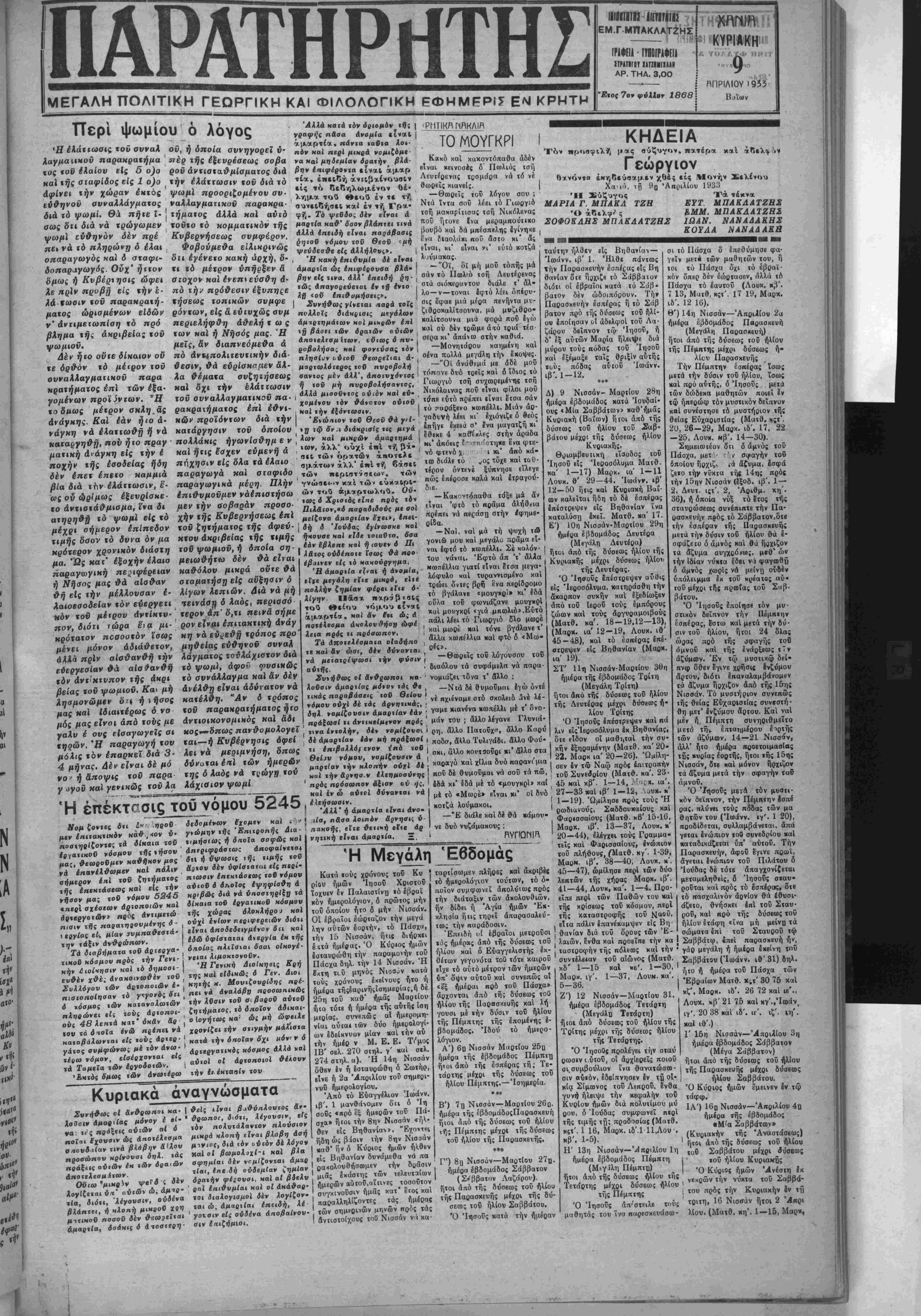 πρότερον χρονικόν διάστη τοθ ψωμιοΰ, ή δποία ση· , ίαν έ'^λεπε κοί ή<ονεν δ μα. Ώς χαι' εξοχήν έλαιο μειω&ήχω δέν θά είναι' ^χοςούδίηοχΜ ϊοως θά παραγνογιχή περιφέρειαν καθόλου μικρά οΰτε θά η Νήσος μας θά αΐσϋ-αν σταματήση είς αύξησιν δ θη είς την μέλλουσαν έ- λίγων λεπιών. Δι,ά νά μή λαιοεοοδείαν χον εΰεργεχι τεινάσ^ δ λαός, περισσό Μόν τοΰ μέτρον άνχίκχν χερον άπ' δ,χι πεινά σήμε πον, διότι τώρα έ'ια μι- ρονείναι επιτ,ακτικη άνάγ κρότατον ποσοστόν ϊσως κη νά ευρεθή τρόπος προ μένει μόνον άδιάθετον, μηϋείας εύθηνοΰ συναλ. άλλά πρΐν αΐο&αν&ή χήν λαγμαχος τουλάχιστον διά εύεργεσίαν Θά αίσι^ανθη τό ψωμί, άφοΐ- φυσικώς τόν άνχ'κχνπον τής άκρι τό συνάλλαγμα κα) άν δέν βείας τοΰ ψωμιοΰ. Κα* μή ανέλθη είναι αδύνατον νά λησμονώμιν οί* ή ιήσος κατέλθη. Αν δ τρόπος μας ΗαΙ Ιδιαιτέρως ό νο τοΰ παρακραχήμαχος ήιο μός μας είναι άπό τούς με άντιοικονσμικός ηαΐ άδι ναλυ ε ονς εΐσαγωγεϊς αι κος-.δπως πανϋΌμολογεΧ ( χ^ϊν^νλί,ν','δϊ^'νο'μΐζόΐ'άΐ τηοών.Ή παραγωγήχον ται-η Κυβέρνησις όφεί , δέ άμαρτίαν εάν μή «ράξωσί , ^ δαο ΤνλιγάδΊ. δλλυ Φού- -./·».. _ι.. χ —„η.,^.7 α./» Μ. Ιβι *ια ΗΡ.ηιιινηαη. οηωί τι έηιραλλό/κνον ιπό τού ι ?Μ1 . , Λ11 συνειδήσει καί έν τή Γρά¬ φη. Τό ψεύδος δέν είναι ά μαρτία καθ* όσσνβλάπτει τινά άλλά έπειδή είναι πα$άβασΐ( νόμον τοΰ θεοΰ <μή είς αλλήλους». Ή κακή έηιΰνμία δέ είναι άμαρτία ώς έπιφέρσυσα βλά¬ βην είς τίνα, άλλ' έπειδή §η· τώς άπαγορεύετοι έν τ§ ένιο λϋ *οϋ έπιθινμήσεις». Συνήθως γίνεται ααρά τοίς πνλλοΐς διάκρισις κεγάλων άμιρτημάιων κοί μιπρών επί τή βάσει των δρατών ούιών άποιελεσμ ίτων, ου κάς δ ην· ροβολήσα; καί φονεύααί τόν πλησίον ούιοΰ θεωρεΐιαι ά- μαρτωλότερος τού ηνο,οβοΧή σαντος μέν άλλ', άποτυχόντος η τοΰ μή πυροβολήσαντος, άλλά μισοΰντσς αύιόν καί εύ· χομένσυ τόν θάνατον αύιοΰ καί την εξόντωσιν. Ενώπιον τού Θεοΰ θά γ^ί- >3 τφ 8* λ διάχρισΐς τις μέγα