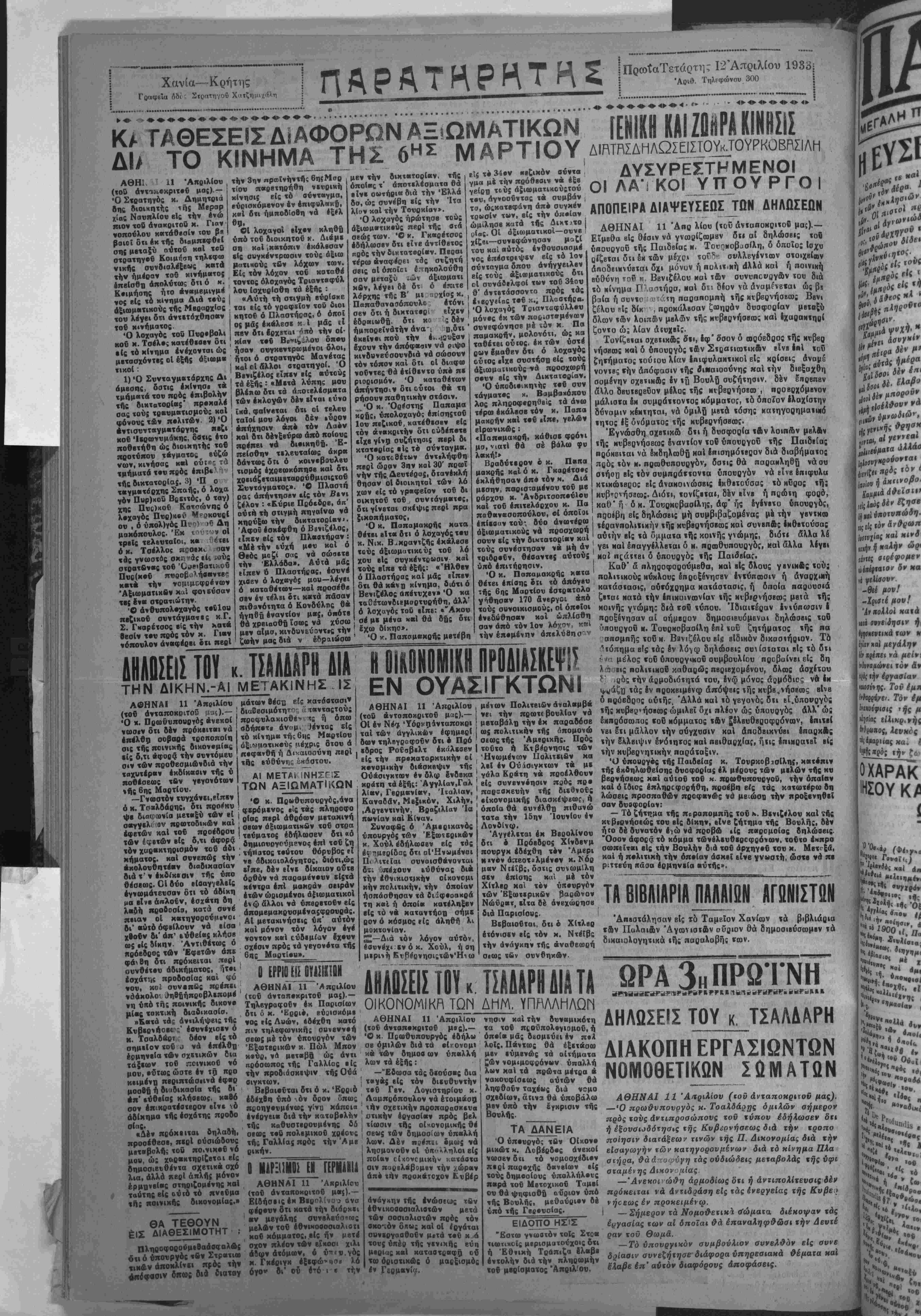 ΑΘΗΝΑΙ 11 Ά/ΐριλίου («ού άνταποκριτσΰ μας(.