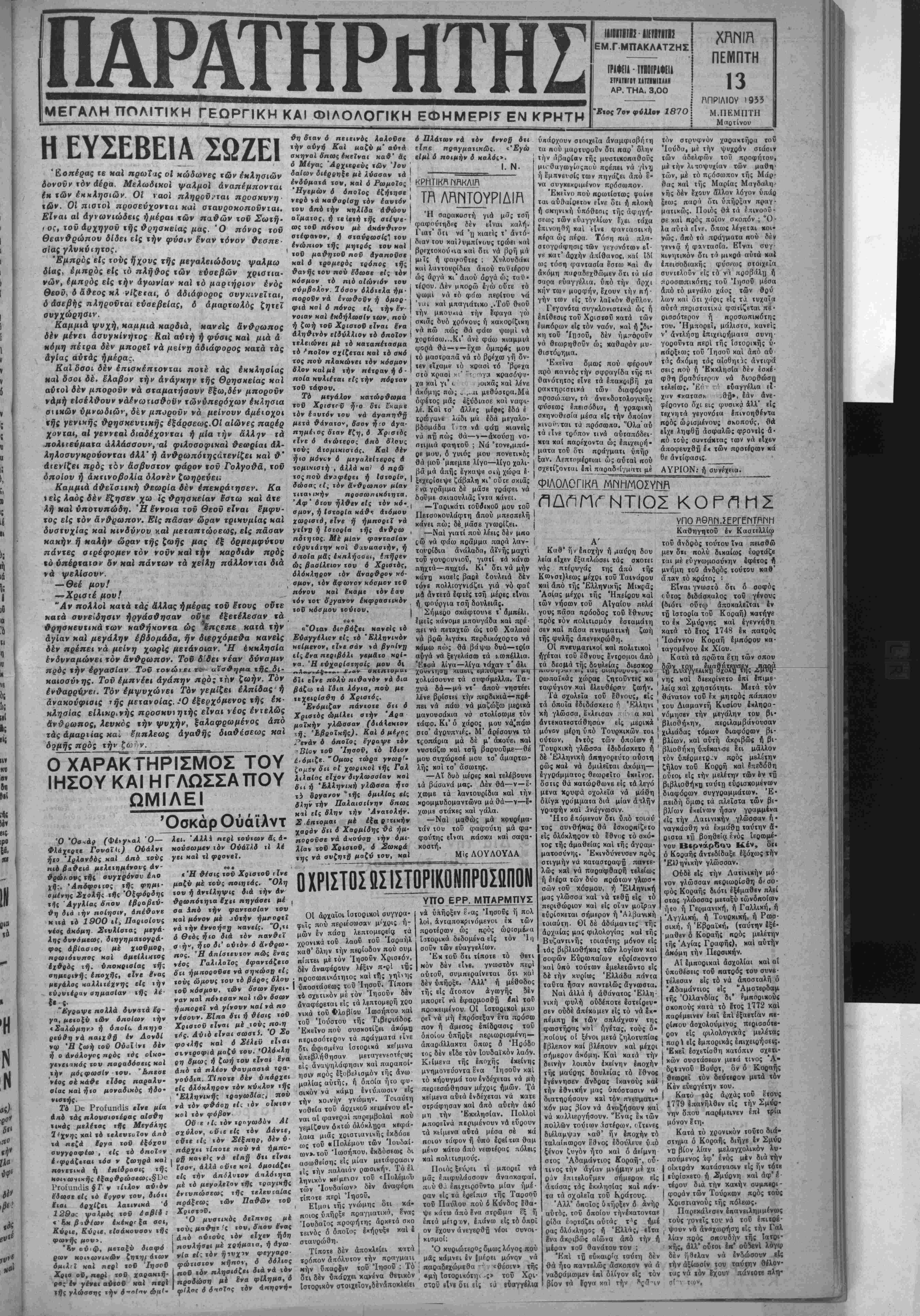 φίξει μόν <ίς «ήν Κρήτην. | Χαίρω διότι δμ« «ή αφίξει ι μόν μοδ διβκιστώσατβ δτι ή Κρητική νβότης βσκουμένη Ι τφ σώμα ένδιαφέρετοι καί Ι μοχθή είς έογβ δ (ινα δημι- ' ονργοΰσι τόν καλόν πολίτην «σΰ Κράτονς χαί «όν άκατα βλητον φαονρόν -τίς Πατρί δος. Σπεύδω ν' άπαντή η>ηρό(