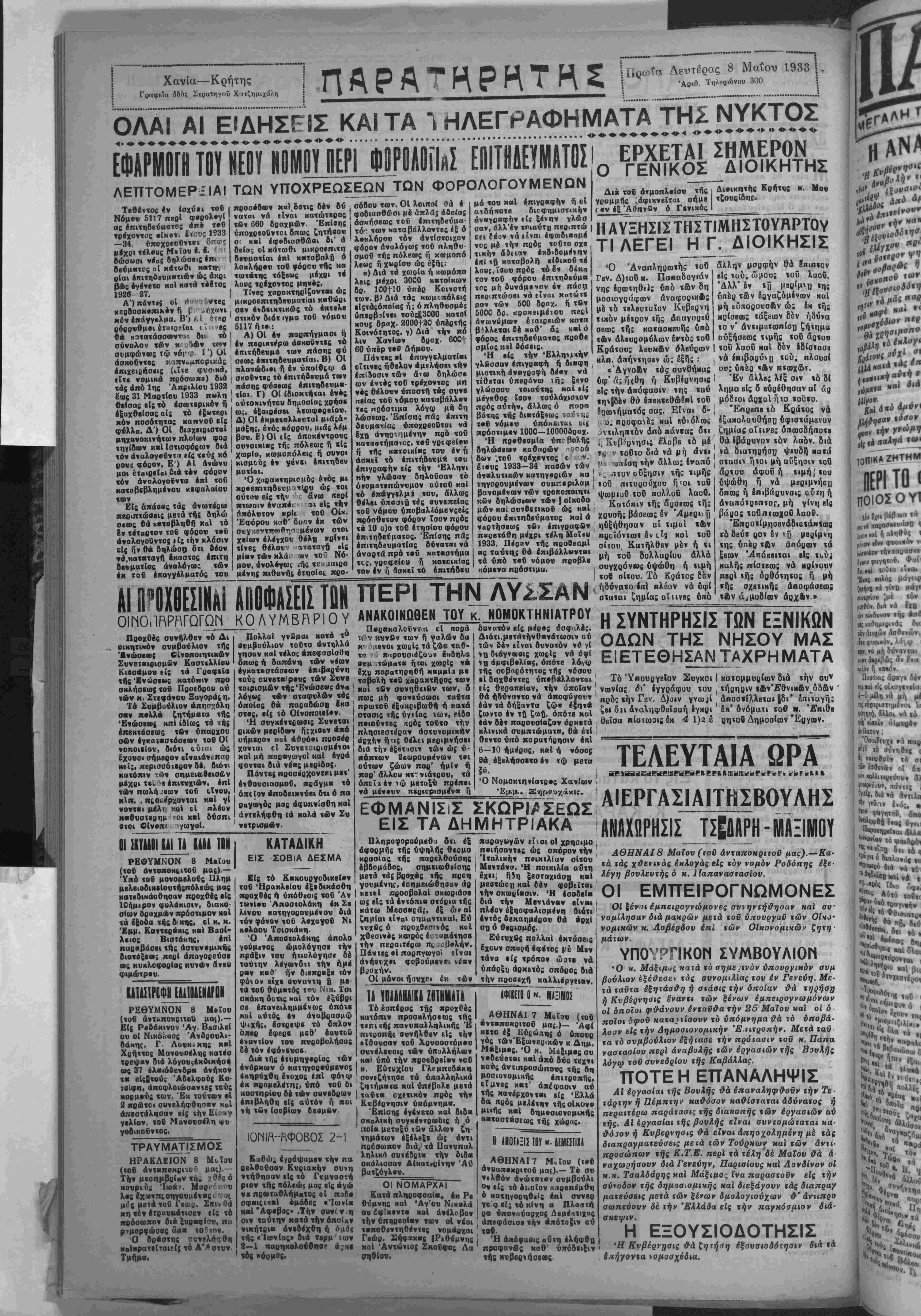 ΑΘΗΝΑΙ8 Μαΐου (χοΰ άνταποκριτοϋ μαα).—Κα¬
