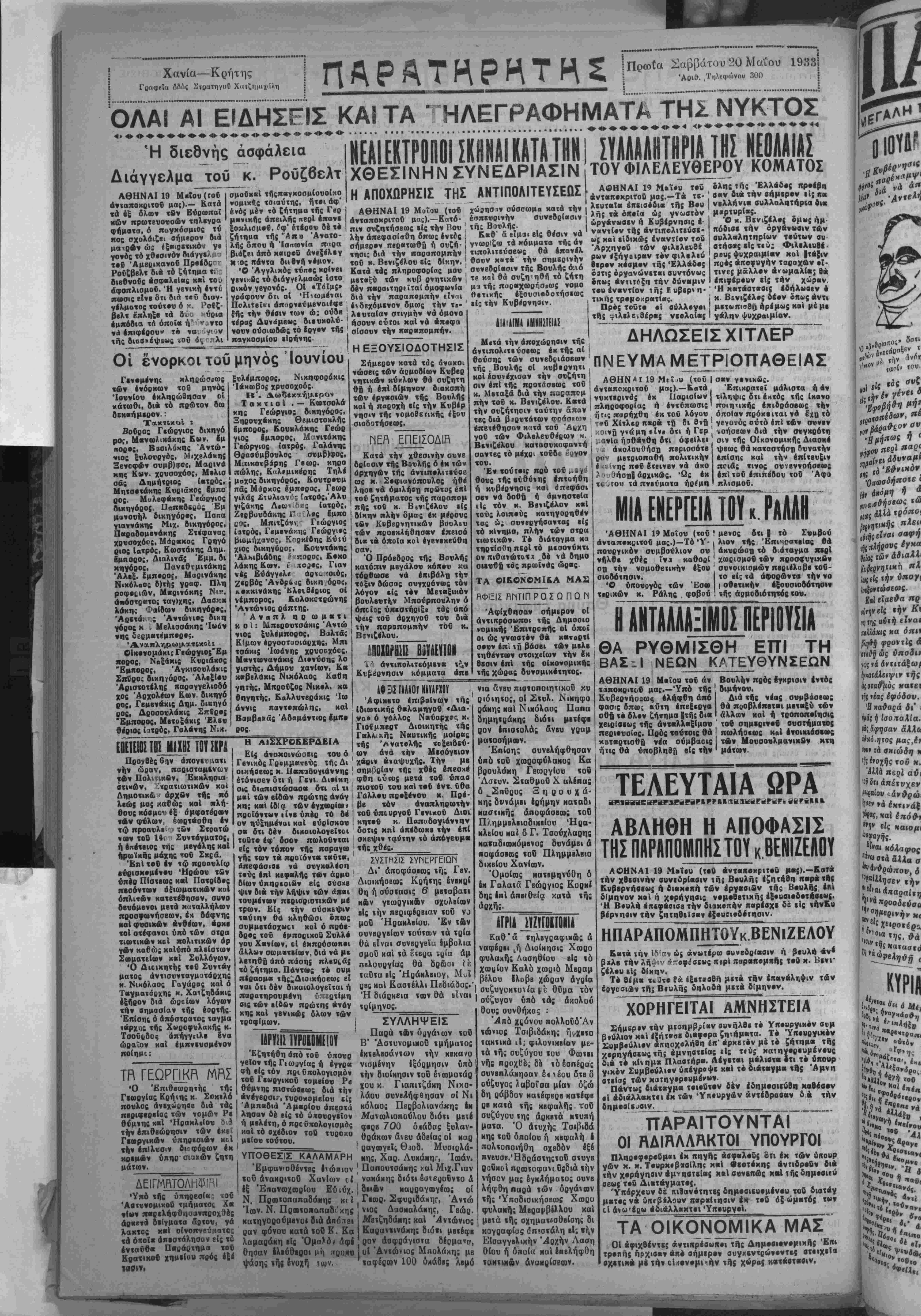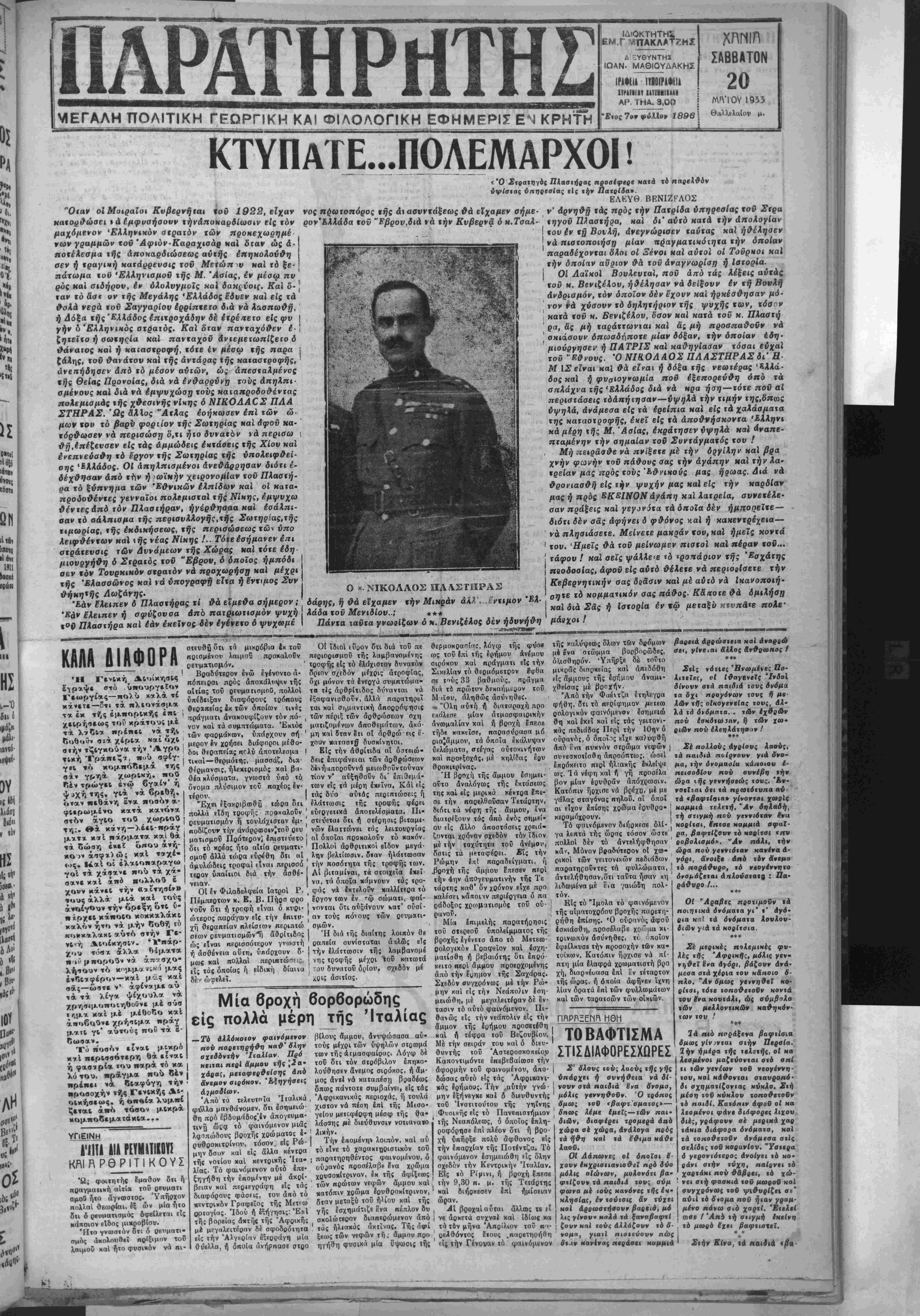 "Οίαν οΙΑΓσιραίαι Κυβεονήται <οΰ 1922, εϊχαν καχορ&ώοει *άέμφναήαουν χήνάηοηαρδίωσιν είς τόν μαχόμενον Ελληνικόν στρατόν των προχεχωρημέ νων γραμμών τοΰ 'Αφιόν-Καραχισάρ καί όταν ώς ά· ποτέλεσμα της αποκαρδιώσεως αυτής έπηπολον&η αεν ή τραγικη καταρρεύση τού Μειώπ υ καί τό ξε- πάτωμα τοΰ 'Ελληνισμοΰ της Μ. 'Ασίας, έν μέσω πυ ρός καί σίδηρον, έν όλολυγμοϊς χαΐ δαχςνοις. ΚαΙ ό¬ ταν τό άστ όν της Μεγάλης Ελλάδος εδυεν καί είς τα θολά νερά τοΰ Σαγγαρίου ερρίπτετο διά νά λασπω&ή, ή Δόξα της Ελλάδος έπιτρσχάοην δέ έχρέ/χετο είς φυ γήν δ Ελληνικάς στόατός. ΚαΙ δταν πανταχόθεν εί ζητεϊτσ η σωτηοία χαί πανχαχοϋ άνιεμεχωπίζειο δ θάναΐος καί η καΐαστροφή, τότε έν μέσω τής παρα ζάλης, τοΰ θανάτου χαϊ τής άνχάρας τής καταστρσφης, άνεπήδηαεν άπδ χδ μέσον ανιών, ώς άπεσχαλμένος τής Θείας Προνοίας, διά νά έν&αρρύνη τούς άπηλπι ■ αμένους καί διά νά έμψυχώοη τούς καΐαπρσδσθέντας πολεμισμάς χής χ&εσινής νίκης δ ΝΙΚΟΛΑΟΣ ΠΛΑ ΣΤΗΡΑΣ. Ως άλΐος Ατλας εοήκωσεν επι των ώ- μων «οο τό βαρύ φοριίον τής Σωτηρίας χαΐ άφοΰ κα- τόρθωσεν νά περιαώστ] ο,χι ήιο δυνατόν %ά περισω ϋη,ίπέζενσεν είς τάς άμμώδεις εκτάοεις της Χίου καί ένεπϊεόσ&η τό έργον τής Σωτηρίας χής ύπολεΐφθεί- σης 'Βλλάδος. ΟΙ άπηλπισμένοι ανεθάρρησαν διότι έ- δέχθησαν άπό την η ιωϊκήν χειρονομίαν τοΰ Πλααχή- ρα τό ξύπνημα των Έθνικών έλπίδών χαί οί χαχά· προδοθέντες γενναΐσι πολεμισται τής Νίχης, έμψυχω ϋένχεςάπδ χον Πλαοχήραν, ήγίρ&ηααα χαι έοάλπι· ααν χδ σάΐπισμα χής περισυλλογήν,χής Σωχηρίας,χής τιμωρίας, χής εκδικήσεως, της πρρισώαεως των υπο λεΐφθέντων καί «ής νέας Νίκης /.. Τόχεέαήμανεν επι οχράχενσις των Δυνάμεων της Χώρας χαΐ τότε εδη¬ μιουργήθη ό Σχραχός τοΰ "Εβρου, δ οποίος ήμπόδι αεν τόν Τουρκικόν στρατόν νά προχωρήση χαί μέχρι τής Έλασοώνος καΐ »ά υπογραφή είτα ή εντιμος Συν θήκη'ης Λωζάνης. Εάν έλειπεν δ Πλαστήρας τί Θά είμεθα σήμερον; Εάν έ'λειπεν η οφύζουαα άπό πατριωτισμόν ψνχή «00 Πλασχήρα χαί εάν εκεΐνος δέν εγένετο δ ψυχωμέ «Ό Στραιηγός Πλαστήρας πρσσέφερε κατά τό παρελθόν *» . ύψίστας υπηρεσίας είς την Πατρίδα». "·*· Αν ΕΛΚΥΘ ΒΕΝΙΖΡΛΟΣ νος πρωτοπόρος της ά% ααυνχάξεως θά είχαμεν σήμε- ν' αρνηθή τάς πρός την Πατρίδα υπηρεσίας χοΰ Στρα ρον*£λλάδα τού 'Έβρου,διά νά χήν Κυβερνά ό χ.Τααλ- χηγοϋ Πλαστήρα, καί δι* αύτό κατά την απολογίαν | «ου έν τή Βοιλή, ανεγνώρισεν ταύτας καί ηθέλησε* νά πιστοποιήση μίαν 7ΐρ"αγματικόιητα «ην οποίαν παραδέχονται όλαι οί Ξένοι χ αί αύτοΐ οί Τοΰρποι χαί την οποίαν αυριον θά τσΰ αναγνωρίση ή Ιαχορία. ΟΙ Λαϊκοϊ ΒουλευταΙ, ποΰ άπό τάς λέξεις αύτάς τοϋ χ. Βενιζέλου, ηθέλησαν νά δείξουν έν τή Βουλή ανδρισμόν, τόν οποίον δέν ε χον ν χαί ήρχέσ&ησαν μό¬ νον νά χύσσυν τό δηλητήριον τής ψνχής των, τόσον χατά τοϋ χ. Βενιζέλον, όσον καί κατά τσΰ κ. Πλασχή ρα, &ς μή χαράχτωνιαι χαί άς μή αροαπαΰΌϋν νά ΟΗΐάσουν όπωαδτποτε μίαν δόξαν, την οποίαν εδη¬ μιούργησεν η ΠΑΤΡΙΣ χαί χα&ηγίαααν τόσαι εύχαί τοΰ "Ε&νους. Ό ΝΙΚΟΛΑΟΣ ΠΛΑΣΤΗΡΑΣ δι' Β Μ ΙΣ είναι χα θά είναι ή δόξα τής νεωτέρας '&λλά- δσς καί ή φυαΐογνωμία ποΰ εξεπσρεύθη άπό χά οπλάχνα τής Ελλάδος διά νά χρα ήαη—τότε ποϋ αί περισχάσεις χόάπήιησαν—ύψηλά χήν τιμήν της,δπως ύψηλά, άνάμεσα είς χά έρείπια χ αί είς χά χαλάαμαχα της χαχαοχροφής, έκεΐ είς «ά άποΰ·νήαχονχα '-λληνΐ χάμέρη χής Μ. 'Ασίας, έχράχησεν ύψηλά καί άναπε- πχαμένην την σημαίαν χοΰ Συνχάγματός τού ! Μή πειρααΰ'Β νά πνίξεχε μέ την όογίλην χα βρα χνήν φωνήν χοΰ πάθονς σας χήν αγάπην ηα χήν λ