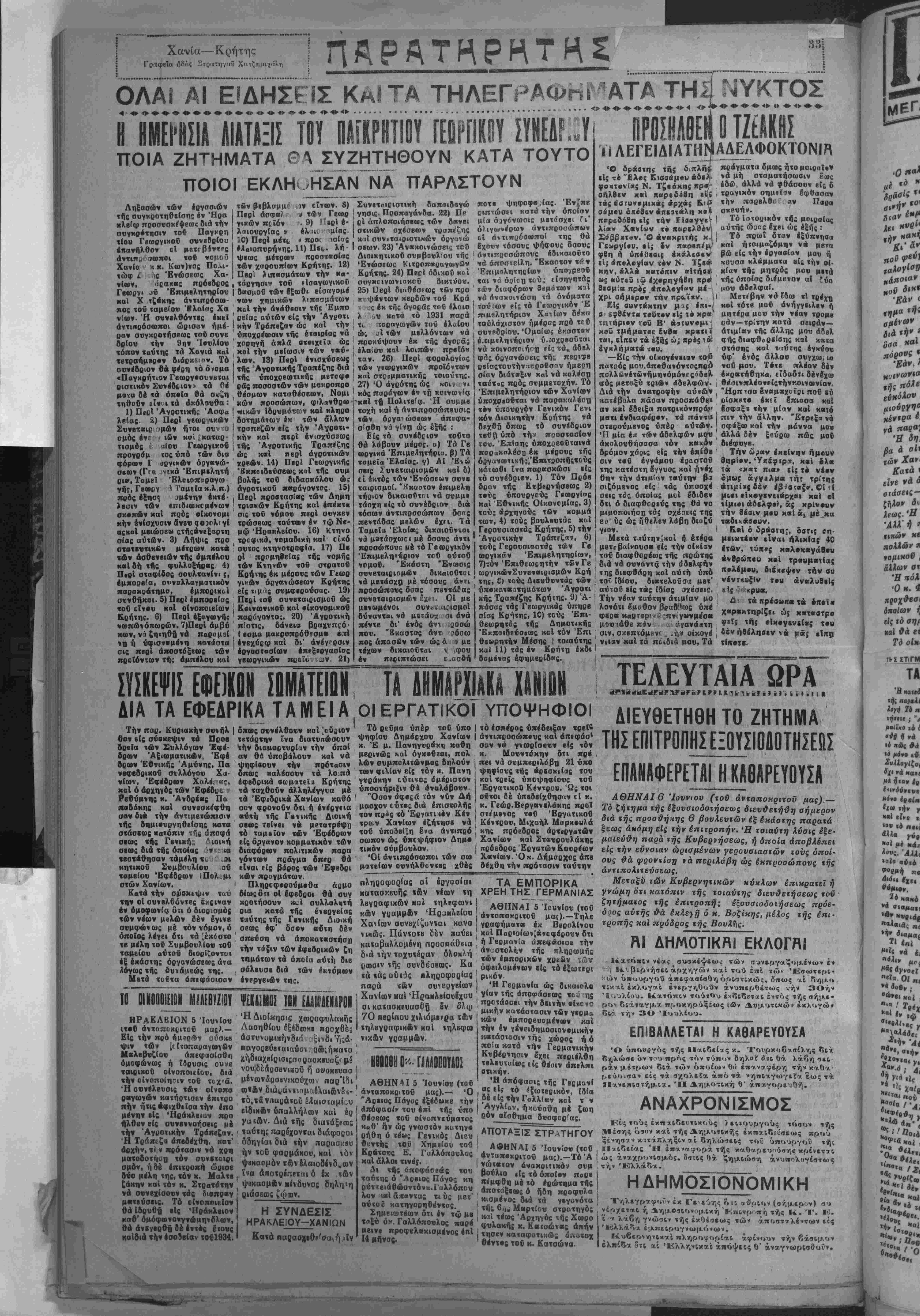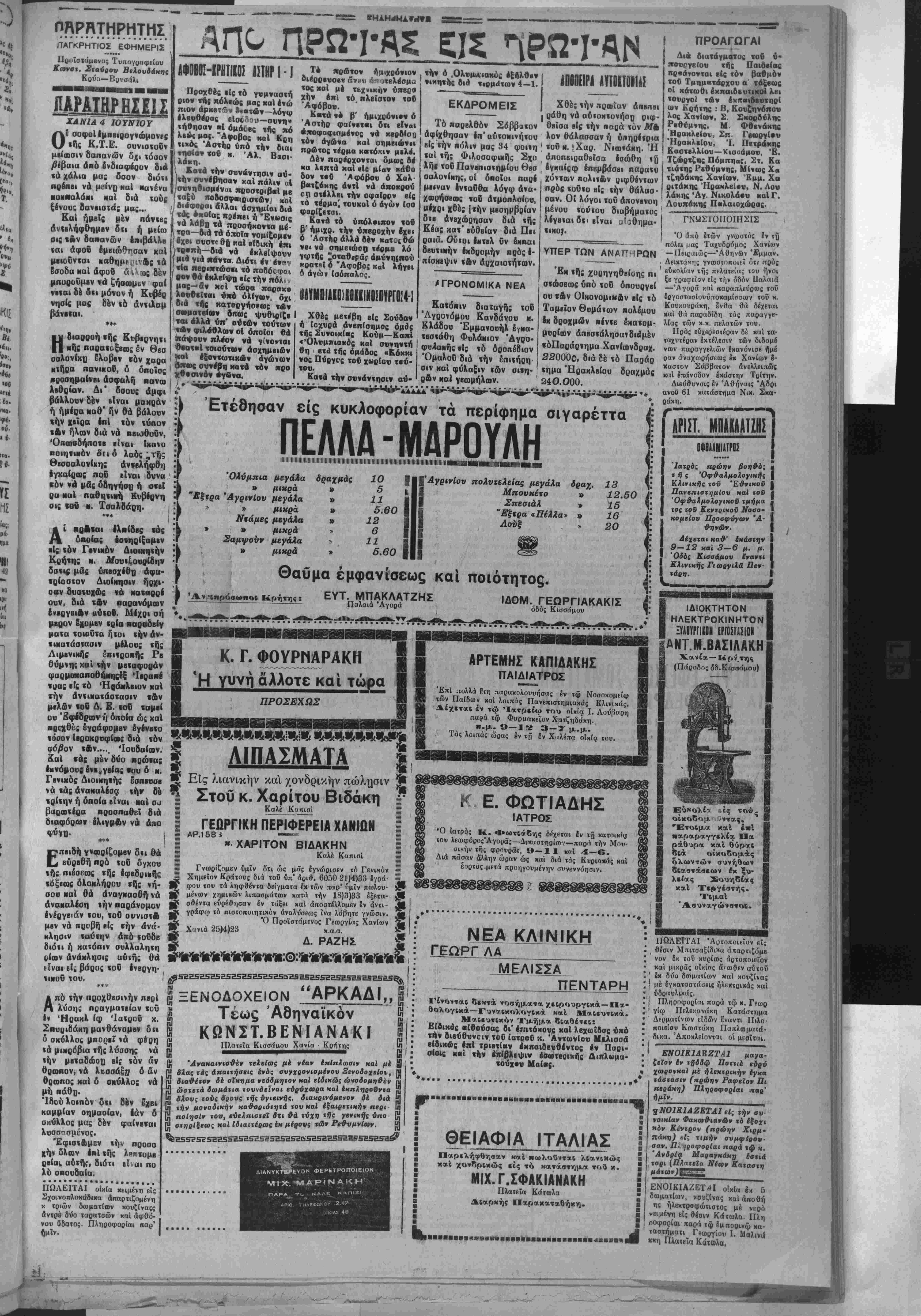 «ήν οίνοπο(η<;ιν τοΰ τοχτδ. Ή ουνέλευσις των οίνοπα ραγωγών χατήρτισβν έπιτοο πί|ν ήτις ίφιχθιϊσα την έπο μ έν ην είς Ηράκλειον προ ήλθεν είς συνεννοήσεις μέ την Άγροτιχήν Τράπεζαν. Ή Τραπέζα απεδέχθη, κατ' άοχήν, «ι ν πρότασιν νά χοη ματοδοτήοτι «όν συνεταιρι σμόν, ήδέ έπιτροπή ώοισε δύο μέλη χης, τόν κ. Μαλτβ ζάκην καί τόν κ. Στρατατην νά σννβχίσουν τάς διαπραγ ματεύσεις. Τό οίνοποιβΐον θά ίβρυθ'ί] είς Ηράκλειον καθ* όμόφωνονγνώμηνδλων, βά άνΐγβρθή δέ ένχβς ε «ούς καίδιά «ήν εσοδείαν τοΰ1934. Ή Διοίκησις χωροφυλακής Λασηθίου έξβδσιπε ηοοχθέ; παγορΒύειαΐαύσν οώιήκαϊο χήδιαχβίρισιςποραοκιυοζ) μ§ νου|δέι$Βσβνιιιοϋ ή συσκβυασ έλαιοΐαμίου ύπαλλήλ~ν καί έο γαι&. Διά τής διαιάξραις «αυτής παρέχονναι διάφοροι οδηγίαι διά «ήν παραακβυ ήν «ου φαρμάχου, καΐ «όν ίνα άηοτρέπβται δ ίκ των ( ψβκασμΛν κίνδυνος δηλη»η ' ριάθΒοος ζφαον. Η ΣΥΝΔΕΣΙΣ ΗΡΑΚ.ΛΕΙΟΥ-ΧΑΝΙΩΝ Κατά παραοχιθκ'σοΐίή ήν πληροφορίας α! εργασίαι κατασκευάς «Αν νίων «η λεγραφικών Μηι χηλβφωνι κδν γραμμ&ν ΉραΝλείου Χαν.-ν συνβχίζονναι κανο νΐΝ&ς. Πονιοτε δεν παύει κατ,οβαλλομένη προοηάθΒΐα διά «ήν ταχυιέραν δλοκλή ρήσιν τής συνδέσεως. Κα χά τος αύιίς πληροφορίας παρά <&ν συ^εογβ(ων Χανίων ΜαΙ ΉραΜλείουίχοα σι κατασΜΒυασΘη §ν όλω 70 περΐπου χιλιόμειρα ϊ&ν «ηλεγραφΐΜ&ν καί νηλβφω νικΛν γραμμ&ν. ΗΘΩΩΘΗ 0^· ΓΙΑΑΟΠΟΥΑΟΣ ΑΘΗΝΑΙ 5 Ίοννίον(τοΰ άνταποκβιχοΰ μας).— Ό "Αριιος Πάγος Βξέ&Μχε την απόφασιν τον επί τής υπο θέσεως τοΰ οΐνοπνεύματος καθ" ήν ώς γνωστόν χι>χηγο