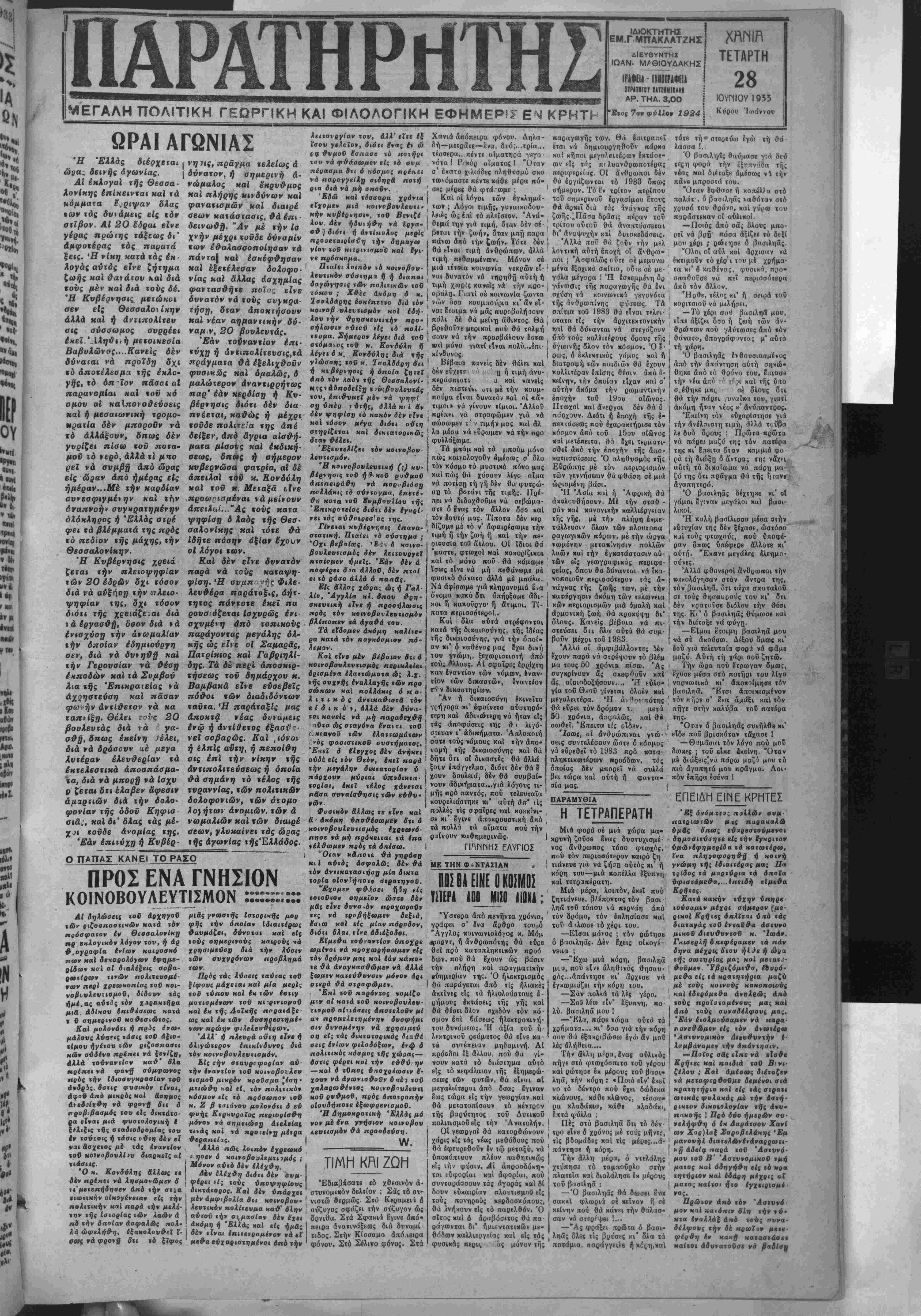 νΐΕΓΑΛΗ ΠΟΛΙΤίΚΗ ΓΕΩΡΠΚΗ ΚΑΙ ΦΙΛΟΛΟΠΚΗ ΕΦΗΜΕΡΙΣ ΕΜ ΚΡΗΤΗ