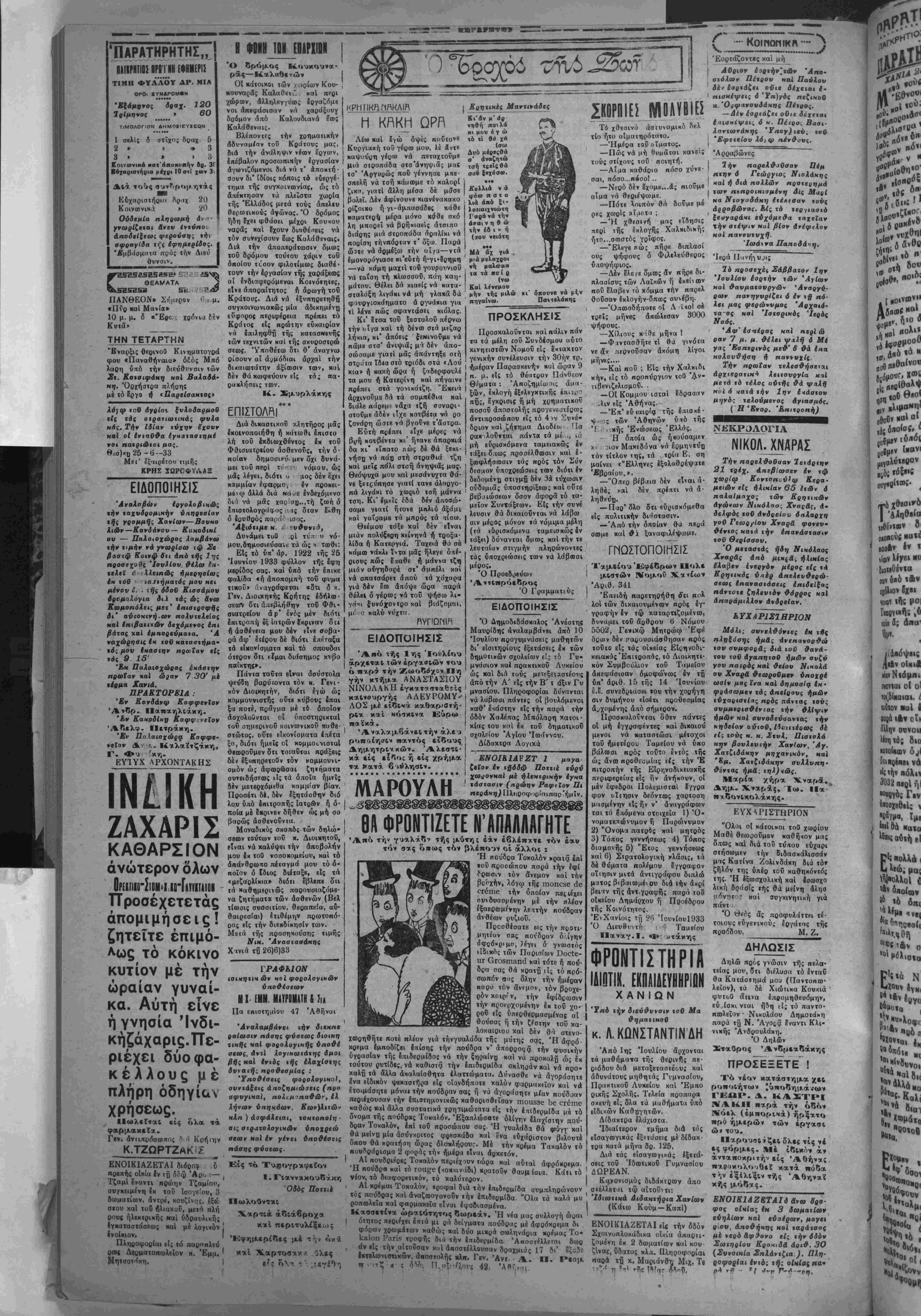 '"<· -.ν μ«! βκ·λουθ·ϊ ή Κυ ί,ηΐς διά νά έπικρατήβη κ έ5«υδετρςώ3ΐι την άναμ φιοβήτηΐον ύκεροχην ι «ν οποίαν Ιχει δ «ντιπολιτευ· μενος χέσμος έναντι ΐής κη βερνήσεω;. Ή έκλογή ©βσ β«λ·ν(κη;, ιίπεν λ κ. Βενι- ζέλος, θβ' βποτελέοη μ<«ν λαμπράν σελΐδο τής ίστβρΐ- ■ς των ελευθεριών τοϋ Λ«·δ την όη·(( ν την 2«ν Ί·υλ( •υ βα γρίφβυν «ί βκλβγεΐς τής βεασαλβνίκη,ϊ μαχομε- νοι ύ«έρ τ·0 δικβίβι/ καί τής «ρετής. ' Δκν εΐν«ι ορθόν, έβυνέχι- | '...<■ ο μ. Βιν.ζέλθΓ, ουδέ να | οκέπΐεται κανε)( απλώς στι ιϊναι πιθανόν νά άηωλιοθή ή έκλογή. Ή προβπκβκια Τήί κυβερνήσεως ,νβ ·χρη- σ;ιύ)η κα) νά ύποτβξη την θέλησιν όλοκλήρων χιλιά¬ δων έχλονένν είς τό φρονή μ« ξένον οτειχιίον, τβν όλί γων'ίσραηλιτβν, πράξις δια την ·ντιηολίτε»αιν χαί δ- | λην την Έλλαβα νξ(βι κατβ δίκηί, βηεξένωοβ τελείω; καί άπεγύμνντ την κνβέρ· νησιν άπο τβς συμπαθείας τβν γηγενβν έχλογέων. ΕΝΙΣΧΥΣΙΣ ΤΟΥ ΔΗΜΟΤ. ΝΟΣΟΚΟΜΕΙΟΥ Ό Βουλεντής Χανίων μ. Μανοΰαος Βολβνοάκηβ ώς μέλος της επί τγ,ι: νβμββε- τι«ής έξθΜθιοδβΐήσίω; Επι τρβπί,ς βπροτίΐνε *αί ·πέ- Τυχβν δπως διά τοΰ Ν. Δια τ«γμ«τος περί διανομή; ι»· , τβν πλέονασματων|τοδ έλαί •υ διατβθή ύπέρτοδ Δημ.Ν· σοχομβίου μοις τό πλεένα- βμα τ·ΰ Νομβί» Χανί«ν α¬ νερχόμενον β.£ 20.000 δρβχ, πιρΐη·». ΑΙ ΦΟΡΟΛΟΓΙΚΑΙ ΔΙΕΥΚΟΛΥΝΣΕΙΣ Πληροφ»ρ«ύμεθα οΐι ή Έκιτροηη έξβυοιβδβτήσεως παςουσία καί τ#δ ύφυπονρ ' γοδ τβν £ίπβνομικβν χ. Εύλαμπίον, συνεζήτησε κοί ενέκρινε τό νομοθετικόν · διάταγμα περί φβρολογιχών διενκοΡύνσβνν είς τούς ό φιιλέτας έξ αμίσων φίρων ι Είς τό βιατβγμα έπηιέχθη οαν αί κάτωθι «βαβικαί» τρο π·πειήβ«ΐ(: 1) Μετά την διαγρ»φήν τβν 2,000 δραχμβν έκ τβν οφειλομένην φορων τω>χρή