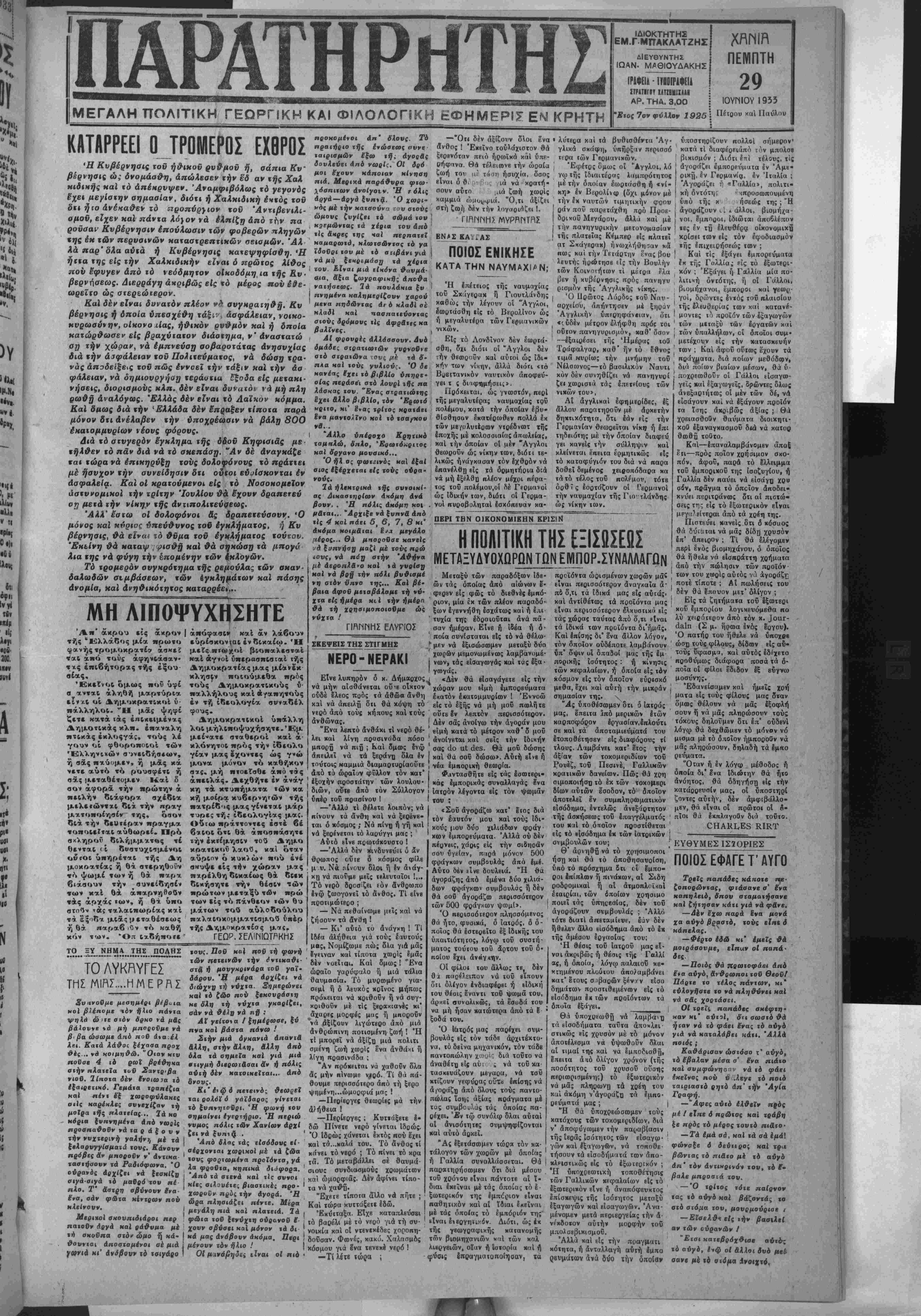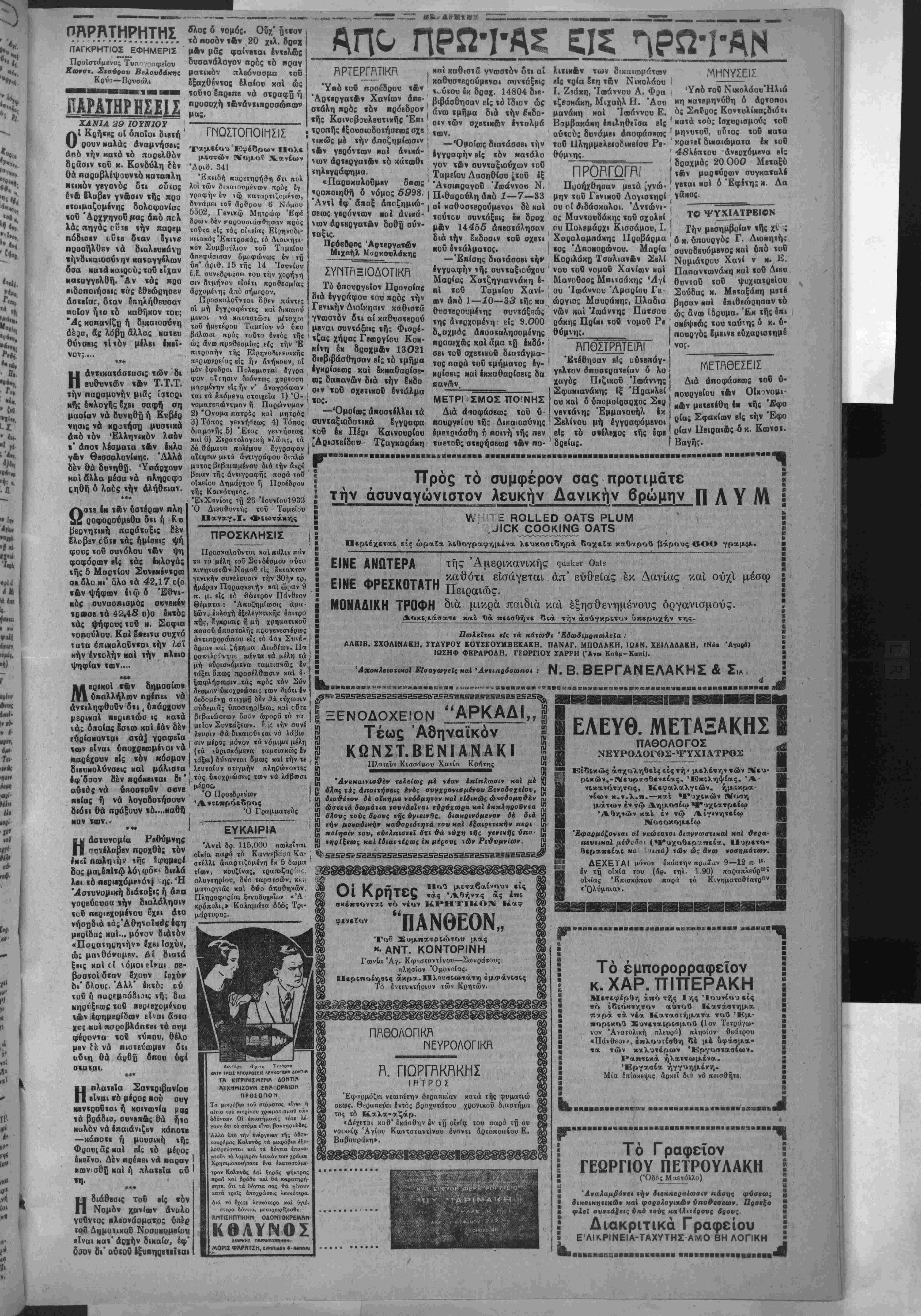 πιν τή; όαημέραι διβπιστου | άνε<<ννήθη μ·Ι μένη; ένβχής άβιυνομικβν έν ένβργεία ?.' νίκην βποπειρ μ δολοφο η ρ :«ϊ« τεΰ μ. Βενιζέλου * 1 των προ ουζητιϊται τβ ζήτημβ τής σιγ- χωνκύοΐνς Άοτΐ)««μίετς ηί λεως καί χ»ρ·φυλ«χϋς. ΕΣΙΕΔΙΑΖΕΤΟ ΠΡΟ ΠΟΑΑΟΥ ΗΔΟΛΟΦΟΝΙΑΤθΥκ ΒΕΝΙΖΕΛΟΥ τΑν «Αν καί τής Έπιτροπής Δια τιμήσβων, τότε μόνον ή Έ πιτροπή άπΐφαίνβται δτι οί άρτβργάται πρι'πει νά λαμβά νούν 48 λεπτά κατ' οκάν άρτον τα όποία έπλήρωνε ό φτωχός κόσμο., συνιστάτε την σύγκλησιν έκτακτον Γβ νίκη; σννελβύσβως των βρτο ποιών διά την λήψιν άποφά σβως διά την πληρωμήν των δικαιωμάτων τΑν άοτεβ- γατδν. νά εκδώση τόν άνακριββ* στατον έκβΐνο ανακοινωθέν ύπβίκουσα βίς τάς κακοβού λονς σνστάσβις....φΐλικοϋ της πρωίνοΰ έντυπον, ουδέ ποτβ ένδιαφβρομένον διά ζητήματα γενικής φύσβως δπως τουλάχιστον μέχρι σή¬ μερον άπέδβιξβν ή τακτική νού, μέ τόν σκοπόν,, νά μβιώ ση την εντύπωσιν ποδ ποοβ κάλβσ· ή έπιτυχία μας οΰτη υπέρ μιάς «νξβως άδικον μένη". ΑΟΗΝΑΙ 27 Ίουνίου («·ΰ "ντβποΜριτβΰ μοί;).—Ώ; ά νπΜσινώβη σήμερον έξ ααφα λβδς πηγήί έ Πολυχρονο- πβυλβς άπό μαχροΰ χρίνευ ήτοίμβζεν τό σχέδιον τήςδο λοφόνιχης εναντίον τ·δ μ. Βενιζέλου «ποπΐίρας Μβλι- οτα πλεΐστοι ήοβν 'ίν γνώ· οβι των κινήσεών τού, μβ· τβξύ τβν όιιοίων χλ ί κ. Πλατατήρας έβτις δέν εΐχβ παραλεΐφει νά εί9οκβιήσρ 0Χ«ίμΑ)| τόν ρ. ΒενιζΙλεν ΑΙΟΙΙΟΝΙΜΙΑΙΤΗΣΚΥΟίΡΙΙΣΕΩΣ ΥΠΕΡ ΟΥ ΕΛΛΗΝ. ΛΑΟΥ Ίδον κεεΐ μία εξόχως έν δι αφίνουσα τόν λαόν πληρο αιορίο: ΟΙ έν Λονδίνω Γβρμα νοΐ άντιπρόσωποι, οί μβτα βάντβς διά την οίκονομικήν διάσκβψιν, λαμβά ν ου ν 100 δολλάρια ήμβρησίως. ΟΙΊτα λο112δολλάβια. ΟΙ 'Αμβρικα νοΐάντιποό σωποι|λαμβάνου ν δολλάρια μόνον 8. Οί ίδιχοί μας άντιπρόσω ποι λειμβάνονν κατά τάς πληροφορίας χοϋ Παοισινοΰ «Έξβ'λσιορ> 25 βολλάοιπ