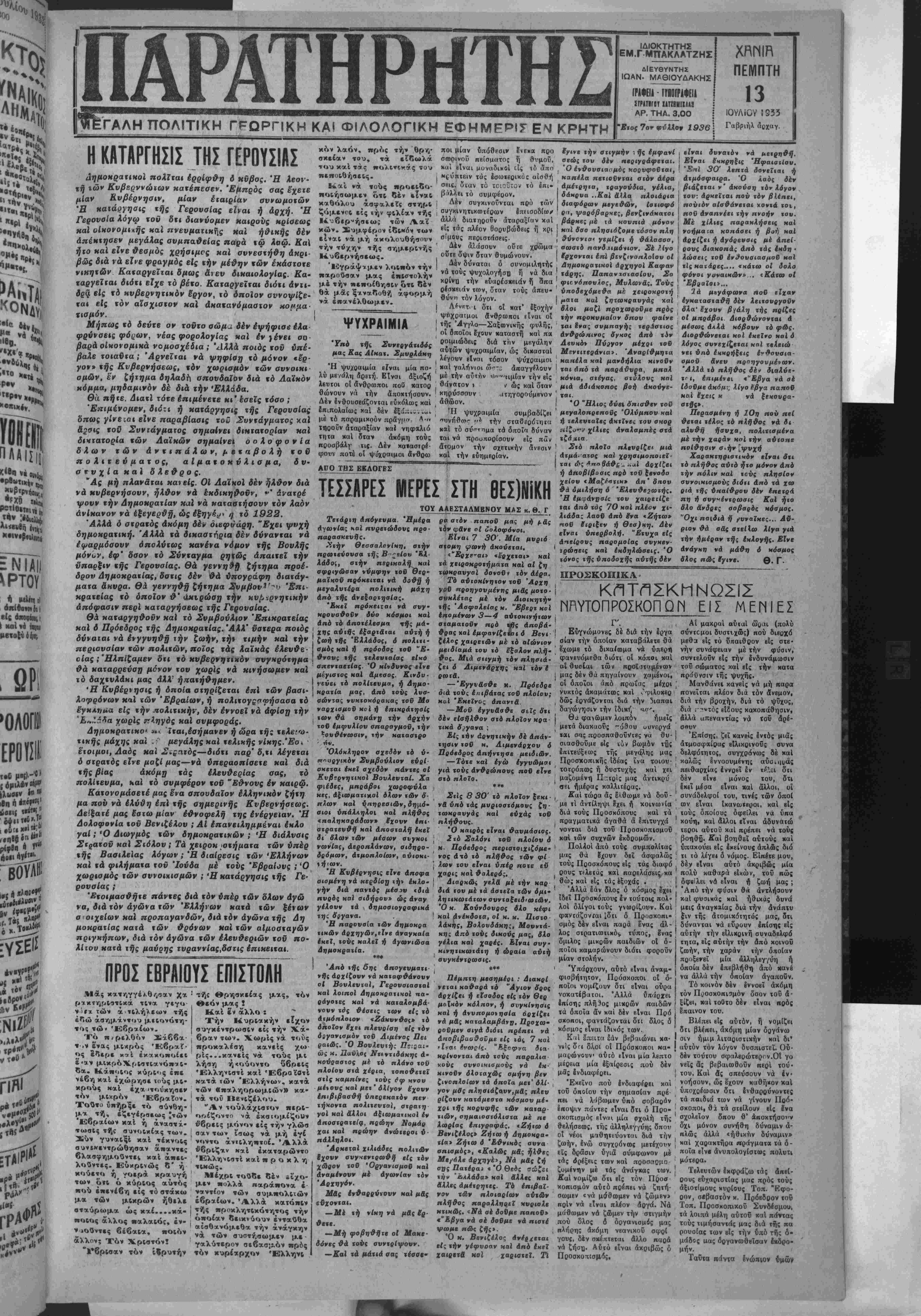 Έκιμίνομεν, διότι ή κατάργησις τής Γερουσίας