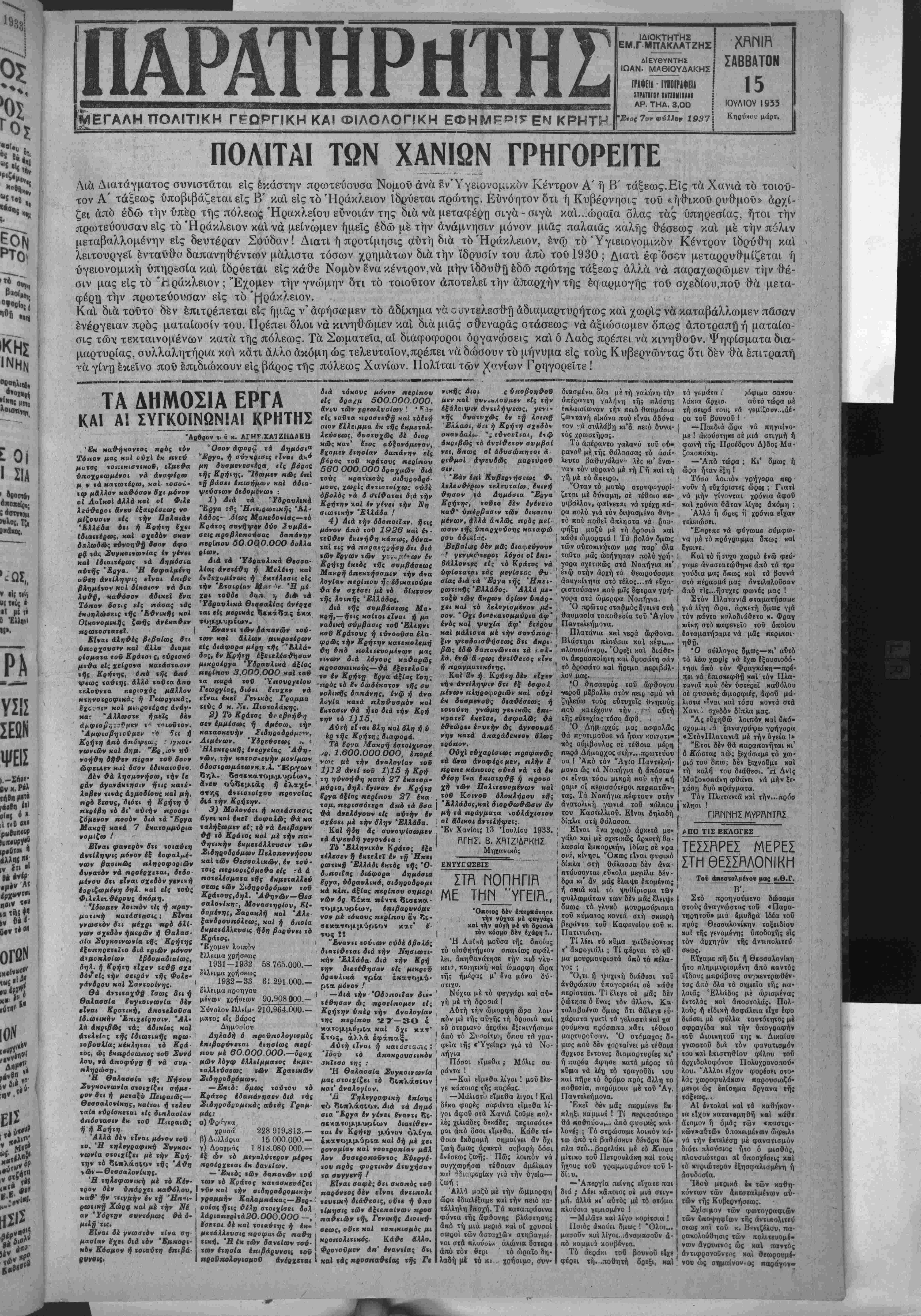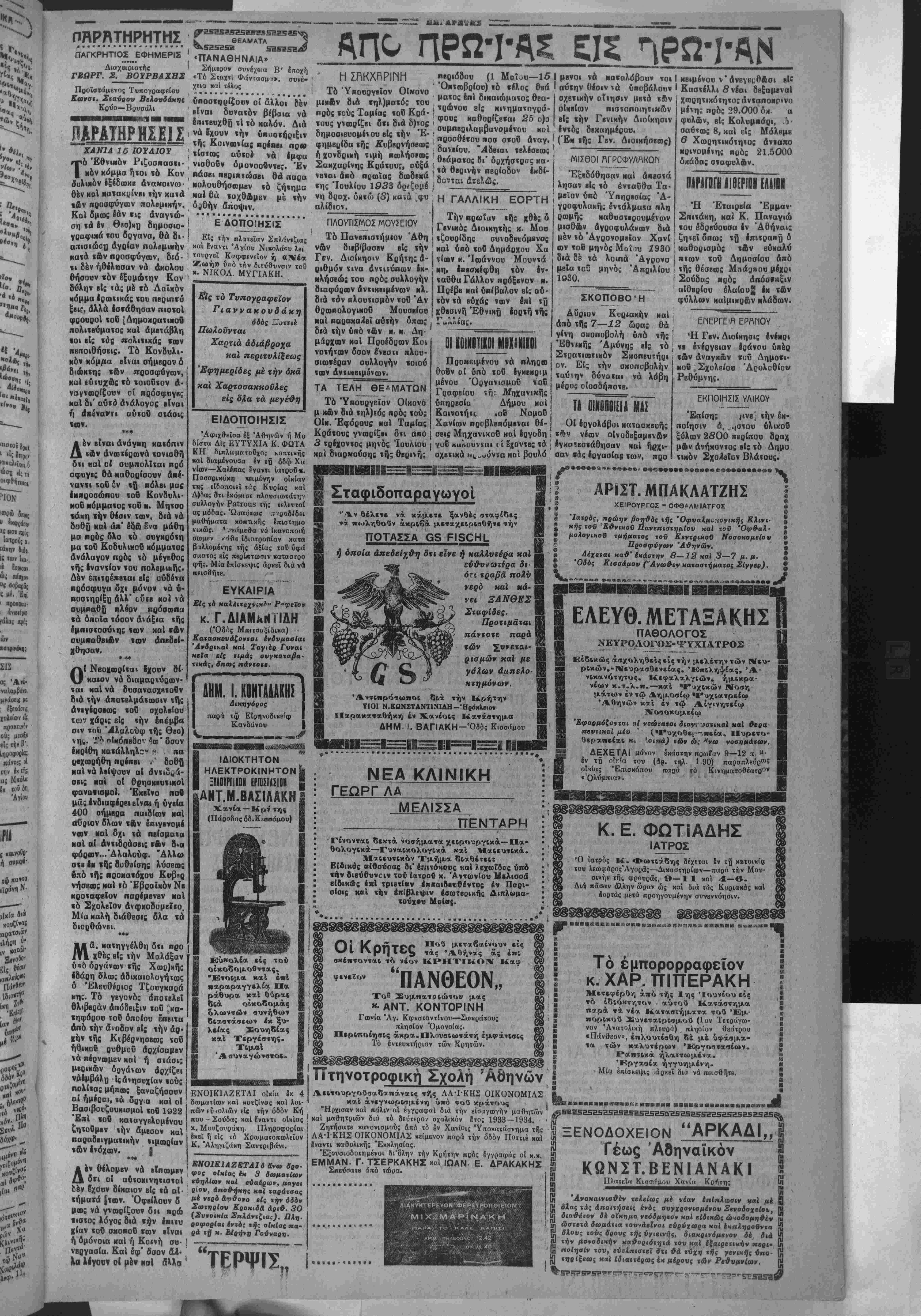 τον Α' τάξεως ύποβιβάζεται είς Β' κα είς τό Ηράκλειον ίδρύεται πρώτης. Ευνόητον δτι ή Κυβέρνησις τού «ήθικου ρυθμου» άρχί-