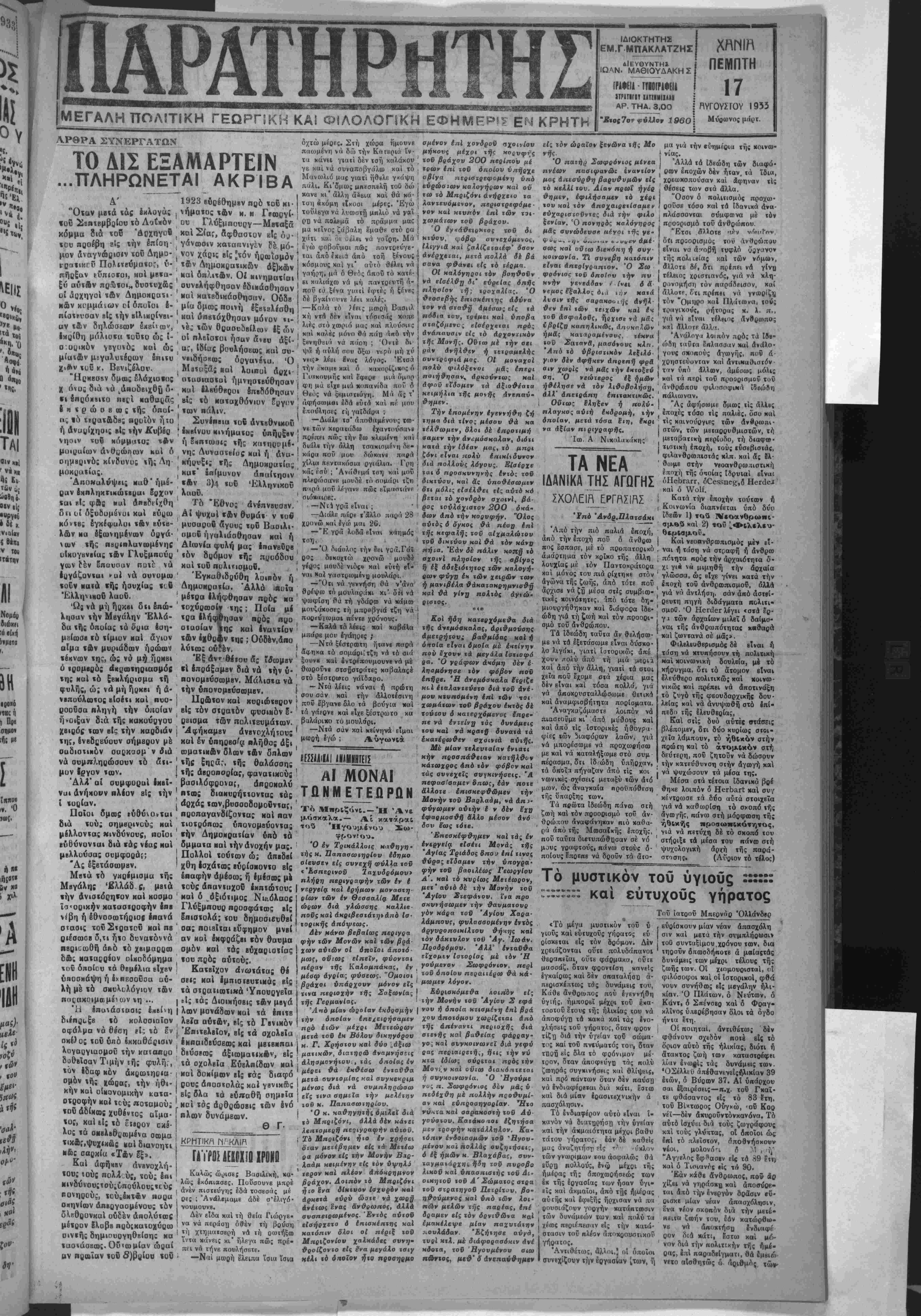 ΜΕΓΑΛΗ ΠΟΛ.ΤΙΚΗ ΓΕΩΡΓ!Κ.-, ΚΑ! ΦΙΛΟΛΟΠΚΗ ΕΦΗΜ£Ρ?^ ΕΝ ΚΡΗΤΗ