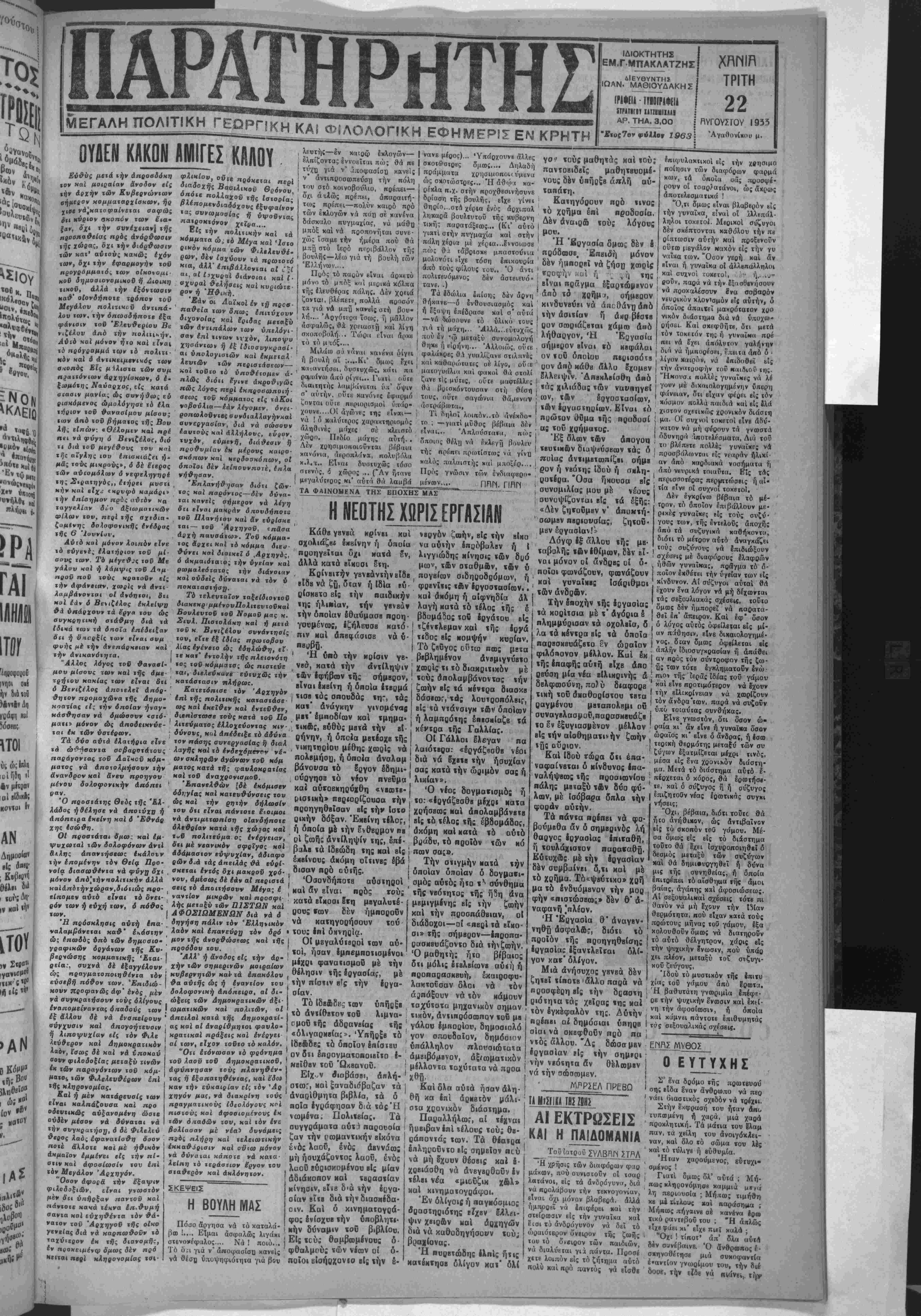 Μυλωνας, δ%ι αί προάέσεις τής Κυβερνήσεως διάτήν