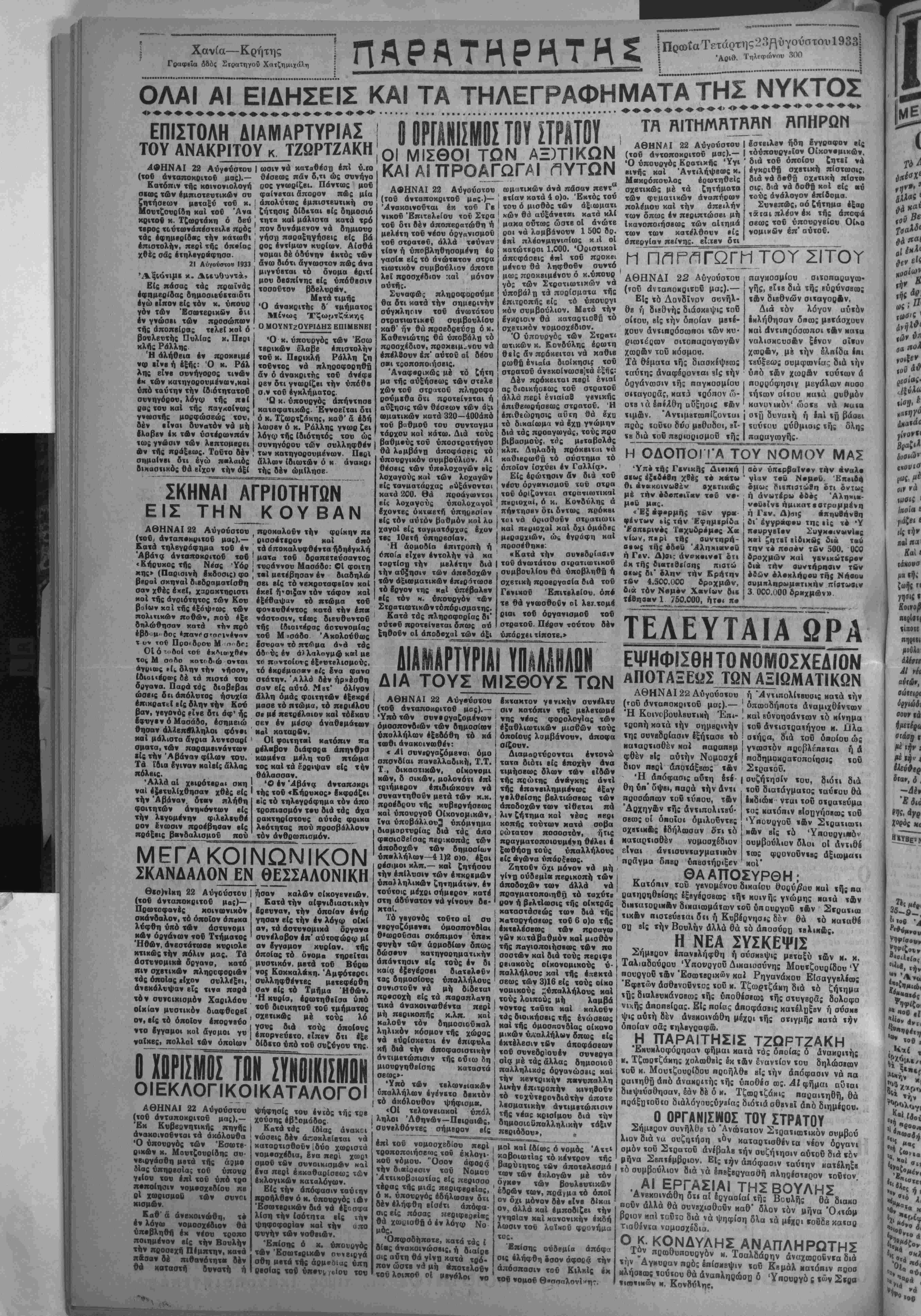 αωτερικών, δνατυχώς δμως, είς την κρίσιμον στιγ¬