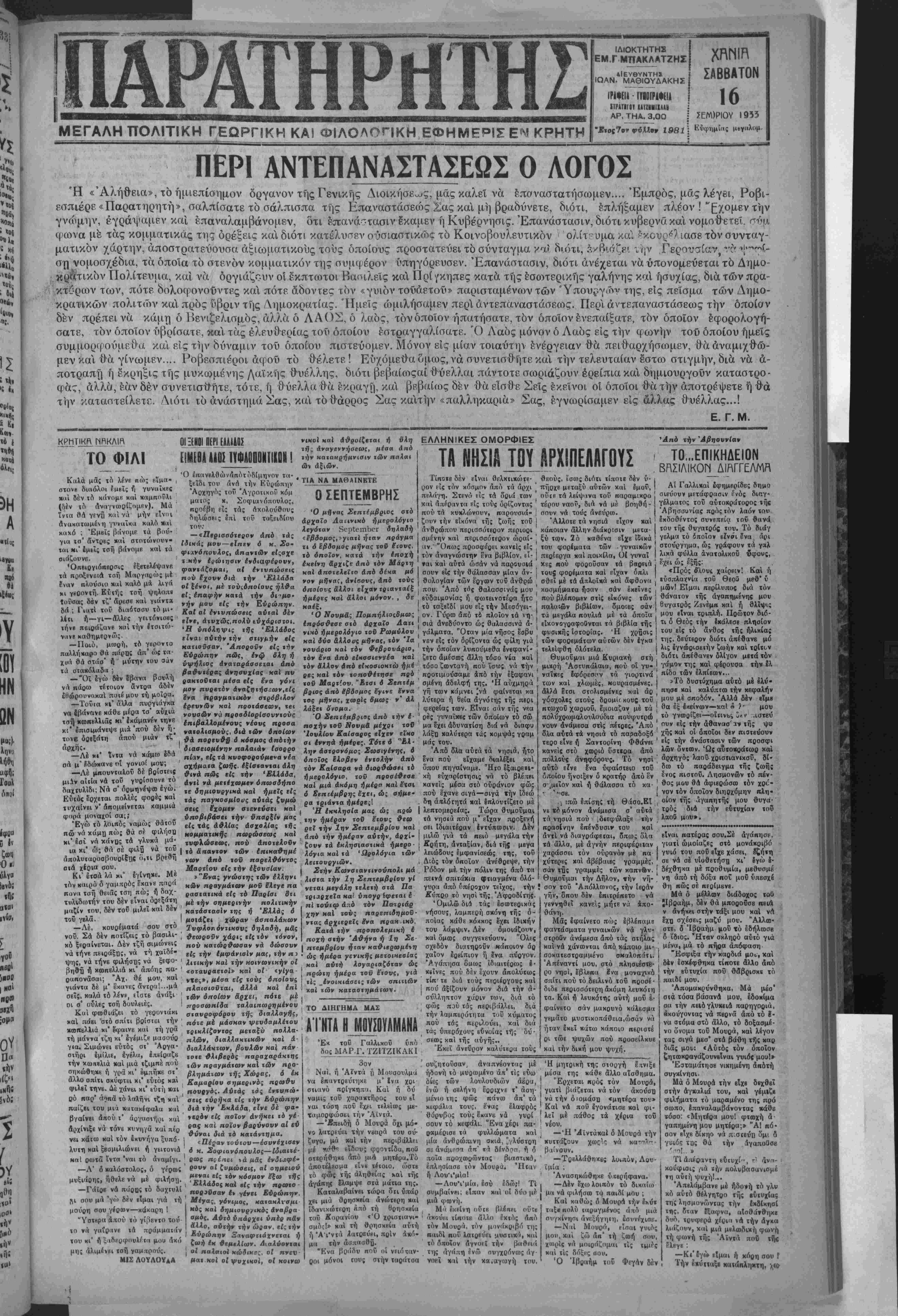 ΜΕΓΑΛΗ ΠΟΛΙΤΙΚΗ ΓΕΩΡΠΚΗ ΚΑΙ ΦΙΛΟΛΟΠΚΗ ΕΦΗΜΕΡΙΣ ΕΜ ΚΡΗΤΗ