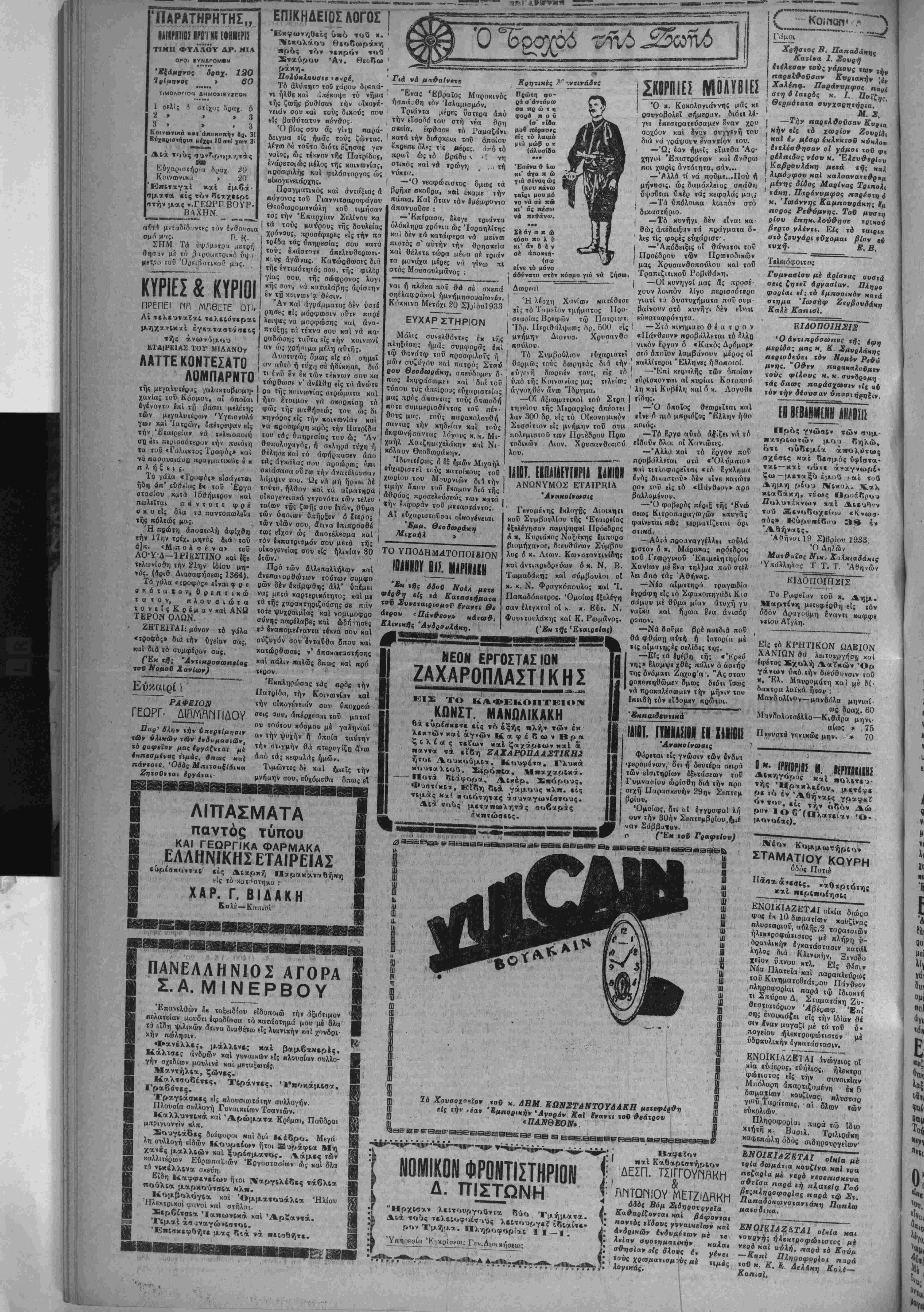 ζ<ίν*Ώ, δταν διβπραγματβύβ το ιφ 1922 την εΐβήνην μέ τήτ Τουρκίαν. —Είπον τότβ—εσυνέχισεν δ κ. Ββνιζβλος—βίς τόν Ισμέτ παοδν δτιή'Ελλάςχαί Τονρχία πρέπεΐ νά δώσωμεν τα χέριβ. "Οταν ανέλαβον την εξουσίαν ιφ 1924 χαί βραδύτβρον ιφ 1928, έπεδί ωξα την συνβννόησιν. ΟΙ Τοΰρκοι__αρχικώς έδνσπί στουν, λέγοντβς δτι ό Ββνι ζέλσς *ϊχβ παρασύρη *όν Ισμέτ παοάν, άλλ' ^επείσθη σαν άπό ήν ειλικρίνειάν των λόγων μόν, δταν έπβ- μικ»ί* «'!Υ»νί»ν βΐς τό ΔΙΑ ΝΛ ΥΠΟΔΕΧΘΟΥΝ Κατόπιν παοακλήσβως τής τονρχικής Κυβκρνήσβως, τό ίντανθα πρακτορβίον τής Ρονμανικής 'Ατμοπλοΐας διιβίβασιν εντολήν πρός τόν κυβκονήτην τής «Ρου- μανίσς» ίνα τό σκάφος επι βρσδβι'ΐ) τόν κατάπλουν τού βίς Κωνσταντινούπολιν καί τουτο διά νά άφιχθοΰν προηγουμένως είς Κων)π· λιν οίέπιβοντ·ς έν Βάρνη χον θωρηκτοΰ «Γιαβούζ» Ισμέτ πασάς καί ΐεβφίκ Ρουσδή βέης κμΐ νποδβχ θοδν τόν κ. ΒενιΕέλον. αιμοπο.ησις των ■ ■ α(μων καρπών των έοπβριδο βιδών (πορχοκ«λ(ων, μανδα μινΐων, λεμονίων κλπ.) διά τής παραγωγής αίθβυΐω* έλαιων χαί ουμπιπυχνωμέ νων χυμών πρός παραγωγήν άναψυχτικών καί ήουπότων έκ φνσικών ηρώτων ύλών δχι ώς μέχρι τβίββ έγέ νΐτο διά τής έκ τοΰ ζρ κου βΐσαγωγής ουνββτικώ* ύλ&ν. Βββα^ως τα έκ τής παρα γαιγτίς καί πωλήαιως τδν προΐό«των τούτων προκύ ΤΟ ΤΑΞΕΙΔΙΟΝ ΤΟΥ *· ΒΕΝΙΖΕΛΟΥ ΚΕΙ ΠΟΛΙΤΙΚΗΝ ΑΘΗΝΑΙ 26 Σ)βρΙ·υ (τοδ άνταποκριτον μας).— ΤηλβγραφήμαΤα έκΚωνσταν τινουηόλβως άνϋφέρονν δή ή ήμιβπίσημος «Μιλλιέτ» χαιρΒτ'ζονσιι την έπίσκβψιν τού κ. Βενιζέλου είς την Τονοκίσν, γράφει τα εξής: «Παρ' όλον τόν άνβπιση μόν χαρακτήοα,τόν οποίον φέρει τό ταξείδιον τοΰ τέω$ ^Ελληνος πρωθνπουογοΰ είνε αναμφισβήτητον δτι αί συνομιλίαι, τάς οποίας θά έχη μετά τοΰ Πρόεδρον τής τοιρκικής Δημοκοατίσς,τοΰ πρωθνπουβγοΰ Ισμέτ πασά καί τοΰ ύπονογοΰ των Έ ξωτεριχών, ένέχονν πολιτι κήν σημασίαν.» ΟΙ ΙΤΑΛΟΙ ΑΙΣΙΟΔΟΞΟΥΝ ·**··-*= ΑΙΓΊ ΤΟΝ Γ1ΦΟΠΛΙΣΠΟΝ πταντα _ . τα ι ώς κανονικόν βσοδον ε,ίς τό Γεωογικόν Ταμείον Χανίων. Πάσα σχβτιχίΐ πλη βοφυρΐα δέον νά ζητβΐται άηό τό Εργοστάσιον των Γβωογιχων Βιομηχανιων Χά νίων διά τής Γεωογικής Ύ πηρβσΐας είς ήν κβΐ άνήχβι τό έν λόγω Έργαστήριον. ΑΘΗΝΑΙ 26 Σεπ)ββίον | δηως μβτάοχη των οννβν τσΦ άνταποχριτοΰ μας) — | νοήσεων διά τόν άαοπλ Ρώμτι Ό έν Ρώμχι ανταποκριτάς των «Τάϊμς» τηλεγραφβΐ δτι ό Ιταλός ύφνπουργός των Έξωτβρικων κ. _οΰ- βιτ£ άνβχώρησβ διά Γενεύην αμάν. Σχβΐικώς κοατβΐ βίς τού- έπιαήμυνς κύκλους τής Ρώμης αίσιοδοξία έφ' δσον Αλλως τβ ββλτιοϋνται καί αι γαλλοΐΐαλικαΐ σχέσβις. Ι ΕΓΚΑΤΑΣΤΑΣΙΣ ΨΥΓΕΙΙΥ Ιν1ΕΤΑΞΟ_Σ_κ:ΩΛΗΚ ΩΝ ΣΙΙΙΣΤΑΤΙΙΗ ΑΠΟΣΤΕΙΡαΐΙΣ ΤΟΥ ΝΕΡΟΥΠΟΥ ΠΙΝΟΜΕ Υπό τή; Γενικής Διοική σβως έξιδόθη τό χάταιθι άνα κοινωθέν. Εαθιστωμιν γνωστόν βίς τούς κατ»(κονς τή9 Πόλβως Χανίων 6ϊΐ ή γενομένη έν Αθήναις βίς τό Βιομηχα νικόν Τμήμα τής Ύγειονο μικής Σχολής ανάλυσις των παρά τής Ύγβιονομικής Ύ- πηρισΐας άκοσταλλέντων υδάτων, διά των οποίων ύΐρβύβται ή Πόλις, άπέβιι ξβν δτι μόνον τό ΰβωρ τής Δβξαμβνής, τής τρεα;·οοτον μένης, ύπ· των Μπουτσον ναο.ων, ιΐνηΐ κατάλληλον πρός πόσιν, Επβιλή δμως χό ύδωρ τουτο εΐνβ έντβ λώς άνβπαβΜές διά τόν πλη θυσμόν τής Πόλβως, ή Ο έ Δημστική Άρχτ] βΐναι υπο χρβωμένη πρός έξνπηρέτη σιν των κατοίκων νβ χρη πμοποιή καί ΰδατα ί'ιωτι κων τίνων φοβότων. διά τοδ το απεφασίσθη κατόπιν συ σκέψεως παρ' ημίν των άο μοδίων ύπηββσιβν χαί κατό υδάτων. Ή βύθυνοτέρα καί καλλι τέρα άπαστβΐρωσις είναι ή διά τοΰ ύπιομαγχανικοΰ κα λίβν βίς άοαιωτά«τιν διολυ σιν(1: 400000). τΗτυι διά νά άπο