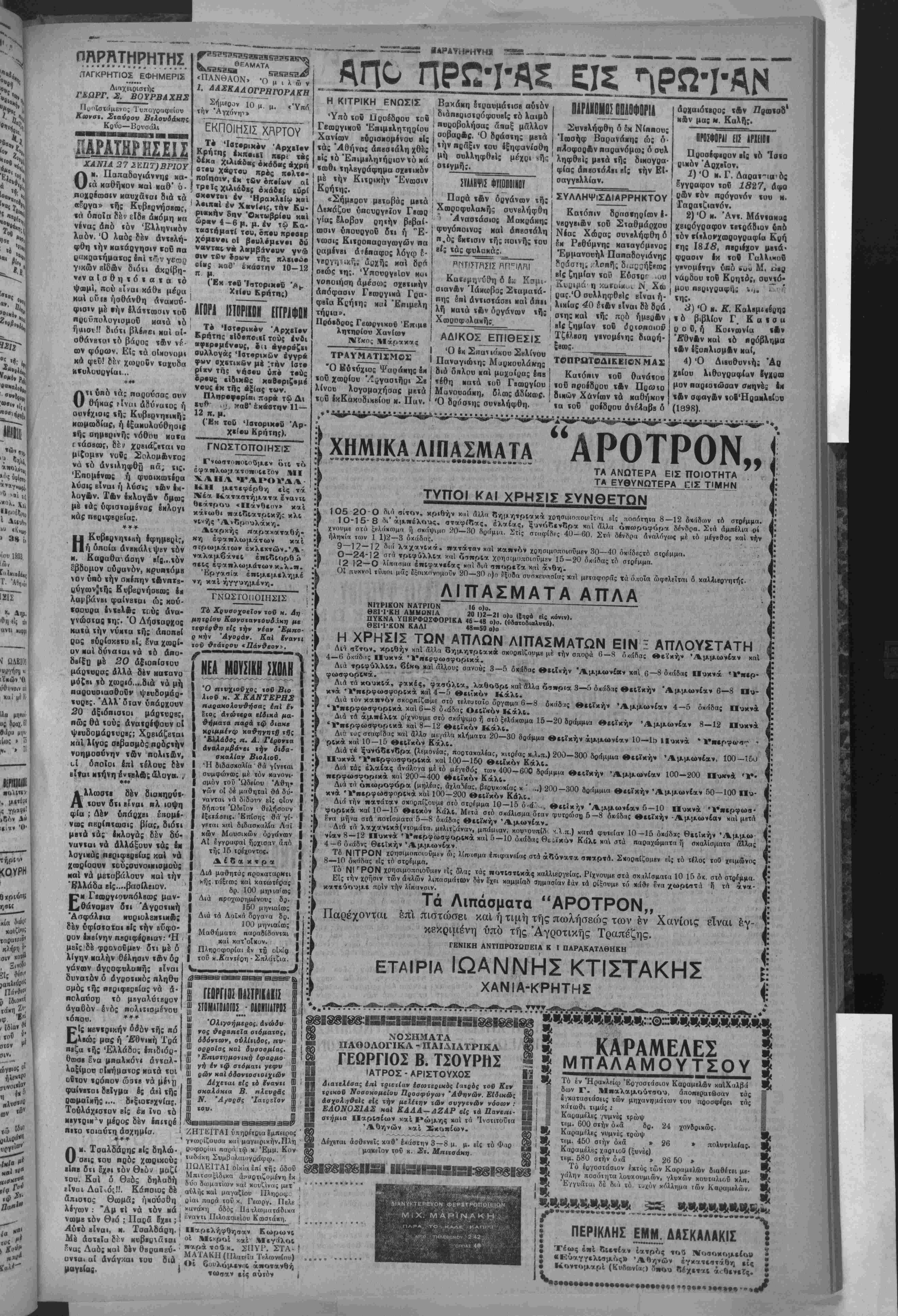 τος κόμματος καί <5ιά λογαριασμόν αυτού άναλη | "18*υτ'η «θεΐσα έ"κσινεν κα2 τό μέλλον νών κομμάτων καί ] τό μέλλον τοΰ πολκεύματος. Τό Λαϊκόν χόμμα έχά φη οριστικώς κάτω άπό τό αίμα των δολοφονη&έν των. Καί ή πολιχειακή άναχροπή απέτυχεν. "Ο,τι κα. άν λέγουν, ό,τι καί άν κάνουν σήμερον περισ¬ σότερον άπό κάθε άλλην φοράν είνε ανίσχυραι νά βλάψουν η μάλλον εΖ"αι ανίσχυραι νά επιτύχουν τι, διότι νά βλάψουν ε χον ν άκόμα δυσΐυχώς δλα τα μέσα, 'Λλλ' δλα τα οημεϊα των καιρών βεβαι¬ ούν ότι ό βίσς της Κυβερνήσεως είναι σύντσμσς. Οΰιως η άλλως, είτε πρό τού χειμώνος είτε με«ά τόν χειμώνο, αί εκλογαί είναι άναηόφενηχοι. ~0· που κι'άν πάη τό στάρι στό μΰλο θά γνπση.ΚαΙ μϋλος είναι η κάλπη καϊ χρέη μυλωνά εκτελεί δ Έλληνιπδς λαός. Άναποδράσταις ή Κυβέρνησις θά κτυπήσν; καΐ ο την θύ α τού Ελληνικόν λαοϋ, χον δηο'χον έξηπάτησεν καί νόν δηοΖον ηγνόηοεν.ΚαΙ τονε όψόμεθα... δουλβιές είναι χαταδικασμΒ*νες άλλαν βίδικών τού καί αύτΛν ΕΠΙΣΤΗΜΟΜΙΚλ ΖΗΤΗΜΒΤΑ βχ των προτέρων. ύπηοεσιών ; Έγώ εχα) άντίθβτη γνώμη. | Επ* αυτών πάντως τόν λό- Ή χρίσις μποοβϊ νά υπάρχη· ι Υθν έχβι ή Δ)σις Τ.Τ Τ. Χανίων, άλλά στή πβοίπτοοσι αυτή δβν ί>ιά την οποίαν είμεθα πβίΐβισμέ-