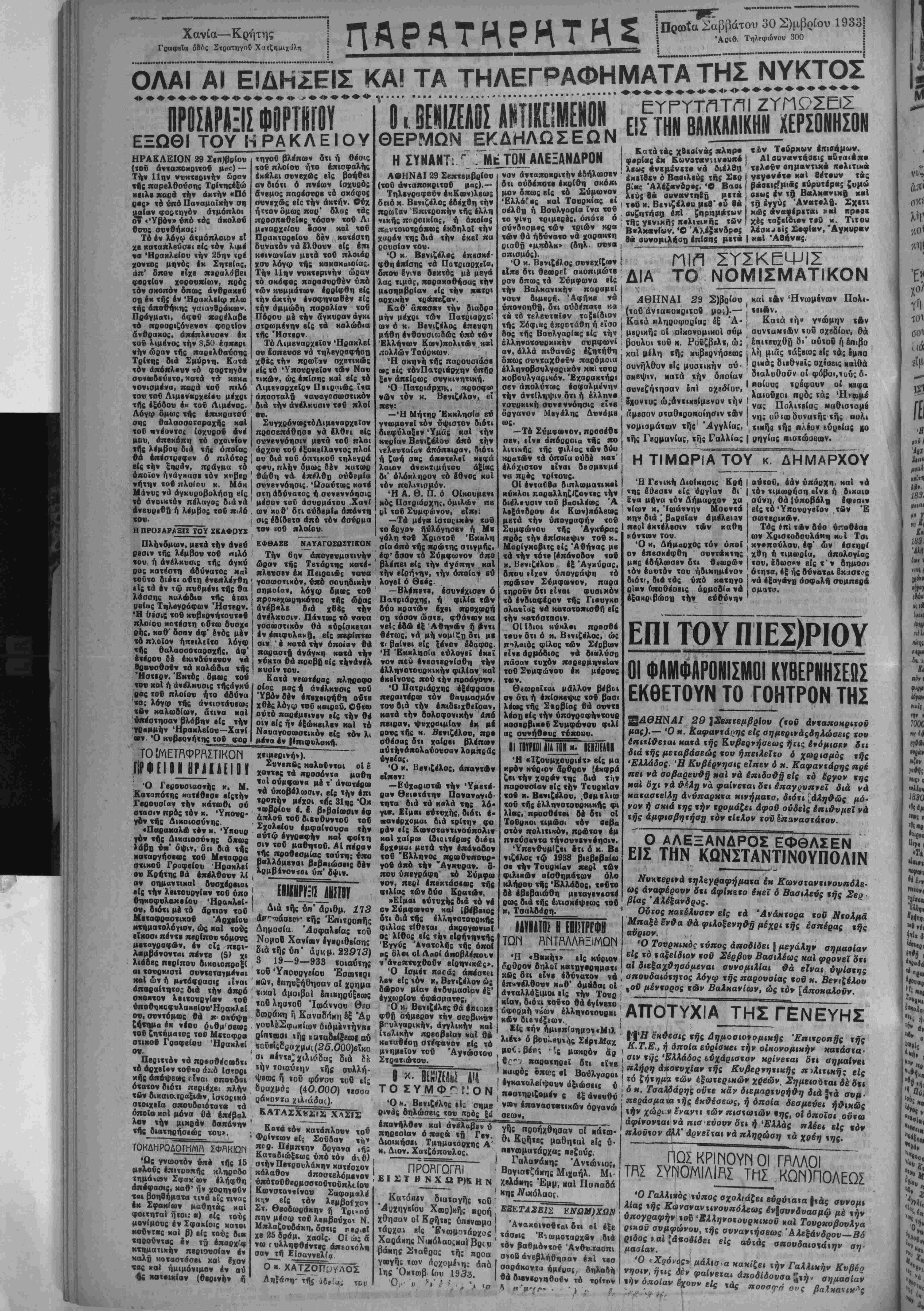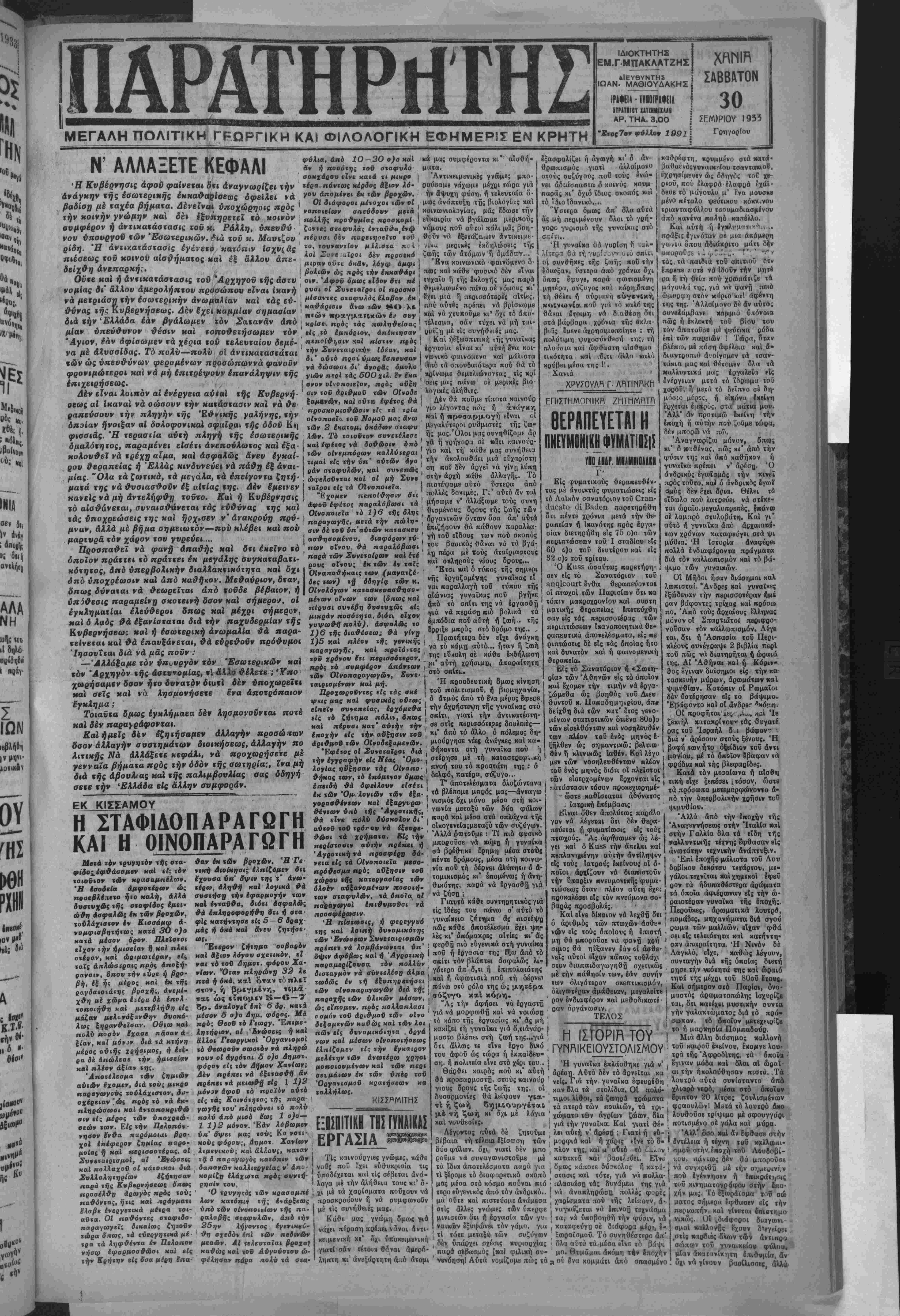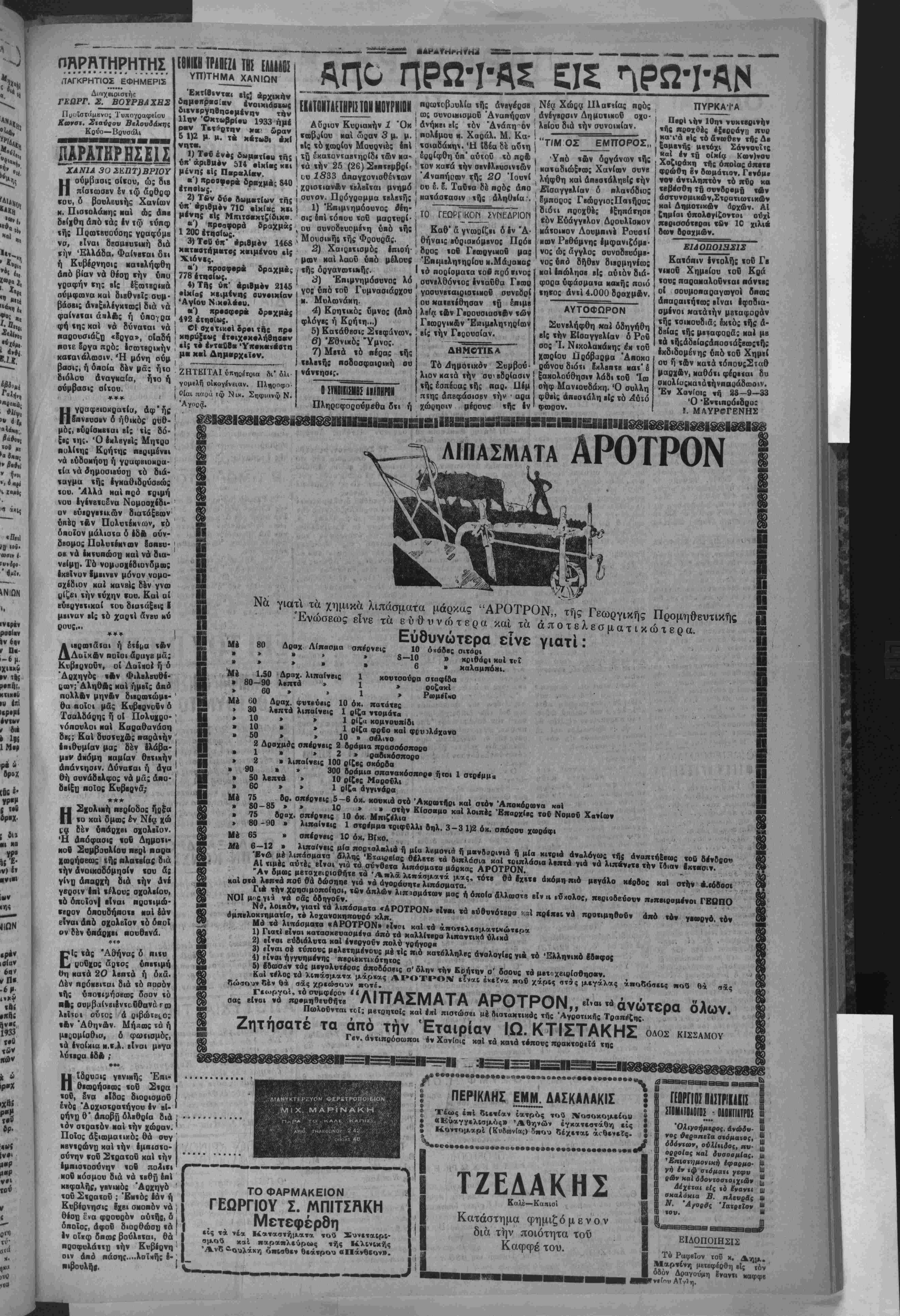 Στ. Θβοβωβάκην ή Τρι<.ού πην μέσω τοβ λβμβούχοι Ν. Μπλαζουδάκη, δστις τ βρ ιΐί χε25δοόμ. ΧβΟις. Οί ώ; « νωίυλληφθέντΐς άπεοτόλη σαν_τή Εϊσαννβλία Ο κ. ΧΑΤΖΟΠΡΥΛΟΣ . -.8 ΰ· ηβνωματάοχας ηΐζονς. Γαλανάκη; Αντώνιος, Βογιαε.ζίίι,ης Μιχαήλ. Μι· "Εμμ, Να1 Ποπαδά διαταγης ,ο0 Χ . αταγης ,ο0 -Μηγβίσυ Χωρ)κης ηροή , --ΕΓΑΣΕΙΣ ΕΝΩΜ)ΧΩΝ γωγής ΐων Λρχομίνη; 1ης Όιιτωβ, ίου 1933. Ό,, Ι ί' σαράκοντα ημρ θά διινιργηθοΰν »·/■/»·■ τεο δηλαδή _. 29 ΙΣβπνεμβρΙου (τοΰ ________„_ μας).— Ό κ. Καφαντάρης είς αημερινάςδηλώαεις χου επιτίθεΐαι κατά χής Κυβερνήσεως ήτις έψόμισεν δτι διά χής μεταβάαεώς χου ήπειλεϊτο ό χωριομδς τής Ελλάδος. Ή Κυβέρνησις είπεν ό κ. Καφαντάρης πρέ πει νά σοβαρευθή καΐ νά επιδοθή είς τό Εργον χης ΜαΙ δχι νά θ
