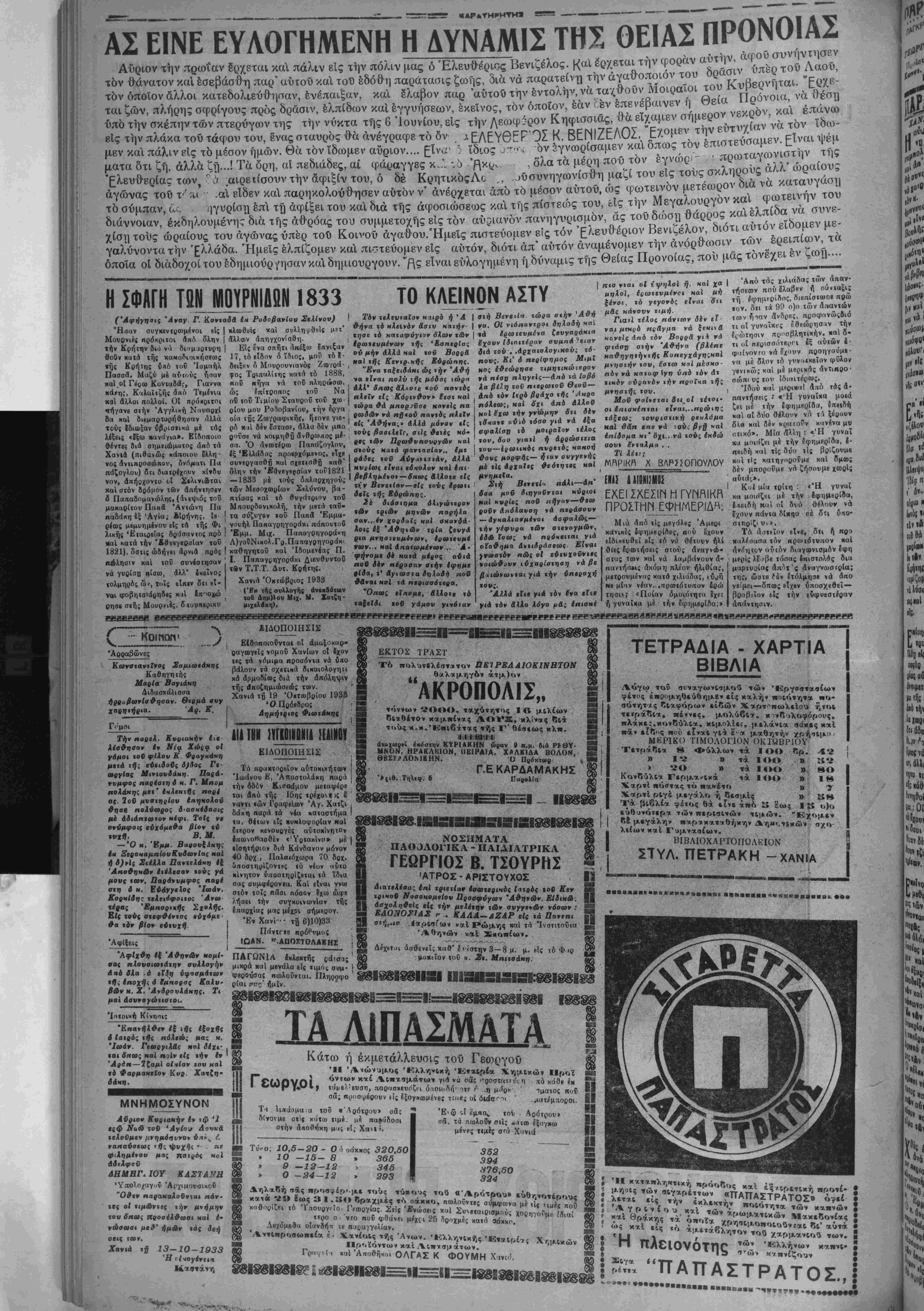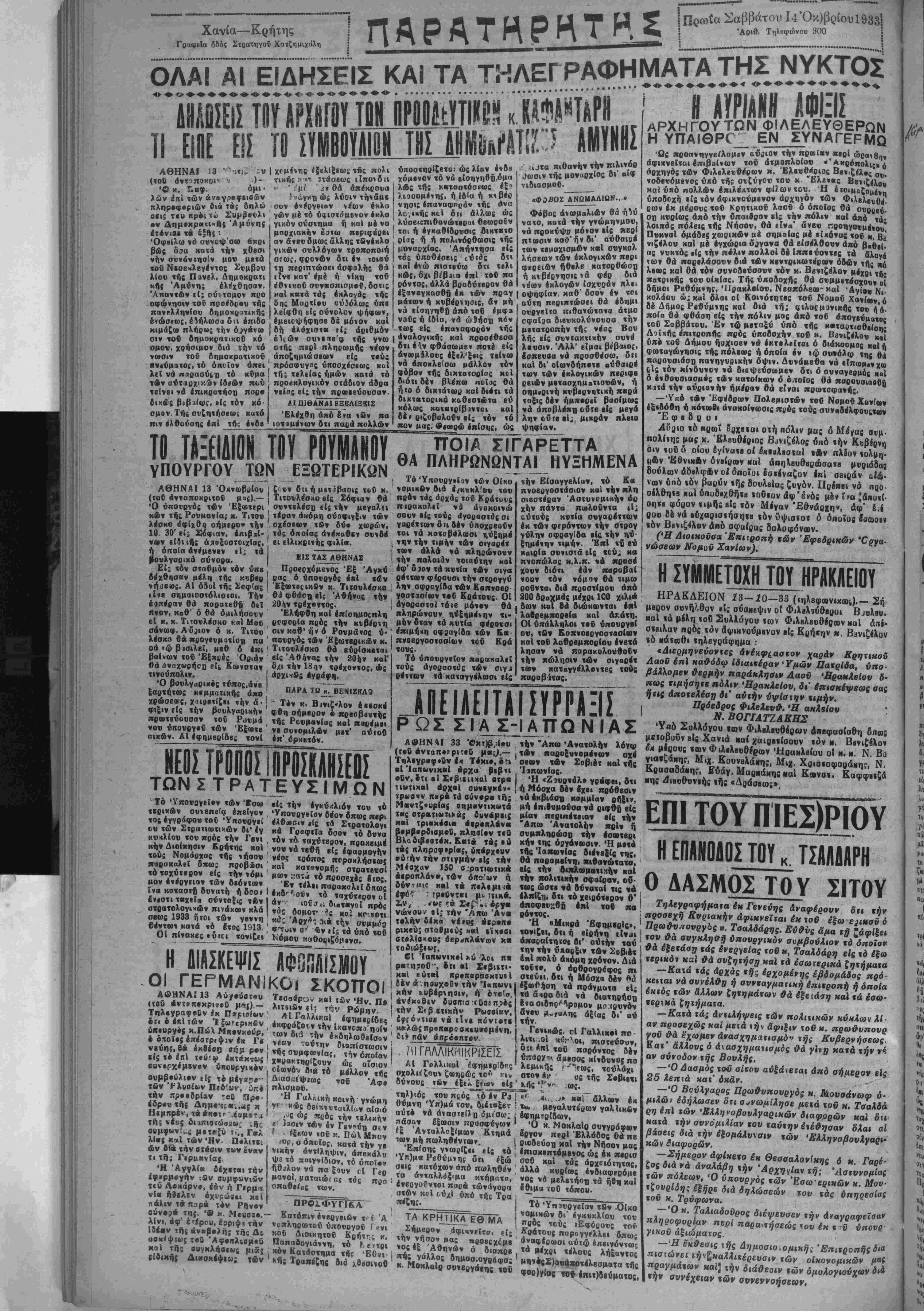 ΗΡΑΚΛΕΙΟΝ 13-10—33 (η,ΛΒφων.και,).— Σή