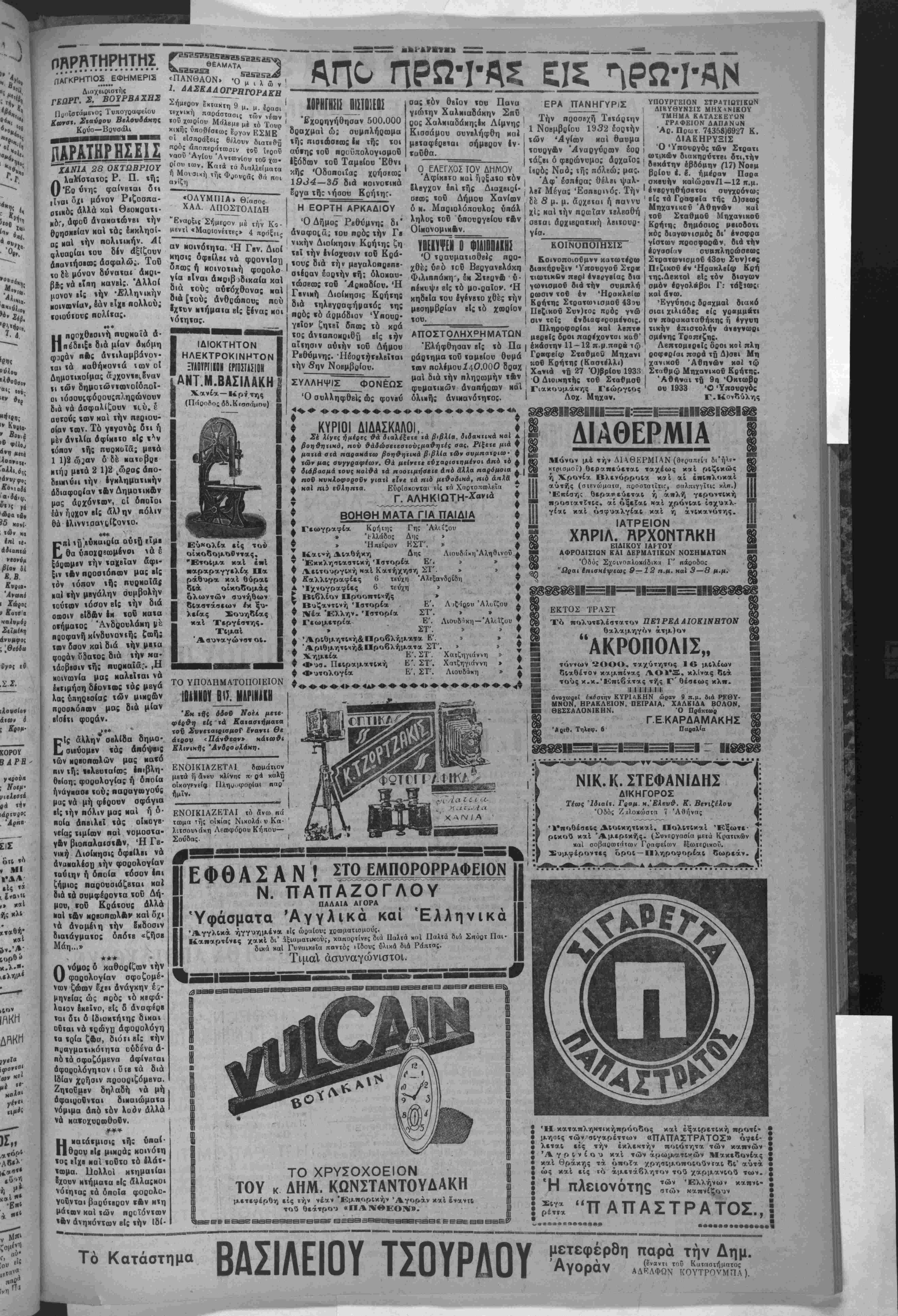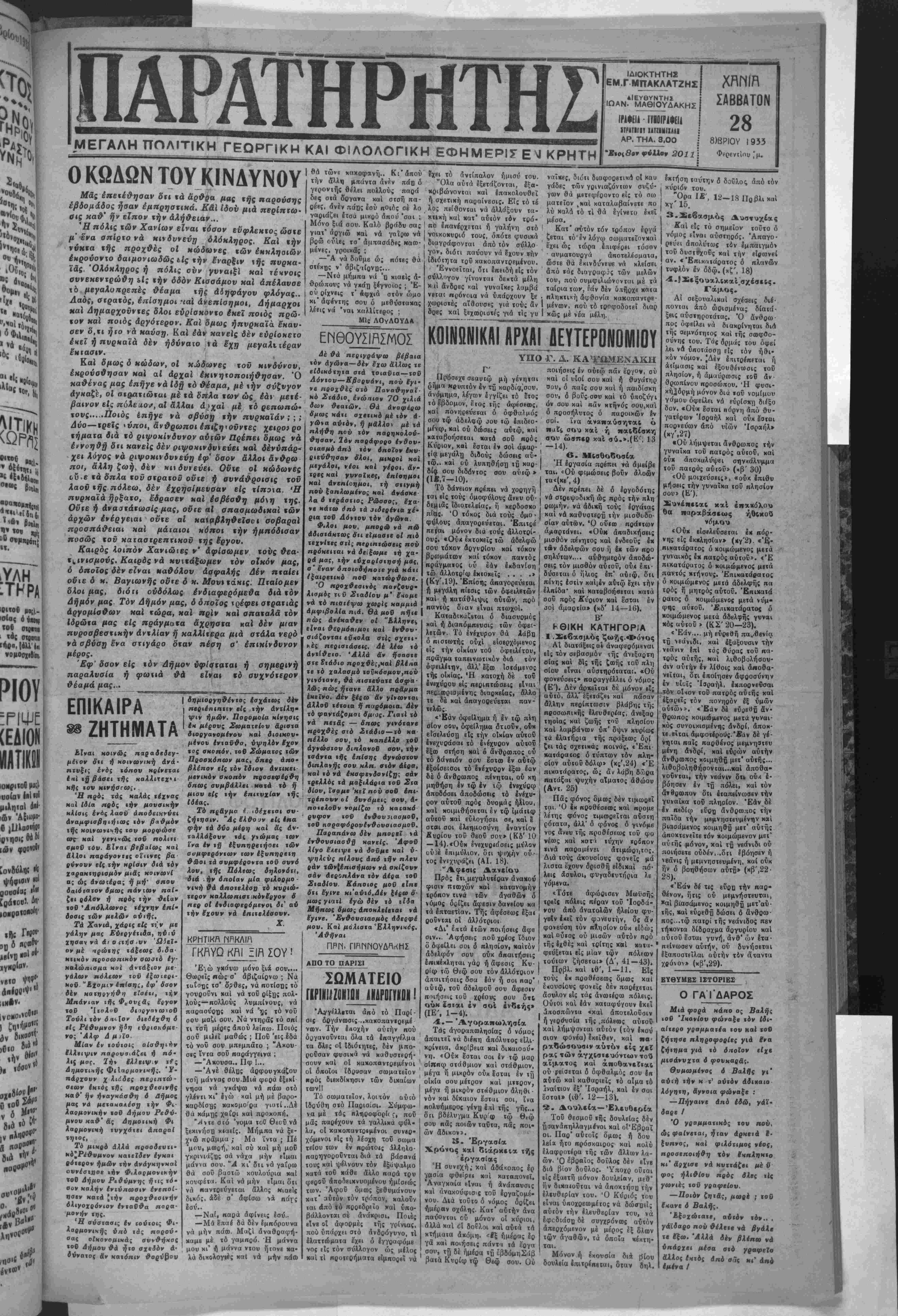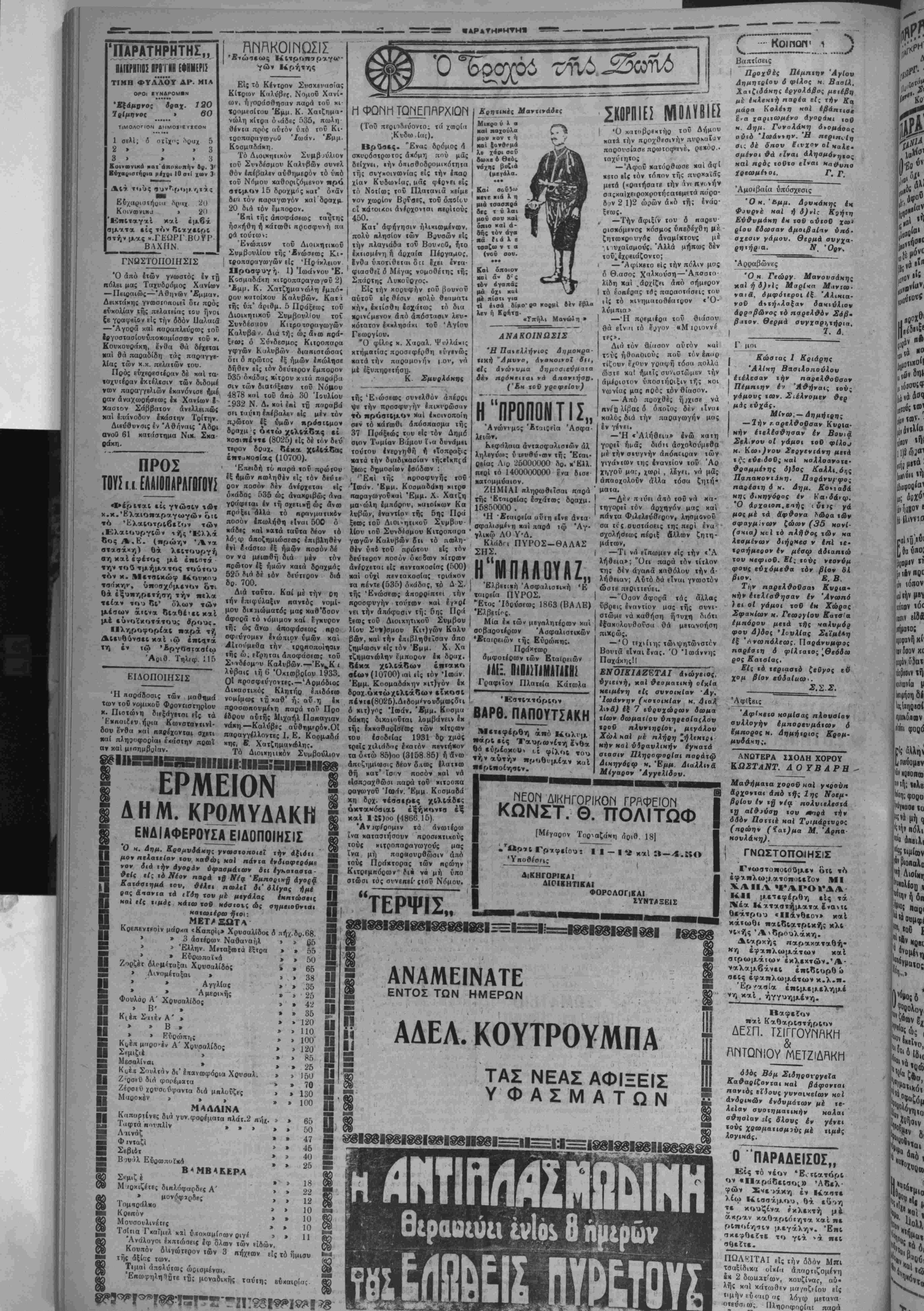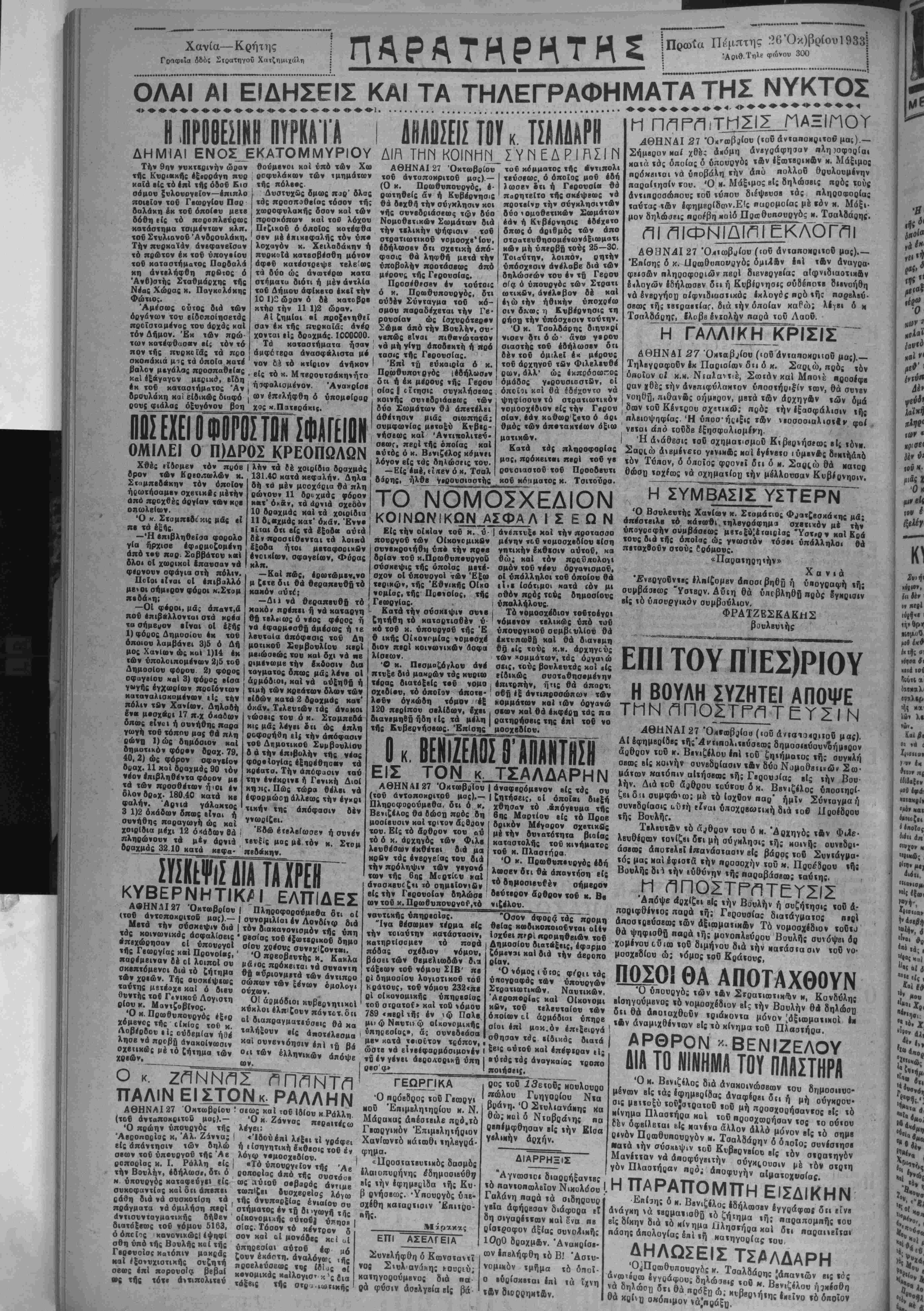 ιΙ»ε ίσότιμοι κατά <όν μι οθόν πρός τοός δημοσίονς ύπαλλήλους. Τό νομοσχέδιον τοβτοέγρι νόμβνον τβλικως υπό τοβ ύπουργιχοΰ συμβιυλίον θά έχτνπωθυ καί θά διανβμη θά είς τονς κ.κ. άρχηγεύς των κομμάτων, τάς ό^γανώ σεις, «ούς βουλβντάς καί είς ειδικώς σνοταθησομένην έπιτρπήν, ήτις 0ά άπορτι ο€·β έξ άντιπροσώηων των ΠΙΔΕΣ Α·ΗΝΑΙ27 Όκτοοβρίου Ι Πληροφορούμεθα διι οί (τοβ άντοποχοιτοΒ μας).- | σννομιλΐαι έν Λονδίνω διά *ήν σύσκβψιν διά | τόν διακανονισμόν τής ΰπη Μβτά τάς κοινωνικάς •πβχώρησαν οί ύπονβγοΐ τής Γβωργίας καί Προνοίας, παρέμβιναν οέ εί λοιποί ου σκβπτόμενοι διά «ό Εήτημα των χρεών. Τής ουσκ.ψεως ταύτης μβτέαχβ καί ό βιβυ ίί ρεσίας τοβ έζωιερικοΰ δημο οίον χρέονς σννεχΐζοντοΐι. Ό πρβοβευτής κ. Κακλα μάκος πρόκβιται νά σνναντη *β «ΰριονμετά των άντιπρο σώπων των ξένον όμολογι ουχων. Είς την οικίαν τοβ μ. ύ- πονργοΰ των Οίκονομικβν σννβκοο«ήθ·ι υπο την πρββ δρίαν τοβ κ.Πρωθυπουργοΰ σύσκβψις τής οποίας μετέ¬ σχον οί ύπουογοΐ των Έξω τερικφν, «ής Έθνικής Οίκο νομΐας, τής Ποβνοίας, τής Γεωργίας. Κατά την σύσκεψιν ου*β ζητήθη τό καταρτισβέν ν- κό τοβ κ. ύπουργοΰ τής Έ θ ιχής Οίκονημίας νομβσχέ διον πβρί κοινωνικΑν άσφα λίσεων. Ό κ. Πβσμαζόγλον άνέ πτυξβ διά μακρών τάς κνριω τέρας βιατόξβίς τοΰ νομο σχβδΐου, τό οποίον άποτβ- λββν όγκώδη τόμον έξ 120 πβρίπου σβλίοων, Ιχβι διανεμηβή ήδη ιίς τα μέλη Ι ρατηρήσβις της επί τής Ευββρνήσβως_Έπ(σης μοοχβδίον. !■: ΒΕΗΤΖΕΛΟΣ ί'ΑΠΑΙΤΗΣΪ Σ ΤΟΝ κ. ΤΣΑΛΔΑΡΗΝ ΑΘΗΝΑΙ 27 Όχϊωβίίου | αναφερόμενον βίς τας ου (ιοΰ άνταποχριτοβ μας).— | Εητήσεις, οί οποίαι διβξή χθησαν τό βηόγβνμα τής βης Μαρτίον βίς τό Προβ δρικόν Μέγαρον σχβτικβς μέ «ήν δυνατότητα βιαίας καταστολής τού κινήματος τοβ κ. Πλασιήρα. Ό κ. Πρωθυπουργόν έδή λωσβν βτι θ« άπαντιΐση βίς «ό δημοσιβυ€έν σήμερον δεύτερον άοθρον τοβ κ. Β« νιζέλον. τοβ νο Ό Βσνλβντής Χανίων κ. Σταμάτιος Φ^ατζβσκάκης μά; άπέστβιλβ τό κάτωθι, τηλβνοάφημβ σχετικόν μέ την υπογραφήν συμβάσεως μβτοξύ,έταιοΐας Ύστ#ρν καί Κοά τους διά τής οποίας ώς γνωστόν τόσοι ύπάλληλοι θά πβταχθοΰν στοΰς ίρόμονς. «Παοαιηηηιήν» Χανιά 'Ενβργοβντες ίλπίζομβν άποσιβηθ^ ή υπογραφή «ή; συμβάαβως "Ύσιβρν. Δΰίη θά υποβληθή πρός δγκρισιν β(ς «ό υπουργικόν συμβούλιον, ΦΡΔΤΖΕΣΚΔΚΗΣ βοολβυιής ε πΤτουπ1ίΕσ)ρ ι ου Η ΒΟΥΛΗ ΣΥΖΗΤΕΙ ΑΠΟΨΕ ΤΜΝ ΠΠΟΣΤΓΠΤΕΥΣΙΝ κ. δή Πληροφορούμεθα, διι ό ΒβνιζίΛος ϋά δώοη πρός μοσίβυσιν καί τρίτον δβ τον. Είς τό άρθρον τον &ύ τό δ κ. άοχηγός των Φιλβ λβυθέθων έκθέτβι διά μα κρβν τάς ενεργείας τον διά την πρόληψιν των γεγονό των τής 6ης Μοοτίον μ αί άνασχβυίζιΐ τό οημ·ίονι&ν βίς την Γερουσίαν δηλώσ· ών τοβ χ. ΠοωβυπουργοΓ,τό άποτβ'λβσμα χμς^ς^το^κ Λοβέρβου ιί: ούδβμίαν ήθέ β λησβ νά προβή ανακοίνωσιν και °«*β»»όησιν επί ιβ οχβιικώς μέ τό Εήτημα «ών °«» *»» ελληνικήν Χβ§ών·__________ών. ο κ. ζηΝΝΠΣ ναυτικής ύπηρεοίας. "Ινα Θέσοομβν τε*ρμα βίς την τοιαύτην κατάστασιν, κατηρτίσομβν τό καρά πόδας σχέδιον νόμον, βάσει των θβμβλιωδων β.α τάξβων τοβ νόμον ΣΙΒ' πβ ρί δημόσιον λογιστικοβ τοβ Κράτους, τοβ νόμον 232<πβ οί οΐκονομιχής ύπηοεσίας τοΰ σιρατο€> καί τοδ νόμον