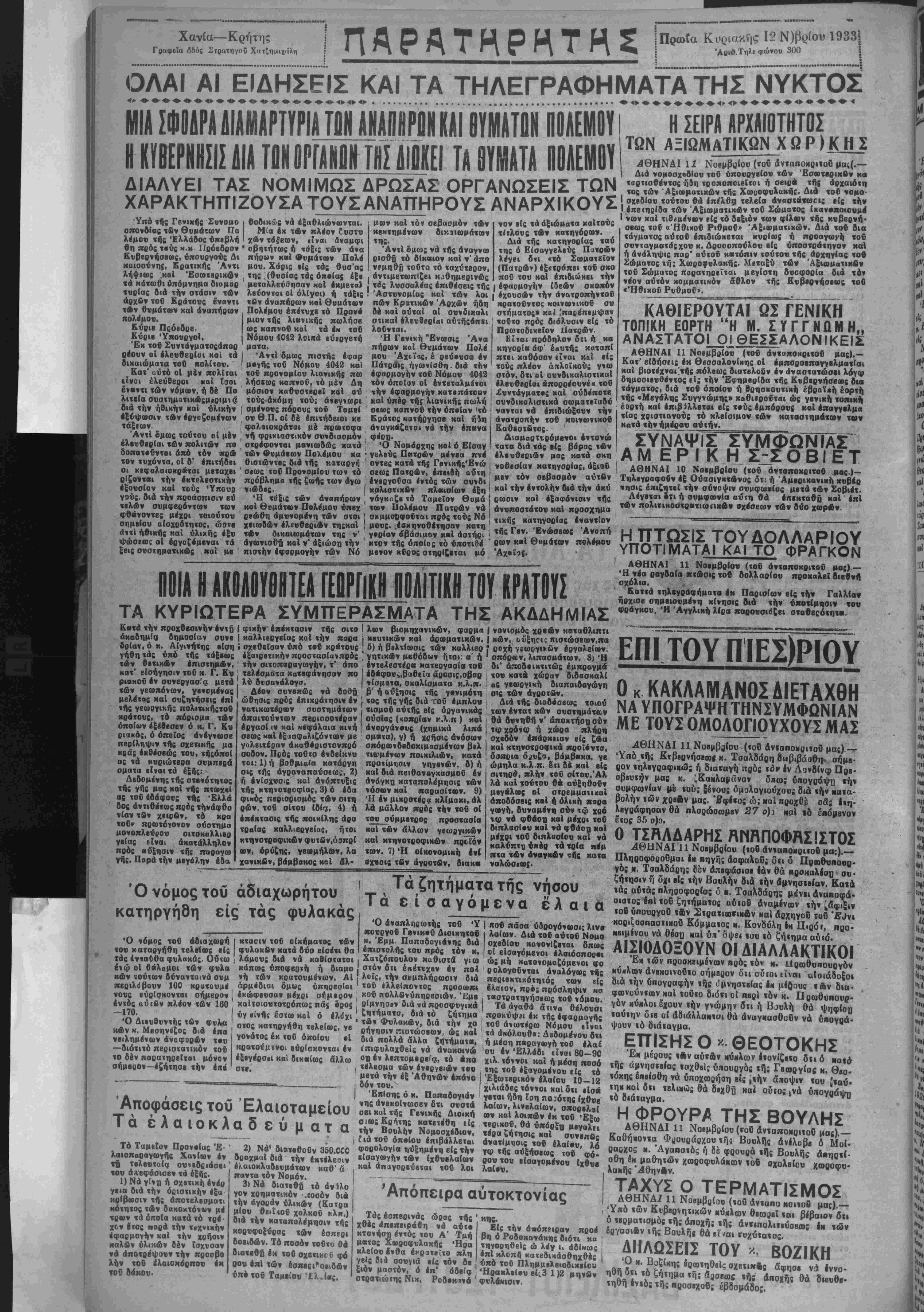 ΑΘΗΝΑΙ 11 Νοβμβρίου (τού ανταπο κοιτοβ μας).~