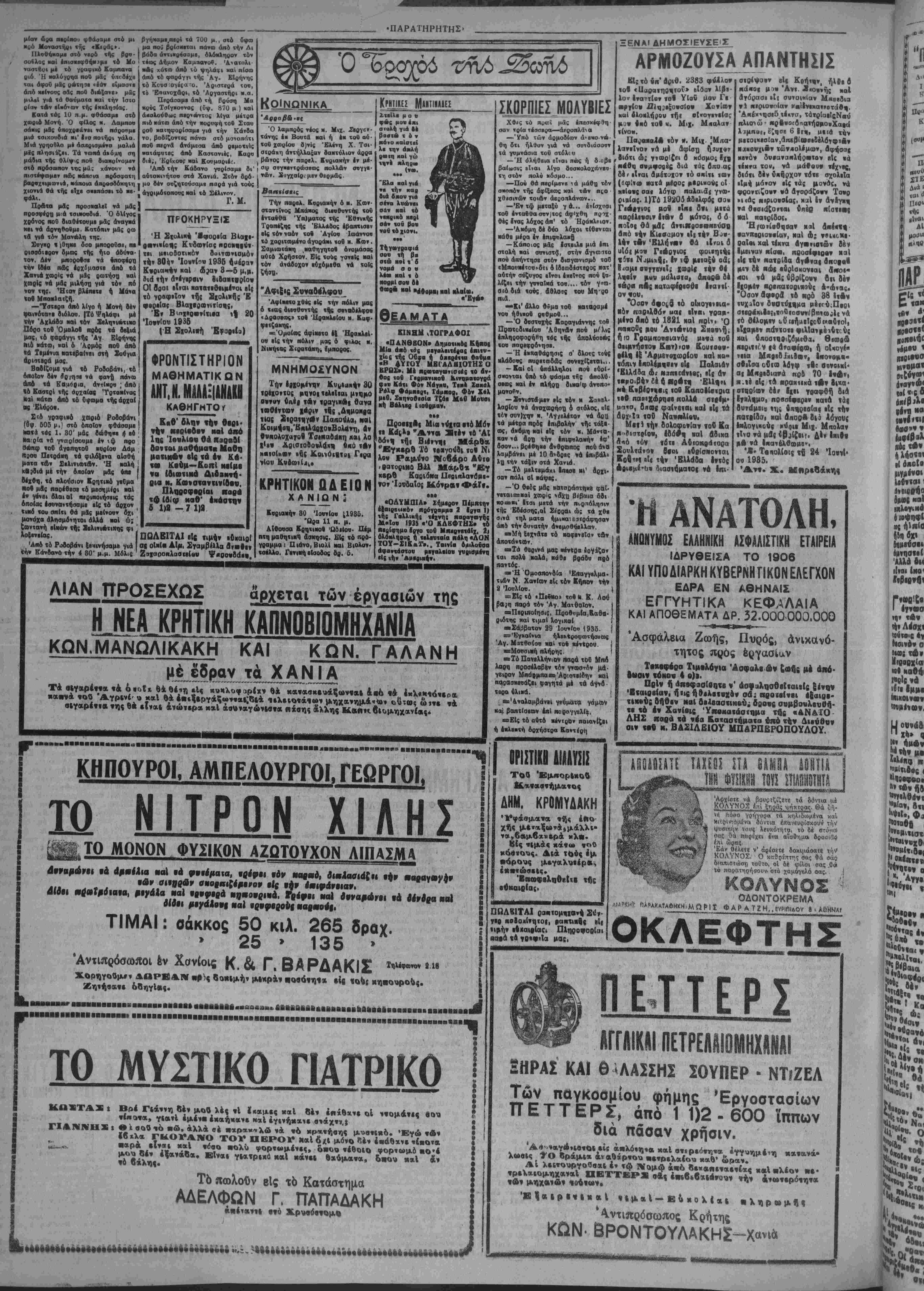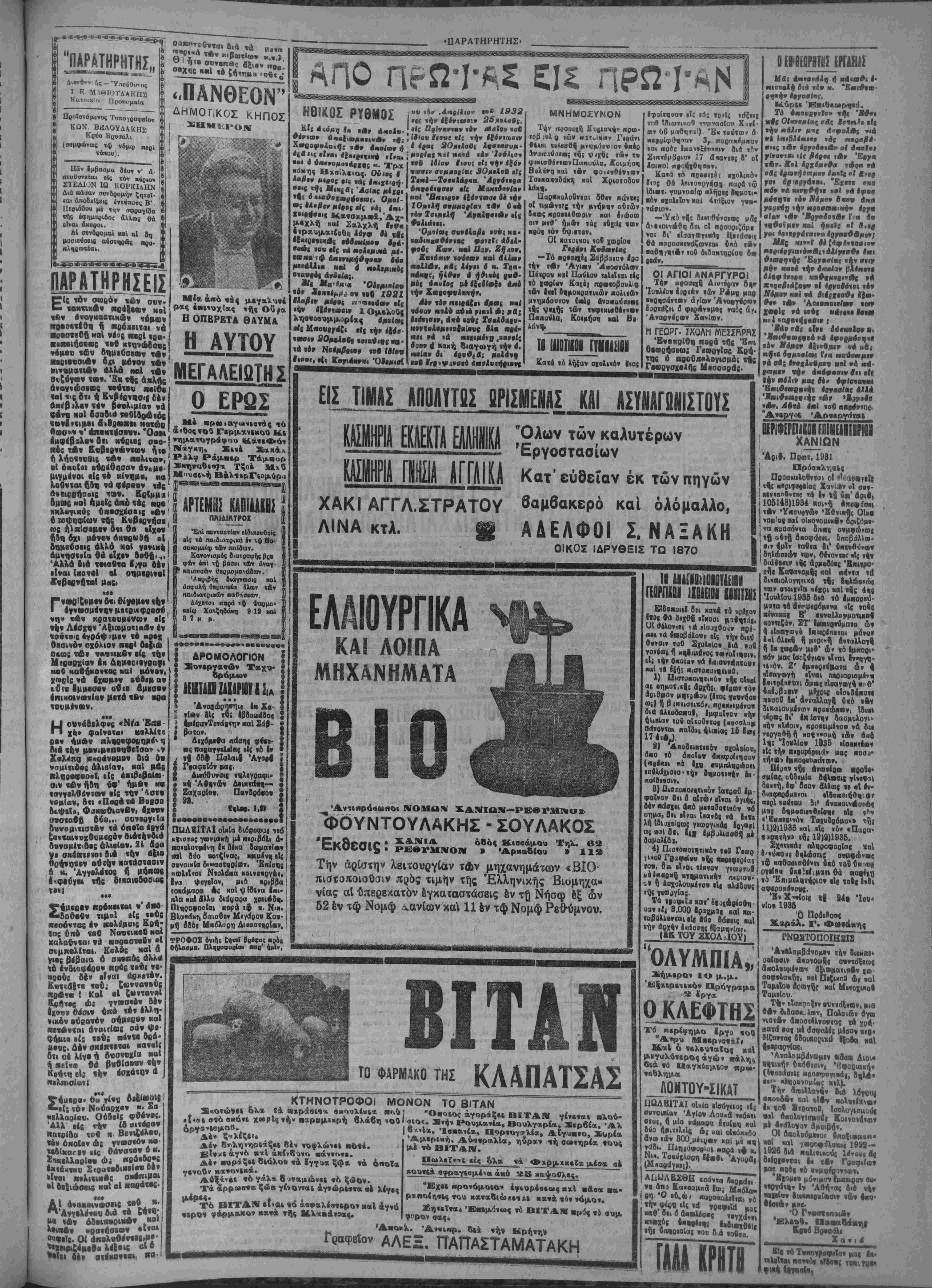 ώφειλες ν& ξέρης, κύριε αρχηγέ κόν*ματο<» δτι ύπάρχιΐΒυο είδών Αιβώ. Ή βημοσΐ- καί ή ίδιωτΐκή. ** αί γιβ ' μέν την ίοιωιιχή β ς, οέν έχομεν ξέρετε την δρεξιν νά ένοια* φερθώμεν. Άλλά βιά την Δημοσίαν... •Έτσι ακριβώς χαί ό άδιάχρΐτος "Ομ ρος, ρεζιλεύη τόν άμοιρον Άχιλλέ μέ την Βρυ- ση(6α... Τί βύμπτωσιςϋ " * ς είναι» Γιά νά κερΒίβης Βήθ»ν δι» βήθεν Ιχαβες, βηλώνεΐς την επομένην (άλλη ιίμηιωιθ τού ρεζιλεύ· ματός βου, δνι εΙααιν.Ι&Ιεταξιχόςχ Λίθος, μ &ύη, λθ «! Δέν ηταν άνάγχη νά βηλώ- τίποτα. Πρώται «ροτχ τό Ιέρνμβ. Δεύ· ^ΐ έέ ίάί 1 βέ Ι τερον^ΐν έκέοοισες τ'{«οτα&νλα χαί βέν Ιχχ βεε τ£ιιοτα. ίΕίρεις, χ. Κοΐοάλη, Χ4ΝΕΙ ΚΑ¬ ΝΗΣ Ο,ΤΙ ΕΧϋΙ.... ΙτΜΒΠΡΒΡΡΒΒΟΒ Μιά φορά, βιά νά τελειώνωμεν, όλαι χλεί- ονται στήν τελευταία σου φράσι, α* έχ·ίνο τό άνακουφιστιχό «ώχ άΗερφέϋ» Τώρα «ολ«- τεύεσαι πειά παβτριχά, ξεχαθαρισμένα. Έ* μεϊς έχομεν ήσυχάσει πρό «ολλοθ, χαί (νά ιϊ «ουμ ε) 6έν έβικαιολογούσαμενΐτήν ί&κκήν βου ανησυχίαν Τώρα ήσυχ^ζεις κι' εαύ. Δό- ξα τώ Θ·ώ. ΕΪσαι τόσο «Ρθβερός δτβν εΐσκι «νήαυχος όπως ακριβώς ο 'Αχιλλεύς... Τώρα; Τώρα, χ. Κονδυλη, τάχεις κάν« μούβκεμα ! ΉμιΙ;· τό ξέρεις ν«λ&, βέν σέ θ4λουμε. "Εφυγες εύτυχώς άηό την Δημο· κρατία. Ιλά, χριστιανέ, «ολυ «ργ' τό κ«τά>