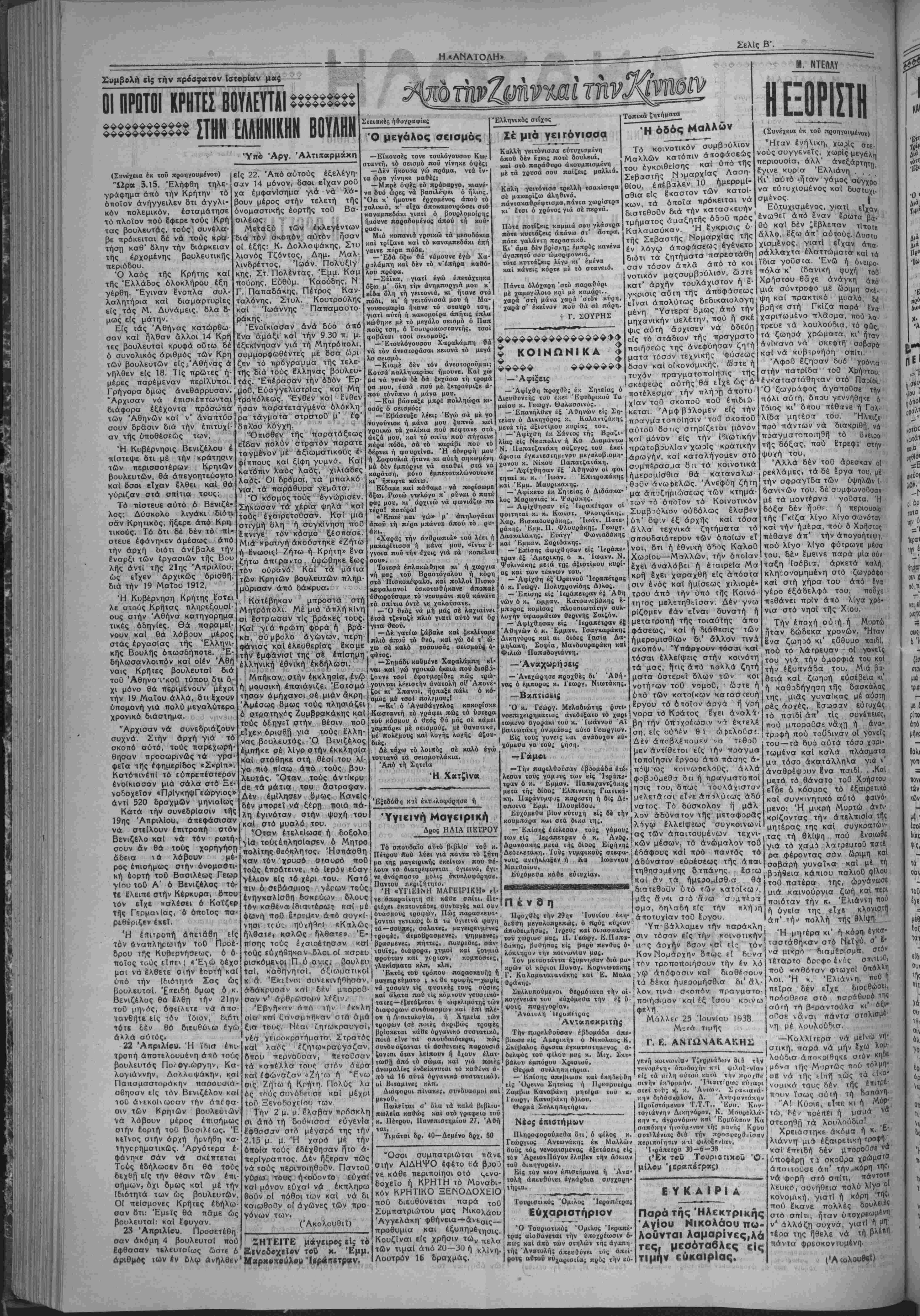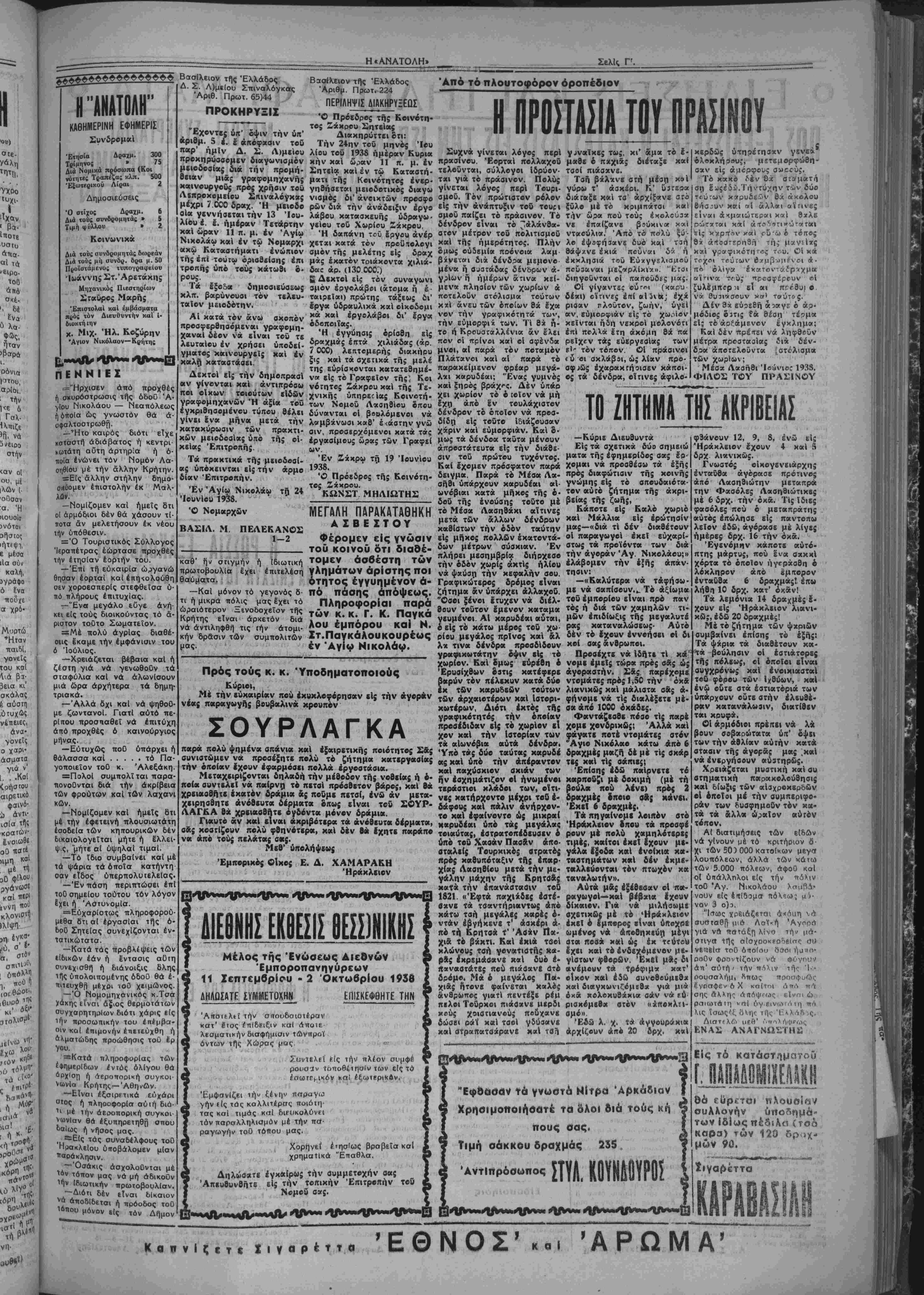 άπό 1 Ιουλίου μέχρι 31 Αύγβύστ«υ 1938. ,
