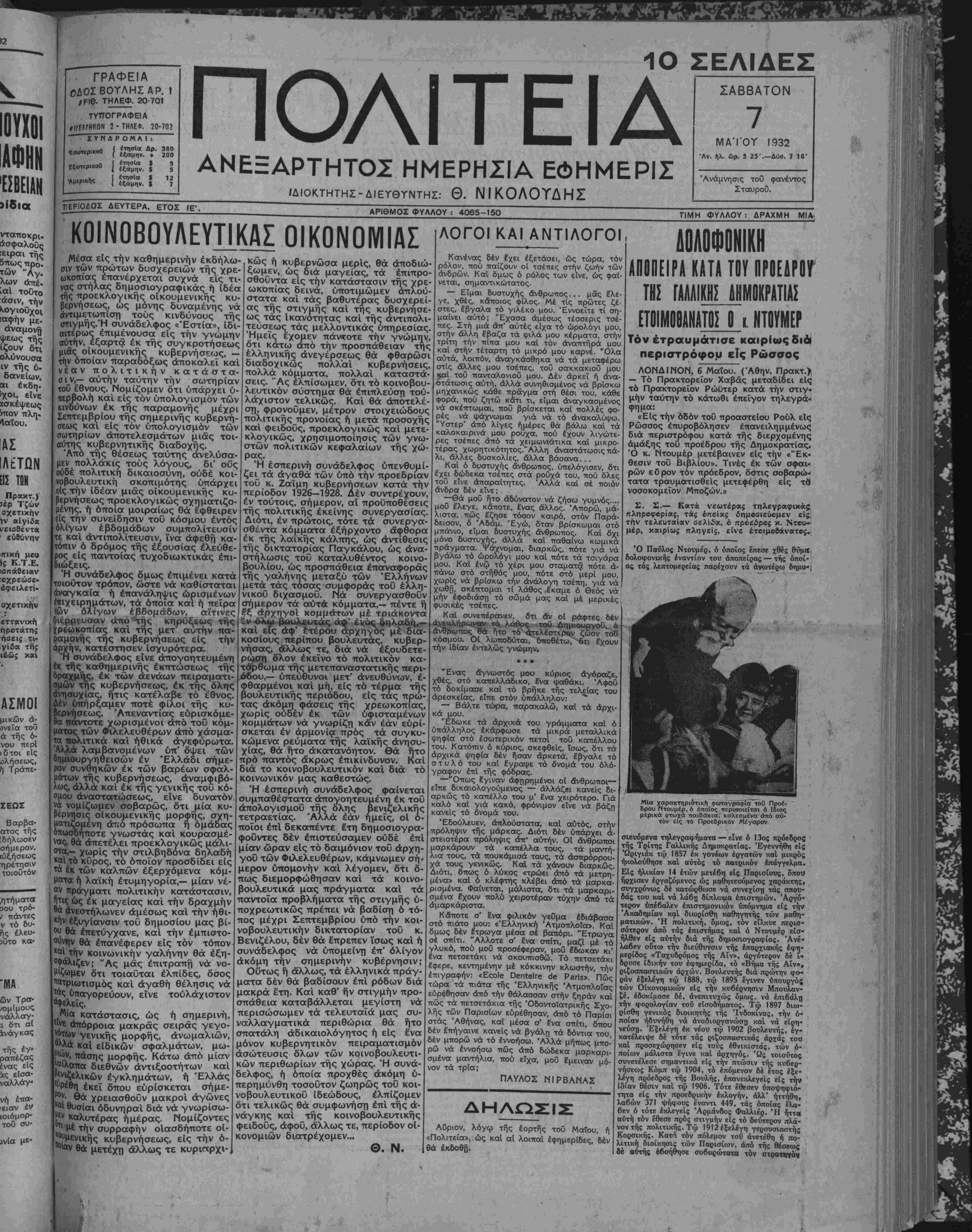 Ντουμέρ καί την γαλλικήν κυβέρνησιν,