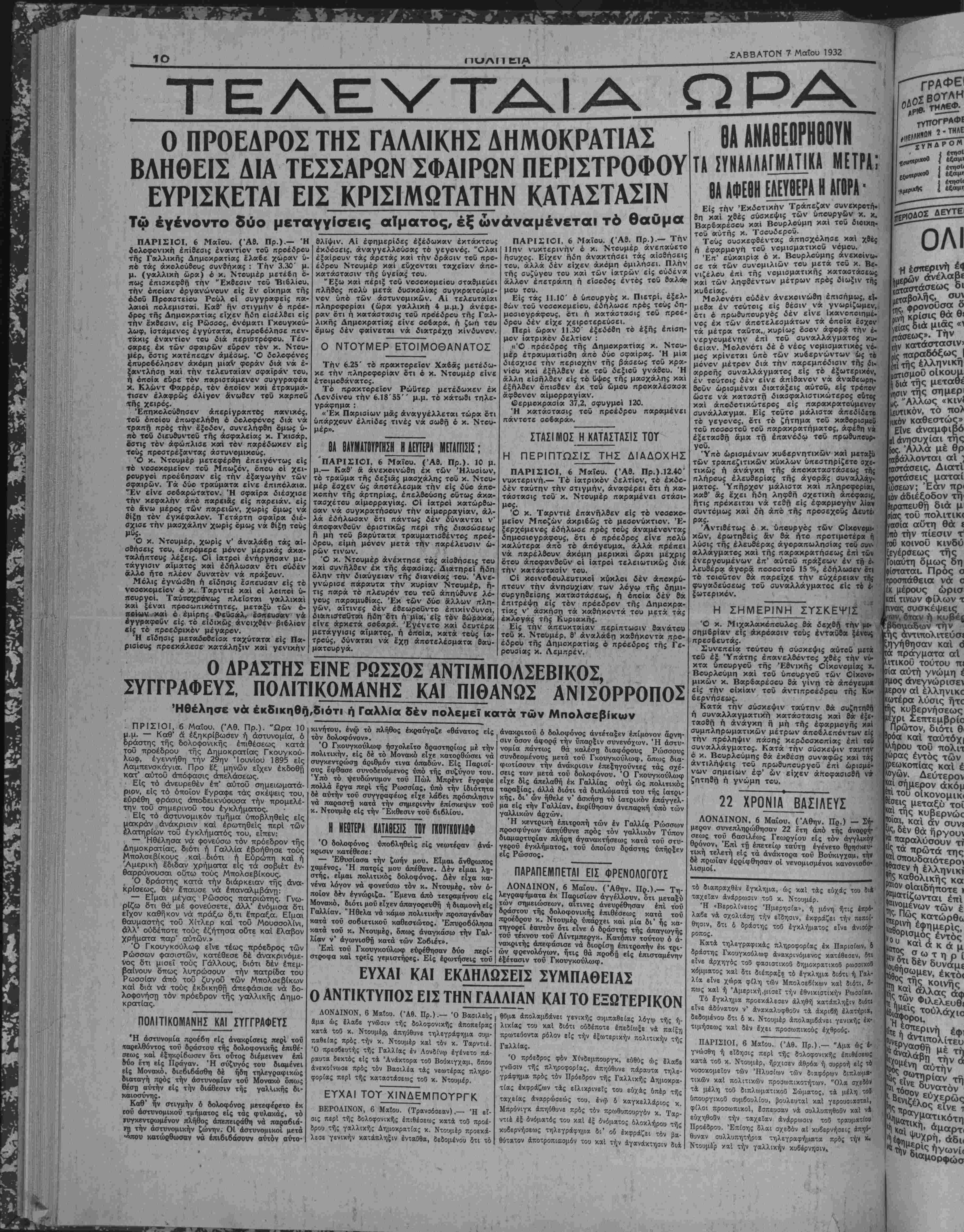 κατά τοδ κ. Ντουμέρ, ήρχισεν άθρόα ή συρροή είς τδ