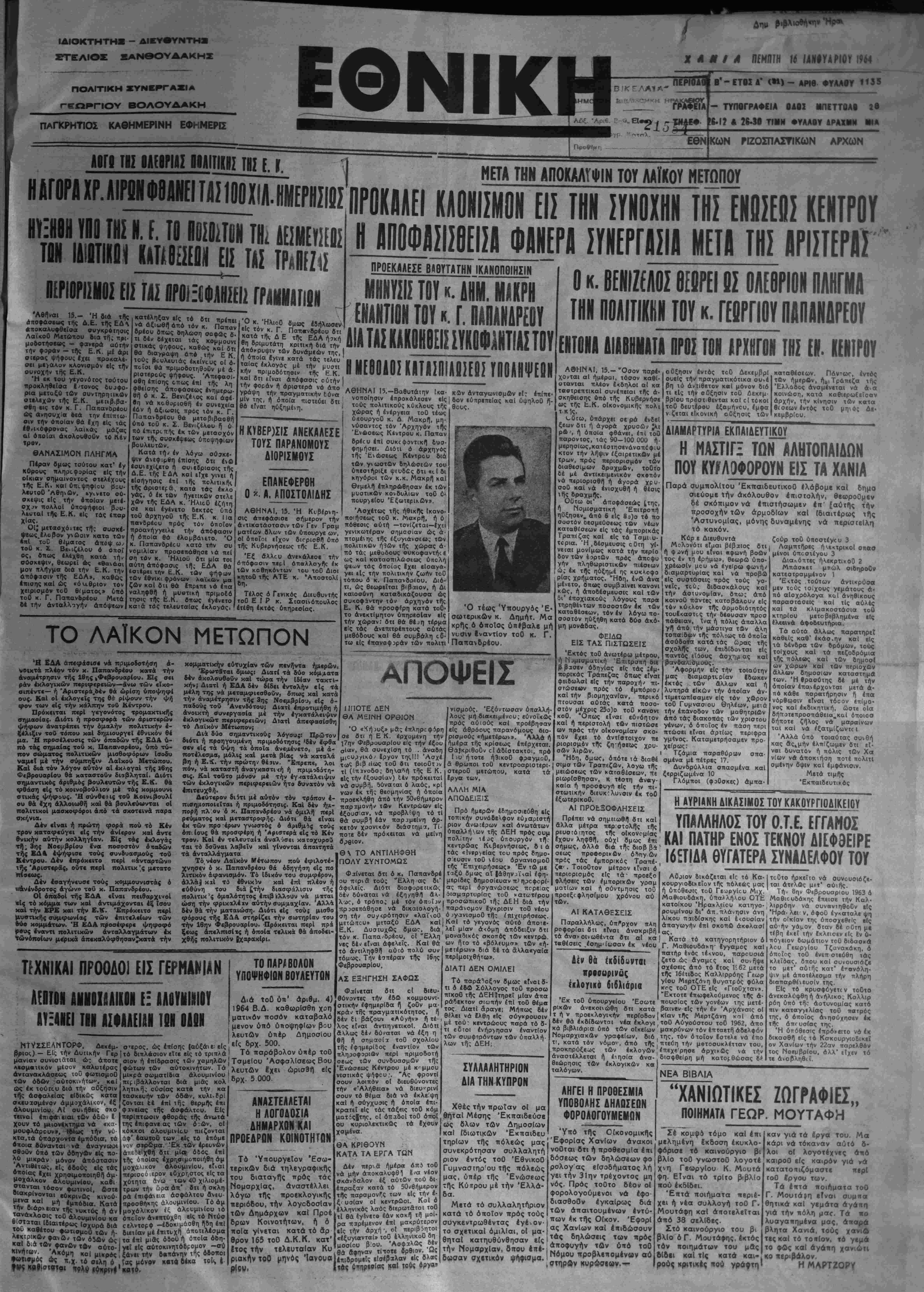 λευτού1 Αθηνών, ·γ<.νετο ού· σκέψις είς την οποίαν μετέ¬ σχον πολλοί ύποψήφιοι βου- λ&υταΐ τής Ε.Κ. είς τάς ίπαρ Οί; μβταοχόντες τή1; οοσκί- ψεωςέλοβον γνώσιν κατα των ΑκΙ τοθ θέμα τος άπόψ ω; τοΰ κ. Σ. Βενιζέλου ό όποΐ ος, δπως *λεχθη κατά τήν σύσκεψιν, θεωρεϊ ώς «θανάοι μόν πλήγμα διά την Ε.Κ. την απόφασιν τής ΕΔΑ», καθώς ίπισης καΙ ώς «όΐι,θριον τον χειρισμόν τοϋ θέματος» υπό τοθ κ. Γ. Παπανδρέου Μετά 6ε την ανταλλαγήν άπόψεων κατέληξαν βίς τό Οτι πρέπει νά άξιωθή άπό τόν κ. Παπαν βρέου δπως οηλωση σαφώς 6· τι δέν βέχβται τάς κομμουνι οτικάς ψήφους, καβώς κοί Οτι θά διαγραψη άποψην ΕΚ. τούς βουλευτάς έκείνςυς οί ό· ποΐοι θά πριμοδοτηθοθν μέ ά· ριοτερούς ψήφους. Απεφασί¬ σθη έπίσης όπως επί τής λη φθείσης αποφάσεως ένημερω· θή ό κ. Σ. ΒενιζίΛος καί άφέ θη νά καθορισθή έν συνεχεία έόν ή άξιωοις πρός τόν κ. Γ. Παπανδρέου θ© μετοβιβαοθή υπό τοΰ κ. Σ. Βενιζέλου ή Ο πό έπιτρι,π^ς έκ των μετασχόν των τή·, συσκέψεως ύποψηφιων βουλευτων. Κατά τή/ έν λόγω σύςικε· ιν ανεφάνη έπίσης δτι έν Ο έσυνεχίςετο ή ουνεβριασις τής Δ.Ε. τής ι:ΔΑ καί εΐχε γινει ή εισήγησις επί τής πολιτικάς τής άριοιερα, κατά τάς έκλο γάς, ό έκ των ήγετικων στελε χΛν τής ΕΔΑ κ. Ήλΐοθ έζήτη σε καί εγένετο δεκτος υπό τοθ άρχηγοθ τής Ε.Κ κ Πά πανδρέου πρός τόν οποίον προανήγγειλε την απόφασιν ή όποία θά έλομβάνετο. Ό κ. Παπανδρέου κατά την συ νομιλίαν προσεπάθησε ν ά πεί ση τόν κ. Ηλίου ότι μία τσι αύτη απόφασις τής ΕΔΑ θά έοτέρει την Ε.Κ. τ»ν ψήφων των έθνικι φρόνων λαϊκόν μα ζων καί ότι θά ίπρεπε νά έπα ναληφθή ή μυβτική πριμοδό τηοις τής Ε.Κ. βπως εγένετο καιά τος τελευταίας εκλογάς, Ο κ. ΉλιοΟ βμως εδήλωσεν ϊΐς τόν κ. Γ. Παπανδρέου βτι κατά τής Δ Ε τής ΕΔΑ ήσκή θη δριμυτάτη κρΐτΐκή διά την άπόκριοψιν των δυνάμεών της, ή όποία ίγΐνε κατά τάς τελευ ταίας εκλογάς μέ την μυστι κήν πριμοδότηοιν τής Ε Κ. καί βτι εΓναι απόφασις ούτήνΙ την φοράν ή άριστερά νά άπο γράψη την πραγματικήν Ιόνα μίν της, ή όποία πιστεύει δτι θά εΓναι ηύξημένη. ' ΜΕΤΑ ΤΗΝ ΑΠΟΚΑΑΪΨΙΝ ΤΟΥ ΛΑΪΚΟΥ ΗΕΤΩΠΟΥ ΚΛΟΝΙΣΜΟΝ ΕΙΣ ΤΗΝ ΪΤΝΟΧΗΗ ΤΗΣ ΕΗΟΣΕΙΣ ΚΕΝΤΡΟΥ Η ΑΟΟΦΛΣΙΣΟΕΙΣΑ ΦΑΝΕΡΑ ΠΚπΊΜ ΜΕΤΑ ΤΗΣ 1.ΡΙΣΤΕΡΑΪ Ο κ. ΒΕΝΙΖΕΛΟΣ βίίΡΕΙ 12 ΟΛΕΟΡΙΟΙΠΑΗΓΜΑ ΤΗΝ ΠΟΛΙΤΙΚΙΙΝ ΤΟΥ κ. ΓΕΟΡΓΙΟΥ ΟΑΠΑΗ1ΡΕΟΥ ΠΡΟΕΚΑΑΕΣΕ ΒΑΘΥΤΑΤΗΝ ΙΚΑΝΟΠΟΙΗΣΙΝ ΜΗΝΥΙΙΙ ΤΟΥ κ. ΔΗΜ. ΜλΚΡΗ ΕΝΑΝΤΙΟΝ ΤΟΥ κ. Γ ΠΑΠΑΝΔΡΈΟΥ ΔΙΑ ΤΑΣ ΚΑΚΟΗΘΕΙΣ ΣΥΚΟΦΛΗΤίΑΣ ΤΟΥ Η ΜΕΘ0Α02 ΚΛΤΛ.ΠΙΑΟ1ΕΟ2 ΤΠΟΑΗΨΕΟΗ Η ΚΥΒΕΡ)ΣΙΣ ΑΝΕΚΑΛΕΣΕ ΤΟΥΣ ΠΑΡΑΝΟΜΟΥΣ ΔΙΟΡΙΣΜΟΥΣ ΕΠΑΝΕΦΕΡΘΗ Ο χ. Α, ΑΠΟΣΤΟΛΙΔΗΣ ΑΘΗΝΑ!. 15. Ή Κυβέρνη¬ σις απεφάσισε σήμερον την αντικατάστασιν των Γεν Γραμ ματέων δλων των ύπουργε ών, οί όποϊοΐ είχον διτριοθή υπό τής Κυβερνήσεως τής Ε.Κ. ι Έξ αλλου άνεκάλεσε την απόφασιν ττερΐ όπαλλαγής έκ των κοθηκόντων τού τοθ Διοι κητοθ τής ΑΤΕ κ. Άποστολί δή. Τέλος ό Γενικός Διευθυντής τοθ Ε Ι Ρ κ. Στασινόπουλος ετέθη έκτός υπηρεσίας. ΤΟ ΛΑΪΚΟΝ ΜΕΤΩΠΟΝ ε|3 £ΔΑ άττεφάοιοε νά πριμοδοτήση ά- νθΐχτά πλέον τόν χ. Παπανδρέου κατά την αναμίτρησιν τής 16ης ,Φφρουαρίου. Είς σβι ράν ίκλογικών πβριφερειών—ανω των εΐκο- σιπέντβ— ή 'Αριστεράν» βά ώρίση ύττοψηφί ούς. ΚαΙ οί «κλογεϊζ της θά ρίψουν την ψή φόν των είς την κάλπην τοΰ Κίντρου. Πρόκΐιται περΐ γβγονότος τρομακτικης βημασίας. Διότι ή προσφορά των άριστβρών ψήφων άνατρέπει την ομαλήν πολιτικήν ε¬ ξέλιξιν τοΰ τόττου καΐ δημιουργεΐ εθνικόν θε μα. "Η προσέλευσις των όπαδών της ΕΔΑ ύ- πό τάς σημαΐας τοΰ κ, Παπανσρέου, υπό τύ¬ πον σώματος πολιτικών μισθοφόρων Ισοδυ ναμ«Ι μέ την σύμττηξιν Λαΐκοϋ Μβτ