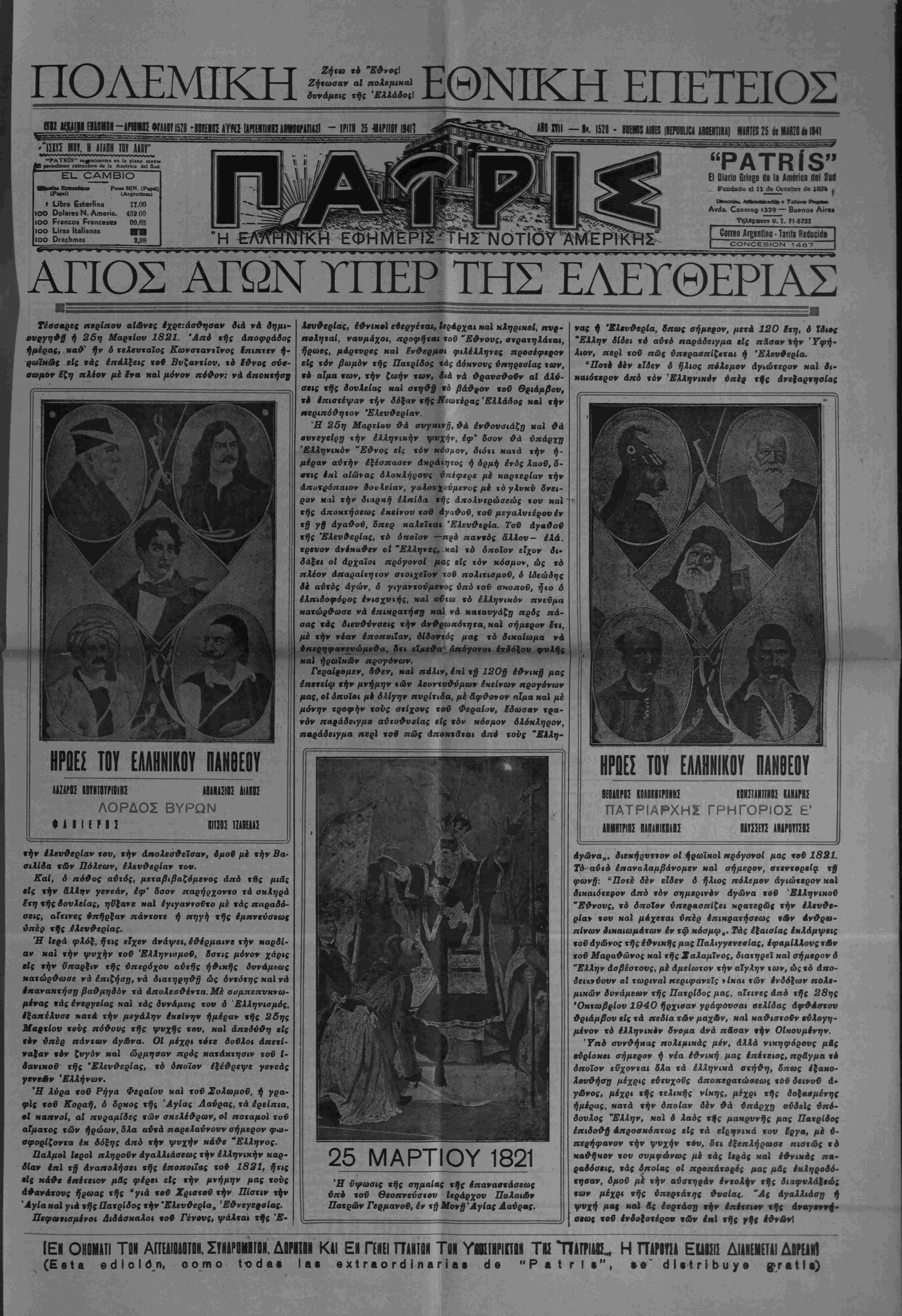 έξαχέλυαε ηατά την μεγάλην εκείνην ημέραν τής 25ης
