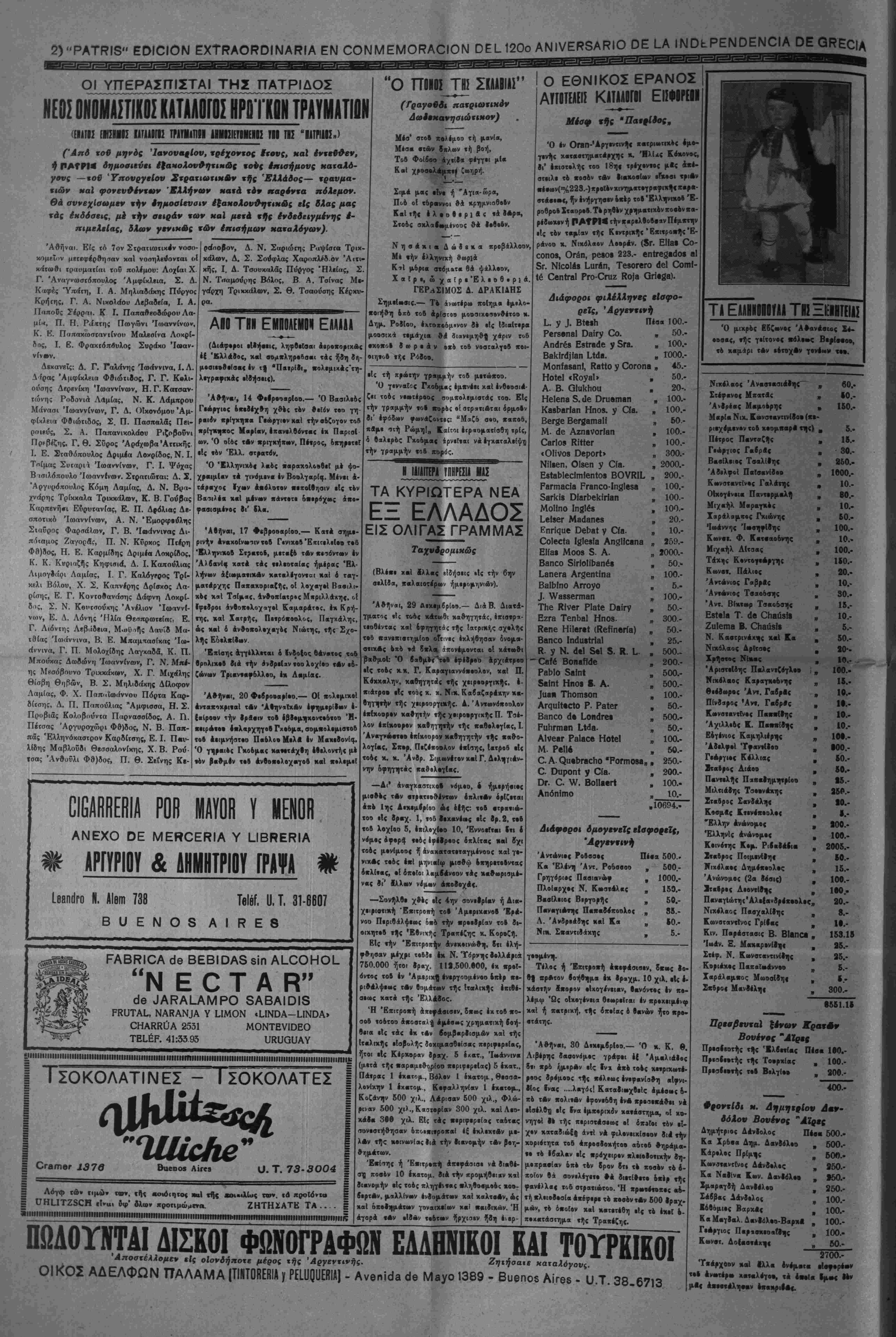Φροντίδι Ίβάννοο Βαρζάχοο, Βοοένος 'Αΐρε< 8 080.- Φροντίδι Σολλόγβ· ΛεοχαΚβεν «ΌΙοααεοε,, Βεοένος 'Αϊρες 6.913.- Παροιχία Βαλχαρατσοο-Χιλής 6.804.- ΦροντΙβι Πάνοο Μοροζίνη, Βοοένβς "Αϊρες 5.811.· ΠαροιχΙα Ροσαρίοο-'Αργεντινής 4.474.- Φροντίβι 5γ. Ρ. Κ. ΙΛβιρβηιιγ, "Αγγλοο φιλέλληνβς, Β."Αΐρες 4.250.- Κινηματογραφιχή παράστασις έν ΡοσαρΙφ-'Αργεντ. 8.348.55 Φροντίδι ΔημητρΙβο Δανδόλοο, Βοοένος 'Αϊρες 2.700.- Πλήρωμα Ατμοπλοΐοο "'Ατλαντιχό*,, 3.675.- ΠαροιχΚα Σαντΐάγοο-Χιλής 2.608 80 Πλήρεεμα Ατμο«λο(οο ■Κορινβ-ιαχός, Βς. "Αΐρες 2.585.- Πλήρεεμ,α 'ΑτμοπλοΙβο "Ν. Μ(χαλοςη 2.225.- Φροντίβι Μιχαήλ ΌρφανοΙ, Β. "Αϊρες 8.163.· Φροντίδι Άρχιμανβρίτοο χ. ΦιβτΙβο ΙΙάντοο. 2.113.- ΦροντΙβι Νιχολάοο Αοοράν, Βοοένοι "Αιρεε 2.111.- Φροντίδι Ύ«επρο{ένοο Νικ. Μβνια, Ο.Κίναάανί&-'Αργεν. 2.072.- 'Εχ τοΙ <αμε(οο τή« Ελληνικήν Κοινότητος Βοοένος *Αΐρε« 2.000.- Φροντίδι Χ»λλβ>ο Ροδίβν "Κλεόβοολος,. Βοοένος "Αΐρες 1.781.-