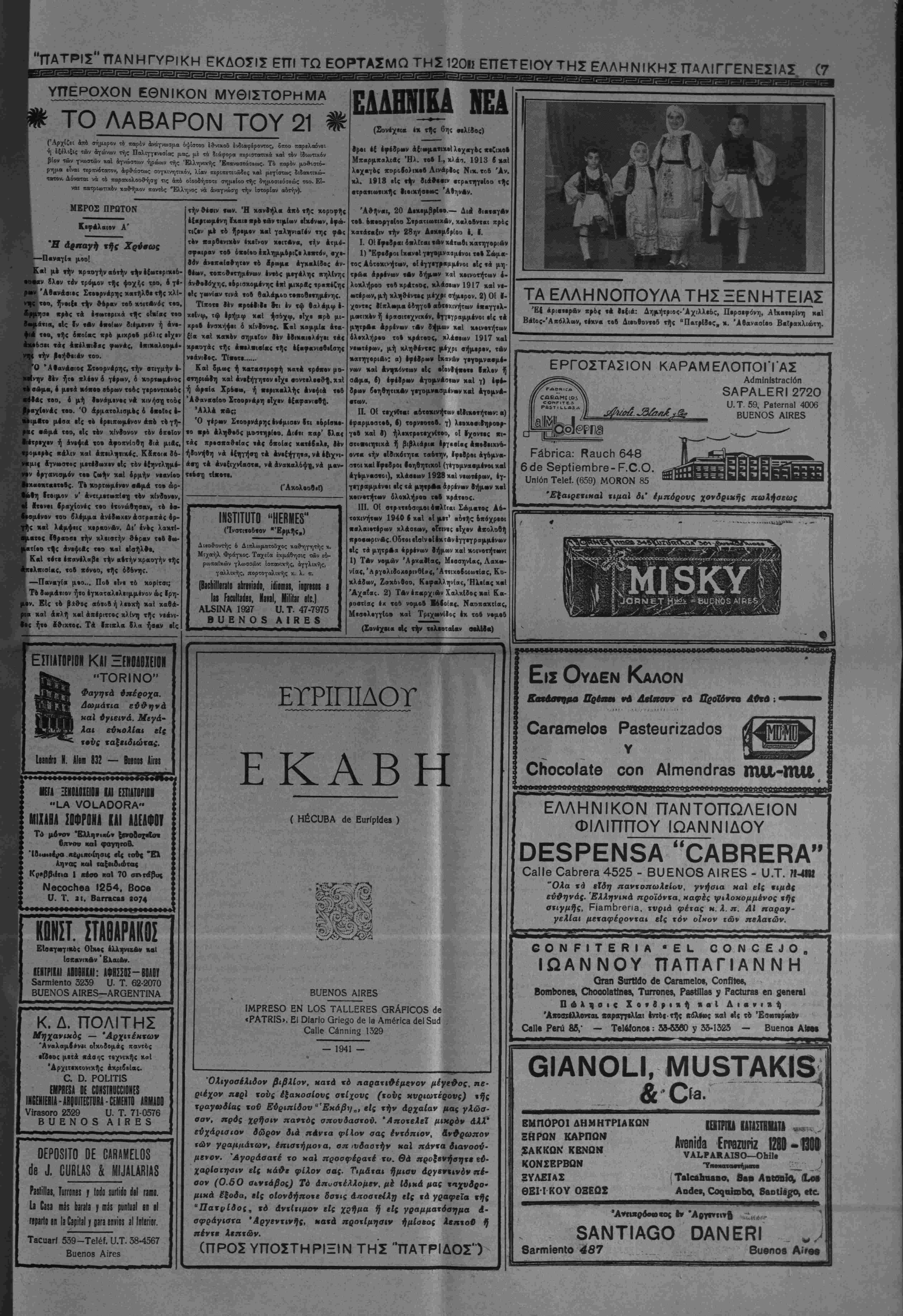 γ·νιχή< χρΐσεεες. Ύ-)ε(α ν Α μΐς ΙΙντς 4 Θε4ς, κι' ϊχ·»μ· χαιρ· γιβ μ·γετλ6«ρ·ς έχβέσκς. Άλλωβτ· 8λ·ι Ιέρββν τίς θ·«[ε« μβς, ·ο6 βγάζοομε δχτώ πανηγοειχες χάθε χρόνο. Τ- γεΐα, λοικον, νΐχοομ·. —Κ «Ι ν« «ντέχτο ή {ιφολέγχη, Κοομ«άρ·, ί«ε»ς λένε ·1 Ε6ζώνοι μι«ς στό —Μ«ράβο! ΕΙοις, Ι6ντ·χν·, «Ιγμ.*λ<·τβ τ·ν «ρ**ο {άίερφο τ·Ι Μοοσο·- λίνι, Σονταγματάρχη τ6 Ικάγγελμα; —Ναίοχε, Κοθ|ΐ«άρ·. Καί χβ·ώ< βλέκαι, ή «ροφητιία σο·, βτι βί «ηάσοομε τ·ν Μοοσ- ο·λ(νι, κέτοχε ή μιβτ}. -—Καλ* λές, Σ6ντε«νε. "Ας ·&χη··βια, λοιχίν, ν Α μή μ·Ινη μισή ή «ρο·ητ·(α αλτή σΐον ΜοοσοολΕνι. Πρέκει νΑ «ήν (Δημοσιευθέντα ηοοά μέχοι σήμερον υπό τής · Πατρίδος») Διάφοροι Κατάλογοι Πσσβ 'Αργεντινής Δοσχμαί Κ. Κονιαλίδης (12.000), "Ελληνος * Φιλέλληνες Οδροογοοάη* 25.000.- Ν. Κονιαλίδη«, (Α«ομιχά 10.000) χαί φροντίδι «οτοδ,Β.'Αϊρβς 15.401.50 Φροντίδι Βασιλείοο Γ. Λάππσ, Βοοένος "ΑΤρ.ς . 18.220.· Διάφοραι ·ιλέλ>ην·ς εΐσφορείς, 'Αργεντινή 10.694.·
