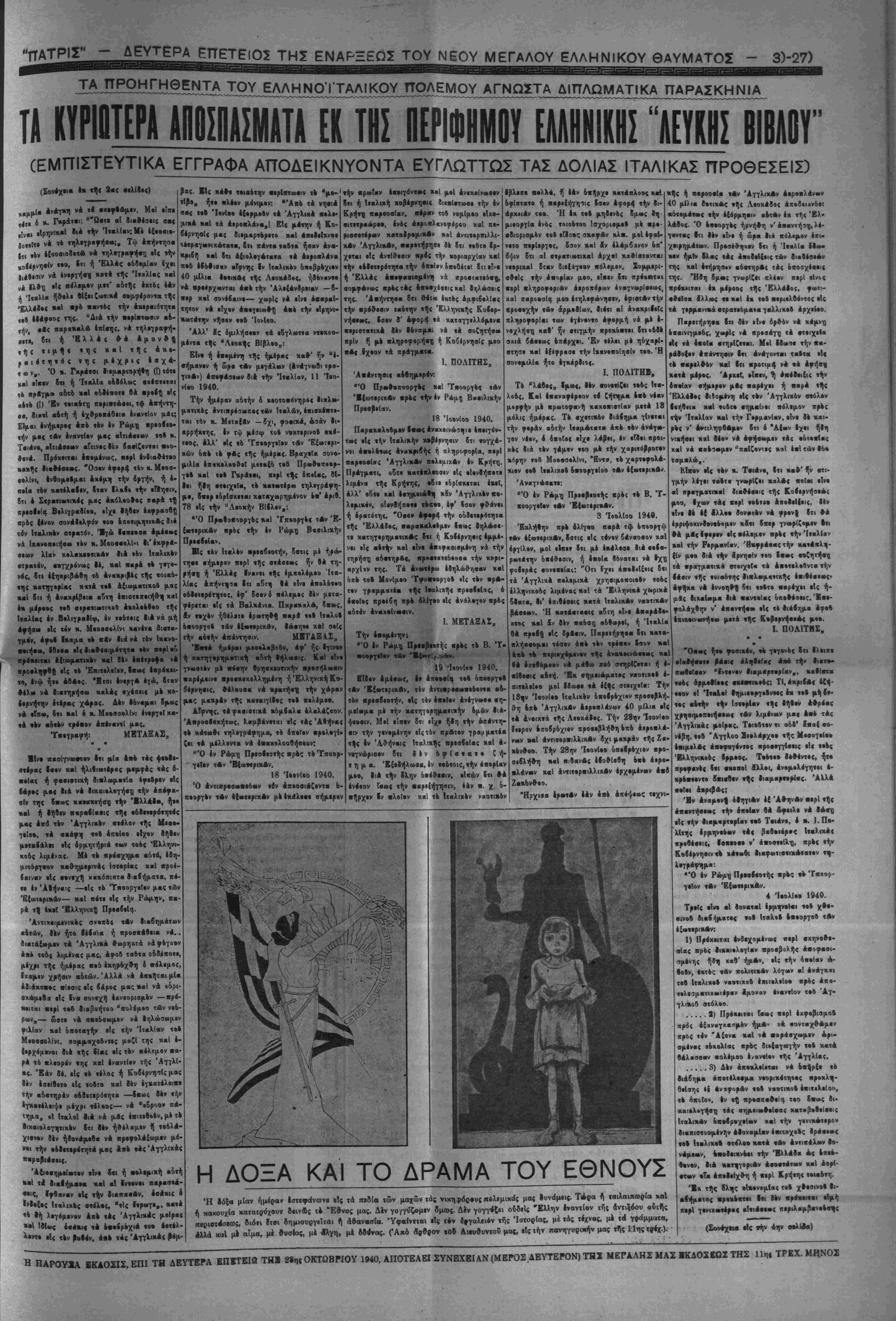 Την 28ην Όκτωβρϊου 1940 τό, ""ελληνικόν "Κθνος ίφώτισε διά μίαν ά¬