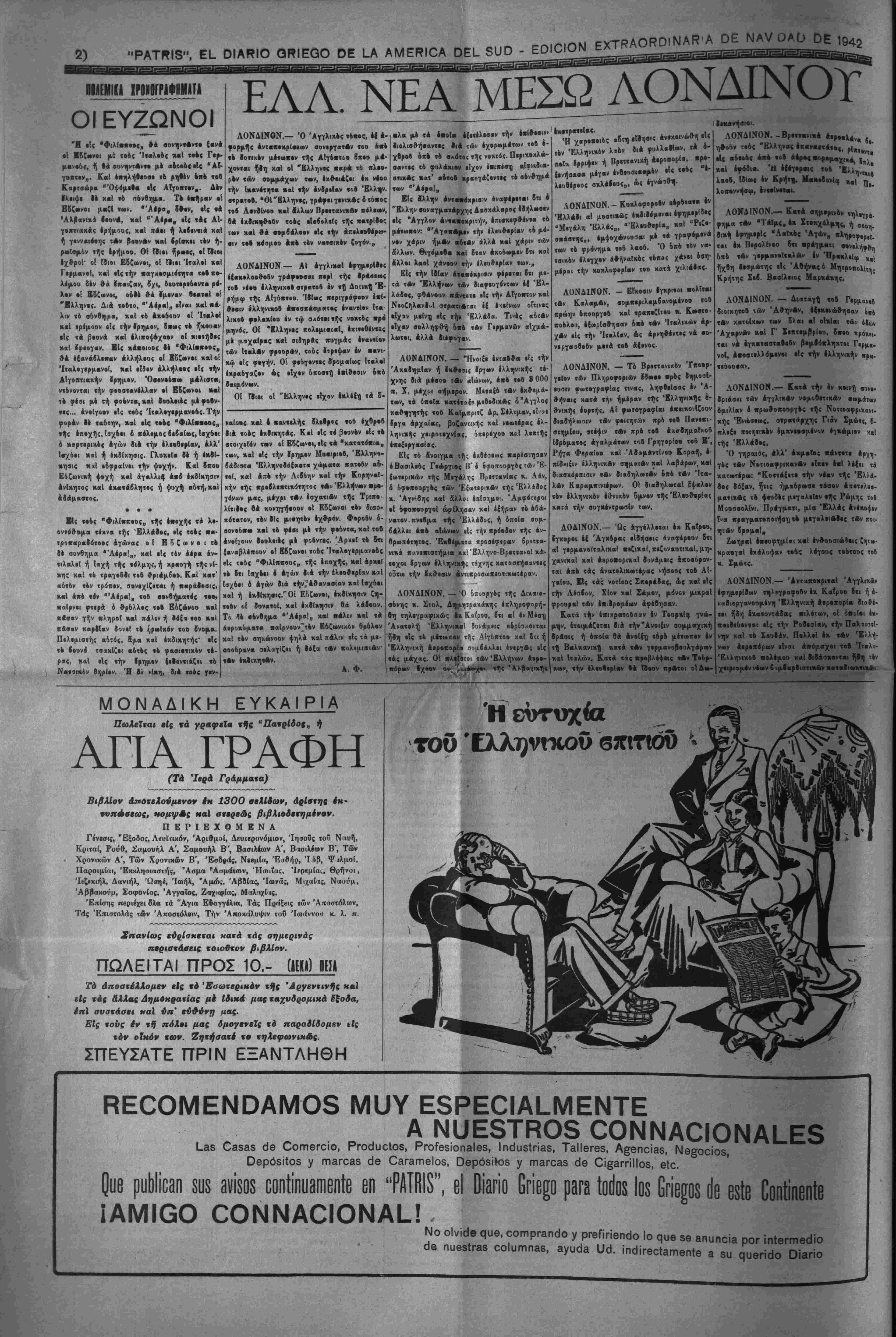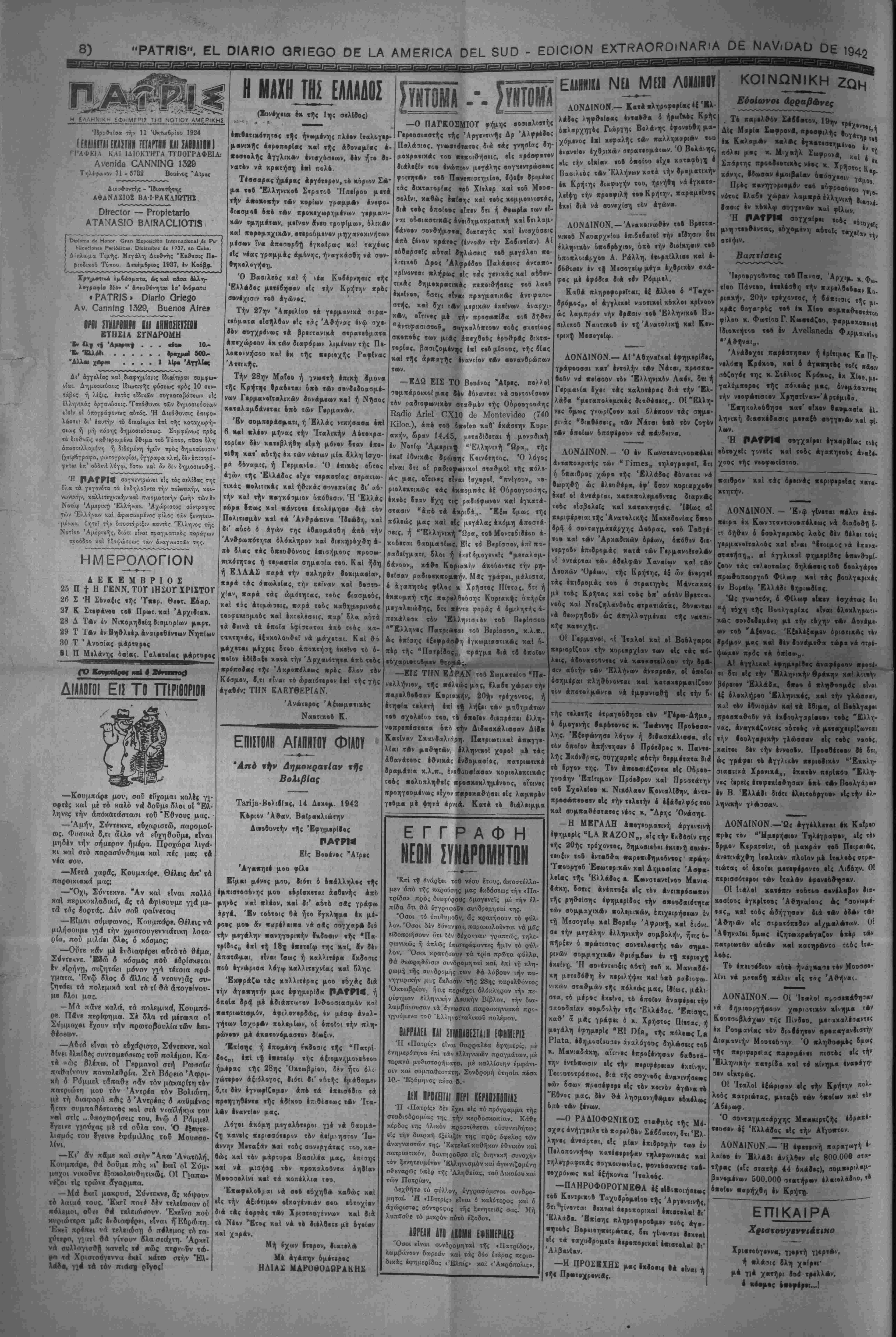 έκ ΚαλβμΑν χαλΑ< ·γκατ«ο«ημ4νβΙι 1ν χόλει μας χ. Μιχαήλ Σιοφρον*, Χβ1 | ^ Σπάρτης π·οοδε·τιχ·ς νέος κ. ΧρήΟΤΟςΚ|(Χ χάνηί, Ιδ»σαν Αμοιβαίαν δχ03χ»β,ν . 9' Πρές χανηγορισμον «οδ ε6φΡββ6νοο γ1°β νότος Ιλαβε χώραν λαμχρά έλληνιχή 8(,αχ4" Ιασκ έν χβχλφ σογγενΑν χαί φ(λων Έ ΡΑΤΠ< °»η'1ρ" «οος ,6:οχι1ς μνηιτεοθίντας, εόχομενη α6«οΙς τετχ,·βν ^ βτιψιν. Βαηνίσιις Ίεροοργοδντβς τβδΠανοο, Άρχιμ. χ φω% <(οο Πάντβο, έ««λέοΙΐ) «ήν ΧΛρελΟοΙπβν |·0_ ριαχήν, 20ήν «ρέχον«θί, ή ίάχιιοις «ης μΝ χ»ας βογαΓρδς «βδ 4χ Χίβτ» σομχαθεβτάτο» •ίλοο χ. ΦωτΙοο Γ. Κο»σ«άζοο, φαρμ«χβ»Οιβί Ιδιοχτήτοο «οδ έν ΑνβΙΐΗηβά» Φ^μα^,, ·'Α»ήναιΒ. Άνάδοχβι χαρέβτησαν ή έρίτιμος Κα Πή- νελοχΐ) Κρέχοο, χαΐ δ Αγα«ητο« «οΓς χαβ(ν αοζογόΐ «ής κ. Στέλιος Κρόκος, έχ Χίοβ,μ,. γαλέμχορος «ής πάκ*άζ μας, δνομίβϊντις «ήν νεοφΑτιστον ΧρηβτΙναν-ΆρτέμιΙα. Έχηχολο60ησ« κατ' οίκον βαομααία 4λ· ληνιχή διασκέδασις με«α{ο σογγενΑν χαί γ[. λ«ν. Ή ΡΑΤΡΜ σβγχαίβει έγχαρ|(«ς Γ0,ς εοτοχεΐς γονεΐς ΧβΙ το&ς Αγαχη«οος άναδό- χοος «ής νοοφ·τ{στοο. «αιβρον χκΙ τάς δρεινάς χεριφερεΐας κ*τ·- χτητήν. ΛΟΝΔΙΝΟΝ. — 'Βνφ γΐν.τ.ι πάλιν Απι. χείρα έχ Κωνσταντινουπόλεως νά διαβοθή 3- τΐ δήθεν ό οΌολγβριχος λαος (έν θέλει το»ς γερμανοΐταλοος χαί είναι "Ινοιμος νά έιτανα· στ*«ήσ^Β, αί αγγλικαί φημερΐδες οχονθβμί- ζοον «άς τελεοταΐας δηλεοβειςτοδ βοολγάρ»· χρωθοποοργο5 Φίλεοφ καί «Ας βοολγαριχέ; έν Βορείψ Ελλάδι ·ηριε»δία<. Ός γνεειτόν, δ ΦΕλωφ είχεν εσχάτως (τι "ή «δχη «ής Βοολγαρ(χ< είναι ολοχληρωιι- χώς βονδεδεμένη μέ την τ»χην «Αν Δονάμε- β»ν τοδ Άίβνβς. ΈςΌλέέαμβν ύριβτιχΑς τεν Ιρβμον μας χαί Ιέν δυνάμεθα τώρα νΑ ατρί- ψβομβν χρδς «Α όχ(σ*»η. ΑΙ Αγγλικαί εφημερίδος Αναφέροην ■ροβ«· «( δτι είς «ήν Ελληνικήν Θράκην %αΙ λόιτήν βόρειον Έλλάδ*, βχοι έ χληθο^μδς εΙν>ι