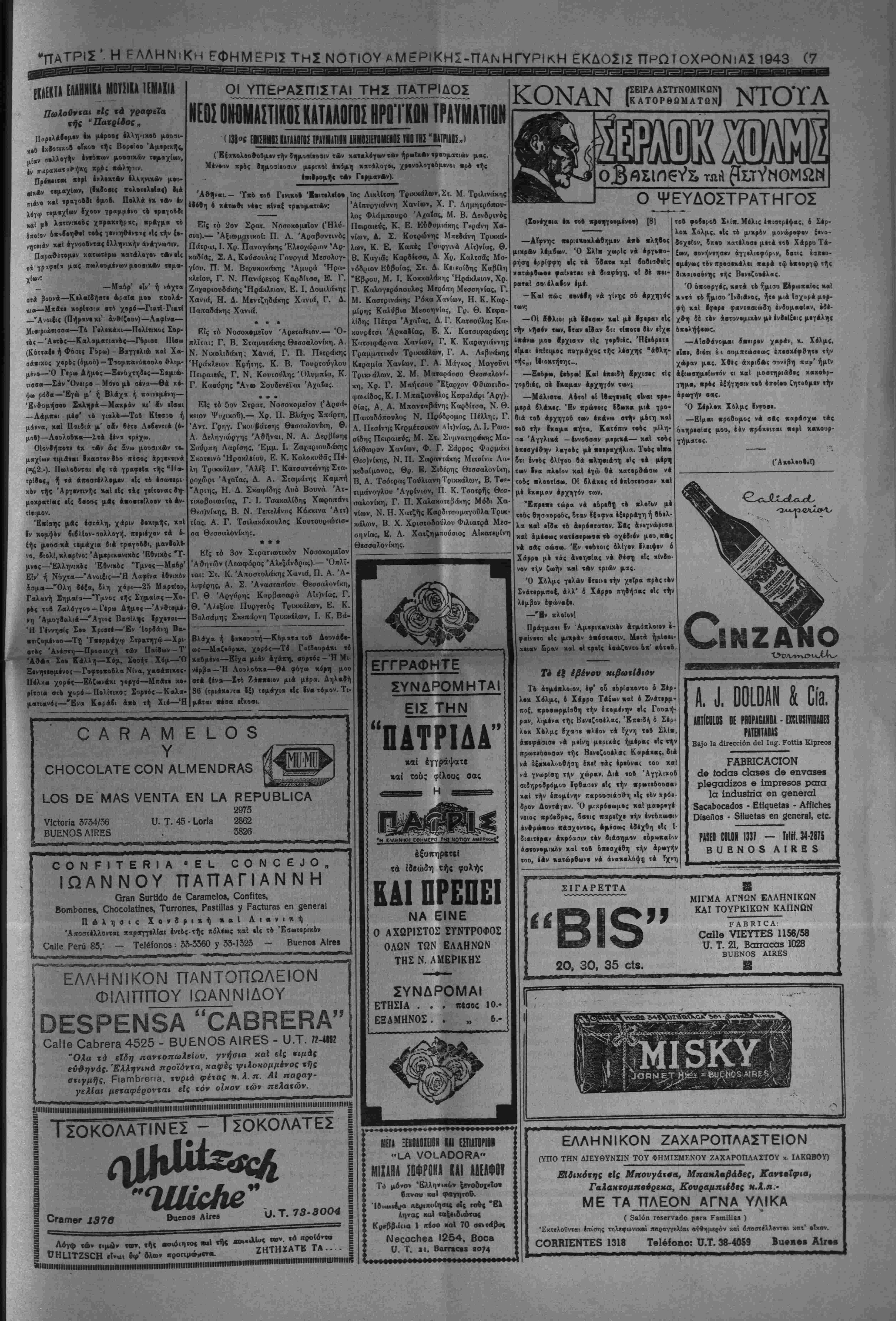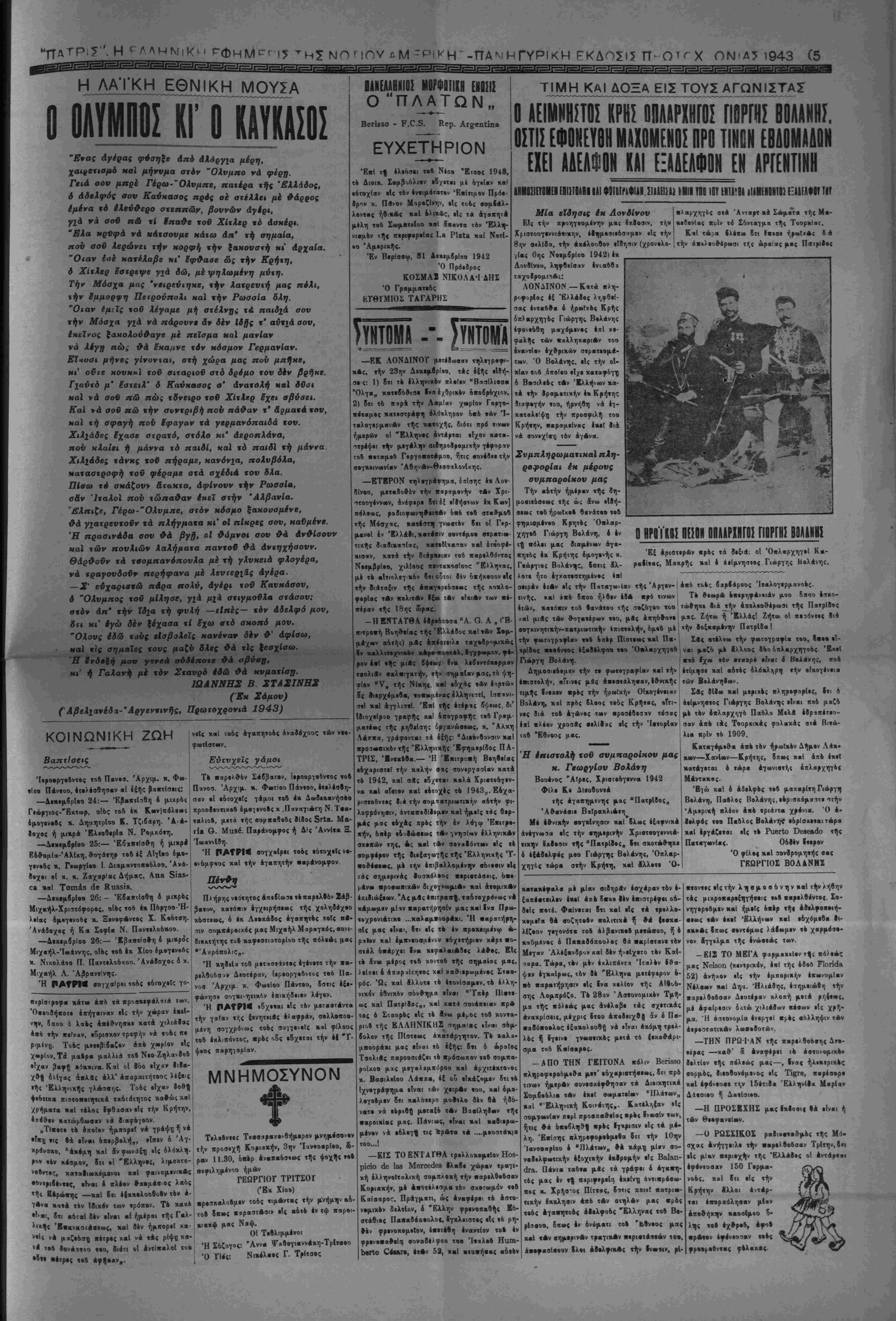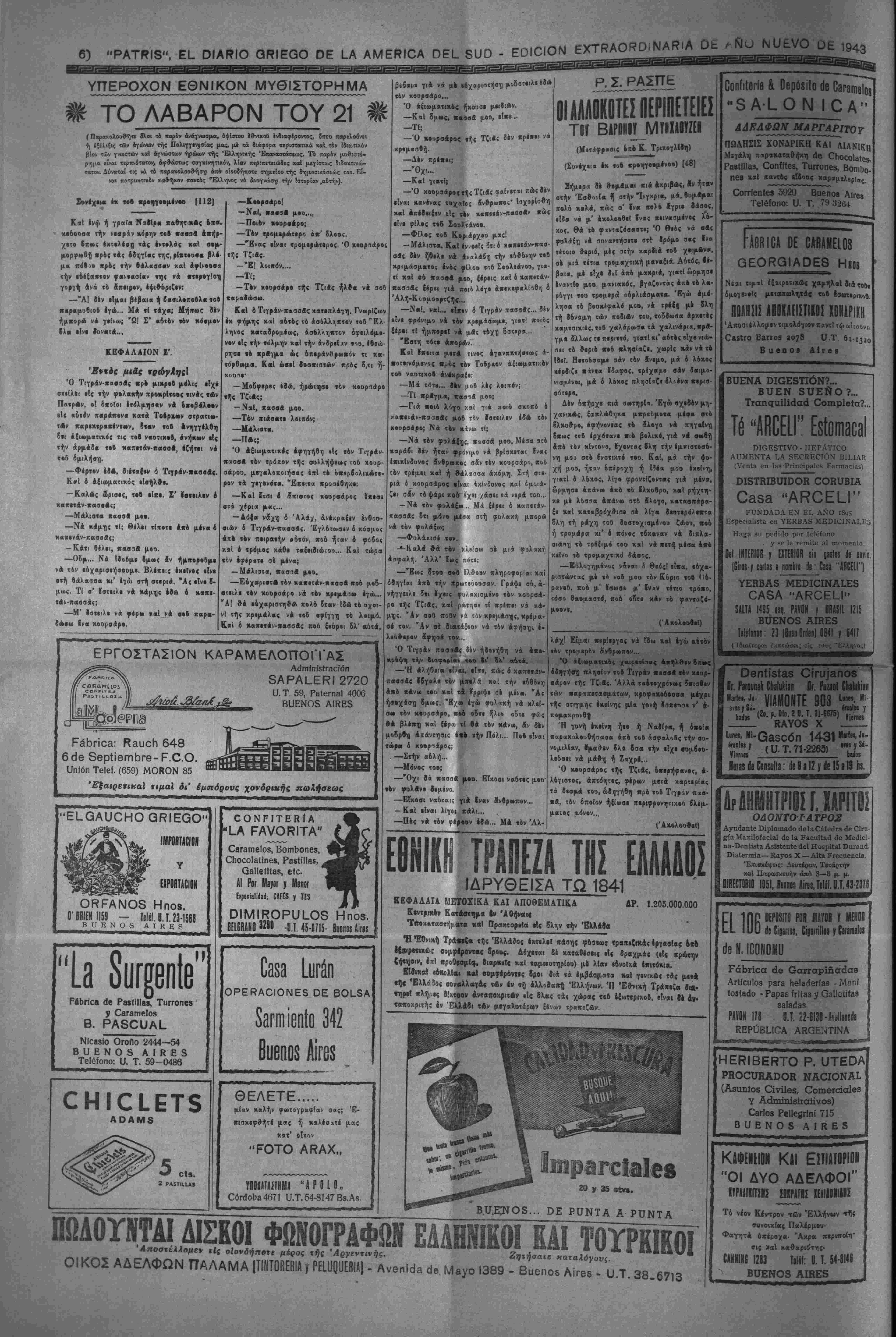 την χ««ά·««·ιν τή< ατρα«ηγιχί)( Α¬ μύνης κ«Ι νά Αγωνι^. Ιια νά «ρ·ΐ$ΐ τό σημ«Γ·ν ή «ά οημεία, έιιο τα δ- ηοΓ« θά θ·χθ·γ^ ιά ««ογαβιντιχά χτ,ο «Αν Σαμμάχων, ·Γαν·< ΦβΙ 4- ναλάββυν πλέον τη ν ηρ*οΓ·|Ιουλίαν των ν έπι&έεεειν. *α6ηω%, Λ εβαοβγων θά ϊυμμΑχων χκί έχ)ϊ·ρ·< «δ νΑ|ον·4, Αλ¬ λά χαί ο Αηοχλ·ι·μο(, 4 4μο^ είς χον πόλεμον τβΙ 1918 χαιεία)· ιήν Γερ¬ μανίαν, 4>ε1 Λρχί·*Ο νά Ιχ-ς χαί «*·τ·< μ·γ«Χ»τ4ρειν «Μ ·Φτέζ μεταβολές, 6- έ| 6λ·κλήρ·υ ·ίζ «4Δ·6- τ·ρ·ν ΐβθτο Μέτωπον, ίέν «Γνκι Ιο- π«ρά νά βι«««ρΑ|«υν 4τ»κιν9ό· νως «· ηθικόν τ·0 Χ«·β ζ·ύ "Α|·νοο Ε Γ Γ Ρ Α Φ Η ΝΕΟΝ ΣΥΝΑΡΟΜΗΤΟΝ —*- — "Επί τ| ενάρξει τού νέου έτους, άποοτέλλο- μεν άπόττ)ς καρελΐούσηςμας εκδόσεως την «Πα- τρίδα» ίΐρός διαφόρους ίμογενίϊς μέ την έλ- πίΛει δτι θά ίγγραφ·0ν συνδρεμηταί της. Όσοι το έπιθυμοθν, άς κρατήσουν τό ·ύλ- λον. Όσοι δέν δύνανται, παρακαλοθνται νά μ4ς εΐδθίτοι.ήσουν ότι δέν δέχονται· γραπτώς, τηλ*- φωνικώς ή απλώς Επιστρέφοντες ημίν τό φύλ¬ λον. "Οσοι κςατήσουν τα τρ(α πρ©τα φύλλα, θά θ·εοβρηθ·ο)σιν συνδρομηταί καί, Ιπί τί πλη- ρωμζ τής συβρομής των Ι-ά λιΐβουν την πα¬ νηγυρικήν μ·.ς Ιχοοσιν τής 88ης «αρελθόντος ΌκτωΡρίου, ήτις ιτβριέχβι ολόκληρον την πε¬ ρίφημον ελληνικήν Λευκήν Βίβλον, την δια- λαμβάνουσαν τα ίγνωστα παοαοκηνιακά προ- ηγοΰμενα τού ■Ελληνοϊταλικοΰ πολέμου. ΒΑΡΡΑΑΕΑ ΚΑΙ _ΥΜΠΑΘ£-ΙΑ^Η ΕΦΗΜ£ΡΙ- Ή «Πατρίς» είναι θαρραλία εφημερίς, μέ «νημβρίτητα επί τδ)ν ίλληνικΛν πραγμ«των, μέ τιρκνά μυθ-ιστο^ήμβτβ, μέ καλλίστην εμφάνι¬ σιν και συμπαθεστίτη. ϊυνδρομή έτησία πέσα 10.- Έξάμηος πέσο Β.- ΔΙΝ ΗΡΗΕΙΤΑΙ ΪΕΠ ΙΕΡ1Ι2Ι0ΠΙΑ2 Ή «Πατρίς» δέν ίχβι είς τό πρόγραμμα τής σταβιοδρομίβις της την κερβοσκοπίαν. Κσθε κέρδος της δλικόν προ3τίθ«ται βύσυνειδήτως είς την βιαρκή έζέλιξίν της ποός ϊφελος των αναγνωστών της. 'ϊκτελίϊ καθήκον εθνικόν καί πατριωτικόν, διατηρούσα βΐς Λιηνεκΐ} συνοχήν τόν (βνητευμένον "Ελληνισμόν κα'ι άγωνιζομένη σθεναρώς υπέρ ττ]ς Αληθείας, τού Δικαίου καί των Πατρίων. Δεχθήτ· τό φύλλον, έγγραφόμενοι συνδρο¬ μηταί. Ή «Πατρίς» είναι 4 καλύτίρος καί ό άχώριστβς ούντροφος ττ)ς ξενητειάς σας. Μή λυπίσθ-· τό μικρόν αΰτό δξοδον. 40ΡΕΑΚ Ιϊθ ΑΙΟΗΗ ΙΐΗΜίΡιίΠ "Ο·οι είναι ουνδρ,ομητα'ι τ!|ς «Πατρίδος», λαμβάνβυν βιορεάν καϊ τάς 8<5ο ετέρας «ριο- δΐΗΛ< ίφημερίδας «Έληίς» καί <Ά>ιρ·πολις>,