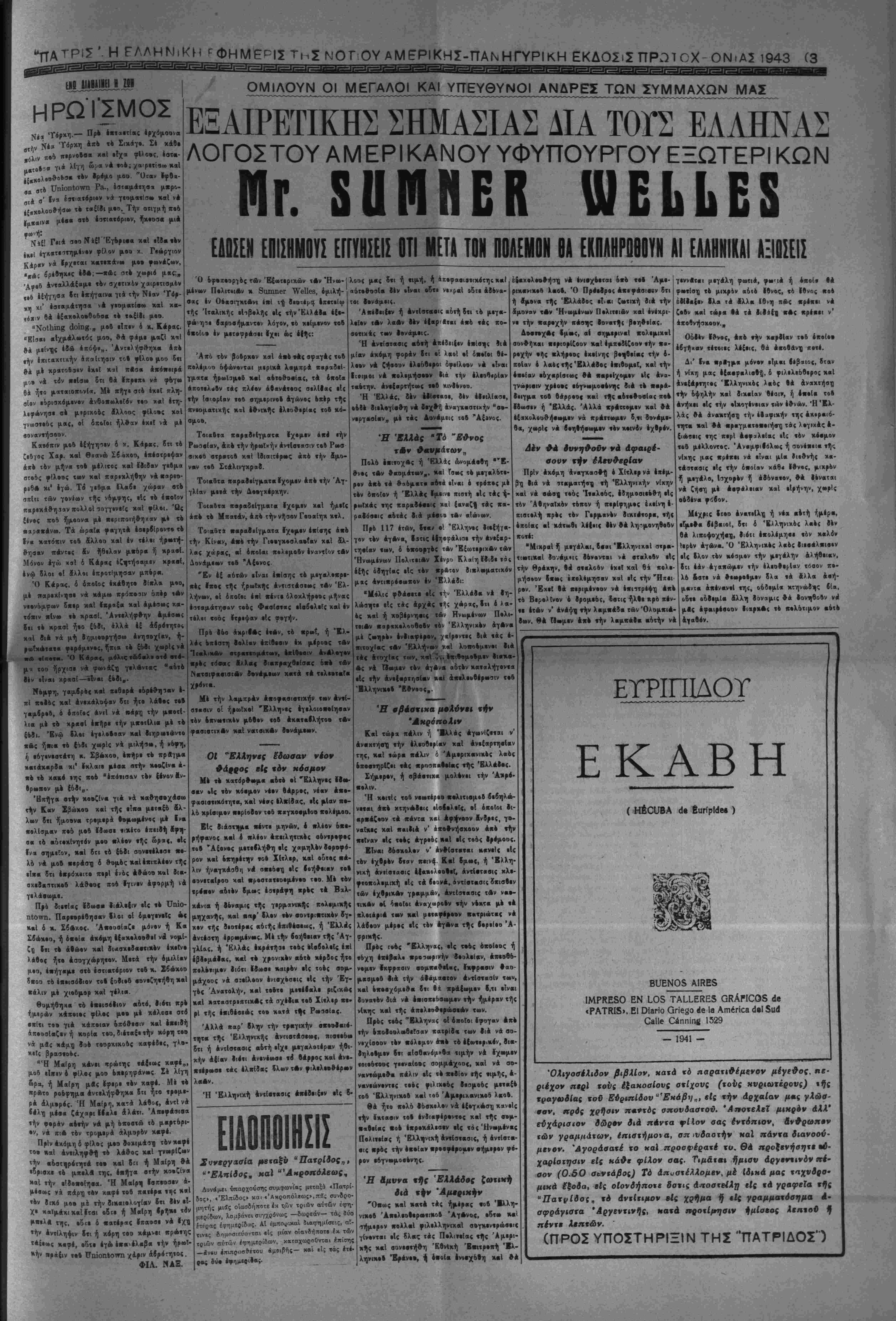πτοτάτβυ< παντοειδείς χ·ιρισμβό; {. πρ·ττ· δέ, δλα νά προβλκγΐ-οθν Χβ([ Ιλ« νά γίνουν χαλά, δι4τι βία4ήΛβ1| βπουΐή ή λ«β·βς, %·ά ϊΓχι «τιχά άποτβΚέαματα, χαί θά ριπτβ βίς έρβίπια ϊλα< τάς τάς 4ποί«ς χ«ί οί Σόμμαχοι χαί ·( «τ«νά- ζοντβς 6ι»4 τβ βάρος χ·τ)ς δοι»λ·(«( λ«βί |. οτήριζαν επί τοΰ δβυτέρβ» τούτο» με:ώ- πουτής Μβσογβ(οΐ), «4 οποίον -χβ«4 :ήν γνώμην μβυ- ιΓναι «4 Μέτωπον τής Απελευθερώσεως. '\ χ««Ακτησις «ής 'Αβριχήι χ«ί «ής Μέσης 'Ανα- τολΊ)< ή«· Ιιά τον "Αξβνβ %{ς έχ τ&ν πρωναρχιχΑν αότοβ σχοπΑν, Ιιά νά νά χερΐίοΐβ χον ιιολΐμον. Ή Π««ρί( μ«<, ή μικρά, ά4Λ "Εν- Ελλάς, χαλΑς Ιιβυθυνομένη, ώι.#·ώθ-η μέ·« «ίς «ήν κ««·νιοημέ· νην Άν4νρωπ4τη«α, ««ρέ««{< 050.000 έ|ωηλι·μένου σνρκτοθ, χ«ί Ιιά τής Αηον«·ι·Υΐκής χαί ήρω!»ή< «τάσεως της, έπεβράδννε επί ψφσσϋχΦν την πρσέλασιν »·* "Α%ονος, ωοτβ ήνοιγ- χάσβησειν 4 Χ(τλ·ρ καί Μουσολίνι ν«1 νροπ»*οιή·«υν «ήν σβΐράν Αχτ·λέσεως «Αν σχ··(<·ν των, χαί Ι«·ι έσώΦησεη ή ΑΧγν/ετος ν αί ή Μέση 'Ανα- τολ+ Χήμ·ρον βά Ιχουν «ιΗρά μβτανιή- βτς δι' «Α«ήν «ην τρββσηοΐησιν τ*ν βχι·(·ον τ*ον, Αλλ' ·Γν«( «λέον ΑργΑ. ΕΙ< «ήν ΈλλάΙ» 4Ι4»η προ Ιύο έ- τΑν ή αρώτη φάσιε τ Αν έαιχειρή- σεεεν πρός 'Αφρικήν μφΛ Μέσην 'Αναχφλάν, %ί ΙΑ Ιι·!«γ4μ·ν«< σή- μσρον Α*ιχΐιρή··« *{ς «ήν '-φριχήν, Ιέν ιΓνκι πειρά «4 «υμπλήρσιμοι ΤΗΣ ΜΑΖΗΣ ΤΗΣ ΕΑΑΑΔΟΣ; Αλλά μέ «Α Α|1)« ·ήμ*ρ« ύ»έρ ήμΑν «λε- ον·χ«ήμ·χ««; α) "Οτι τόχε οί "Άγγλοι ή««ν ςιτρκτιωτΐΜως Αχαράσκΐυοι, οχιϋν ί- νβυ 4»)ισμοΰ χαί έφοδίων, οί Ιέ Γερ- μκνοί κΓχον άίιεχφιλβνίχητον «ήν ύπβ- ροχήν είς τον Αέρ«, 4νφ σήμιρει *ί "Αγγλοι «ίναι ««λως ώργ«ν·μένα, τελείως έ£ω«λ.·μένοι χαί Αχ··ν Α- λόγιοιον «4 ττ»·0μα «ρός την Νίχην. β) "Οχι σήμερον ή πανίσχυρος 'Αμεριχή ·Γν«ι σόμμαχ4< μ«ς χ«ί <· χει 4-έσβι ·ί< την Ιιάβ-κσιν %%δ πολέ¬ μου χΐν στραι4ι>, «4ν ««όλον, «ήν Α·-