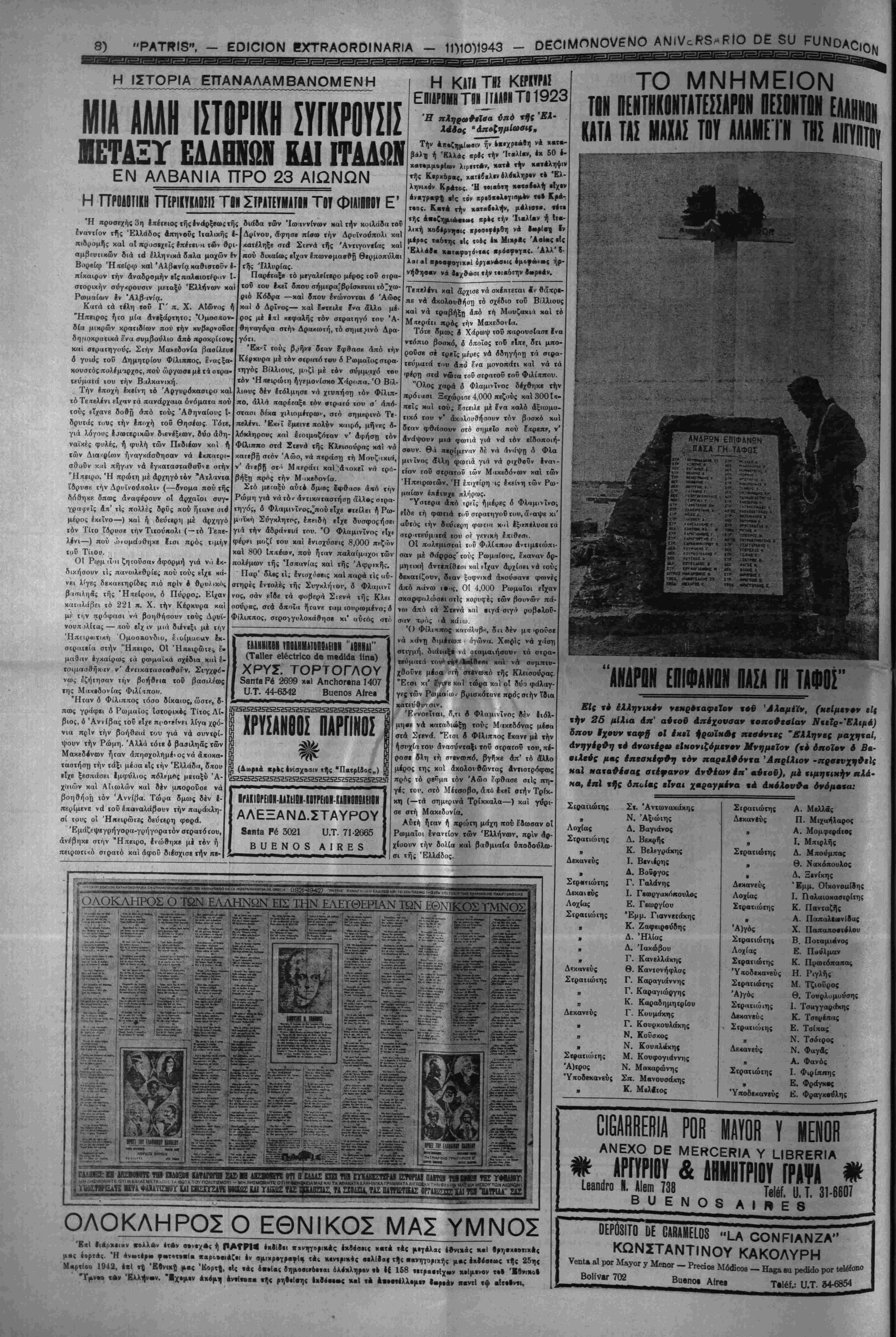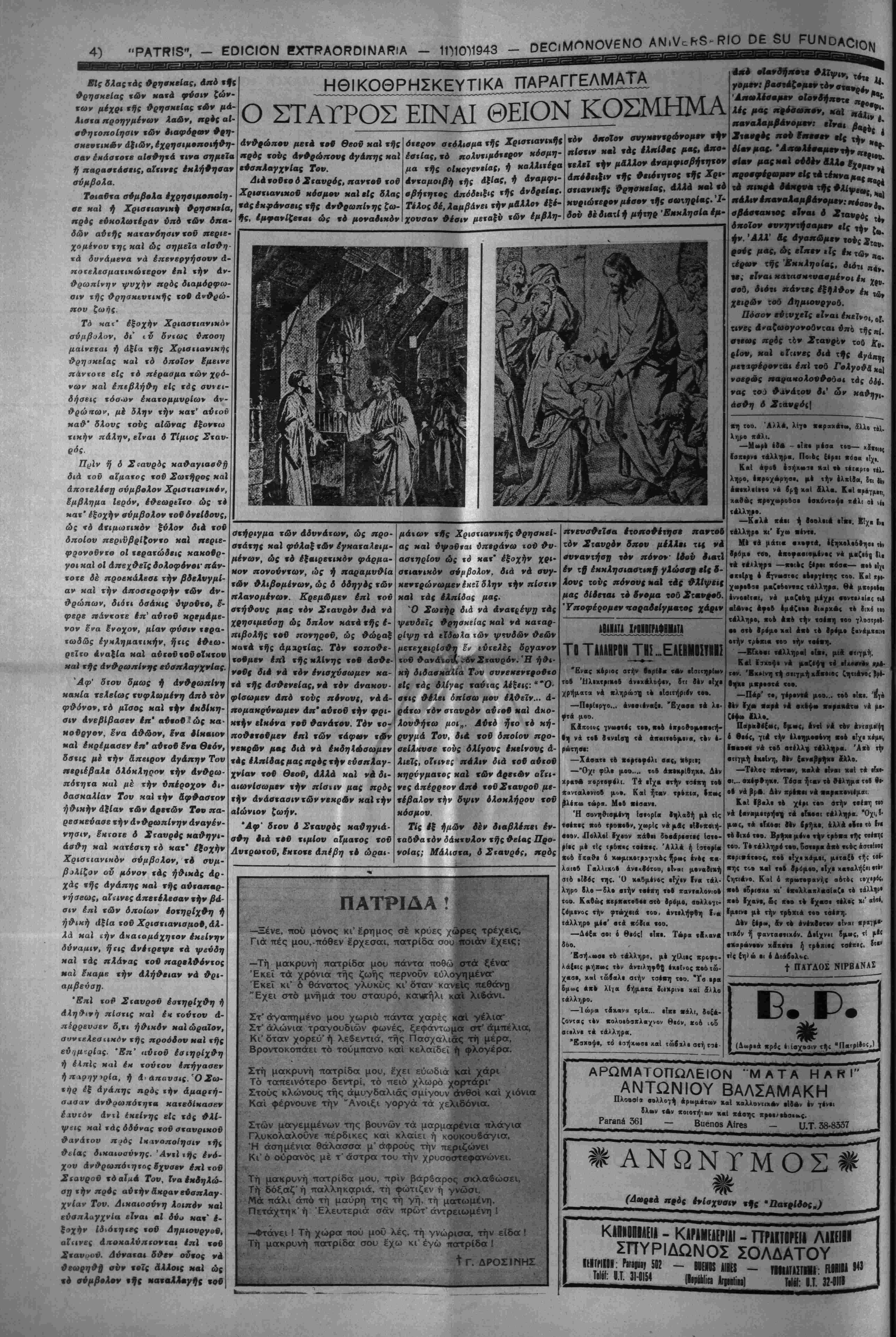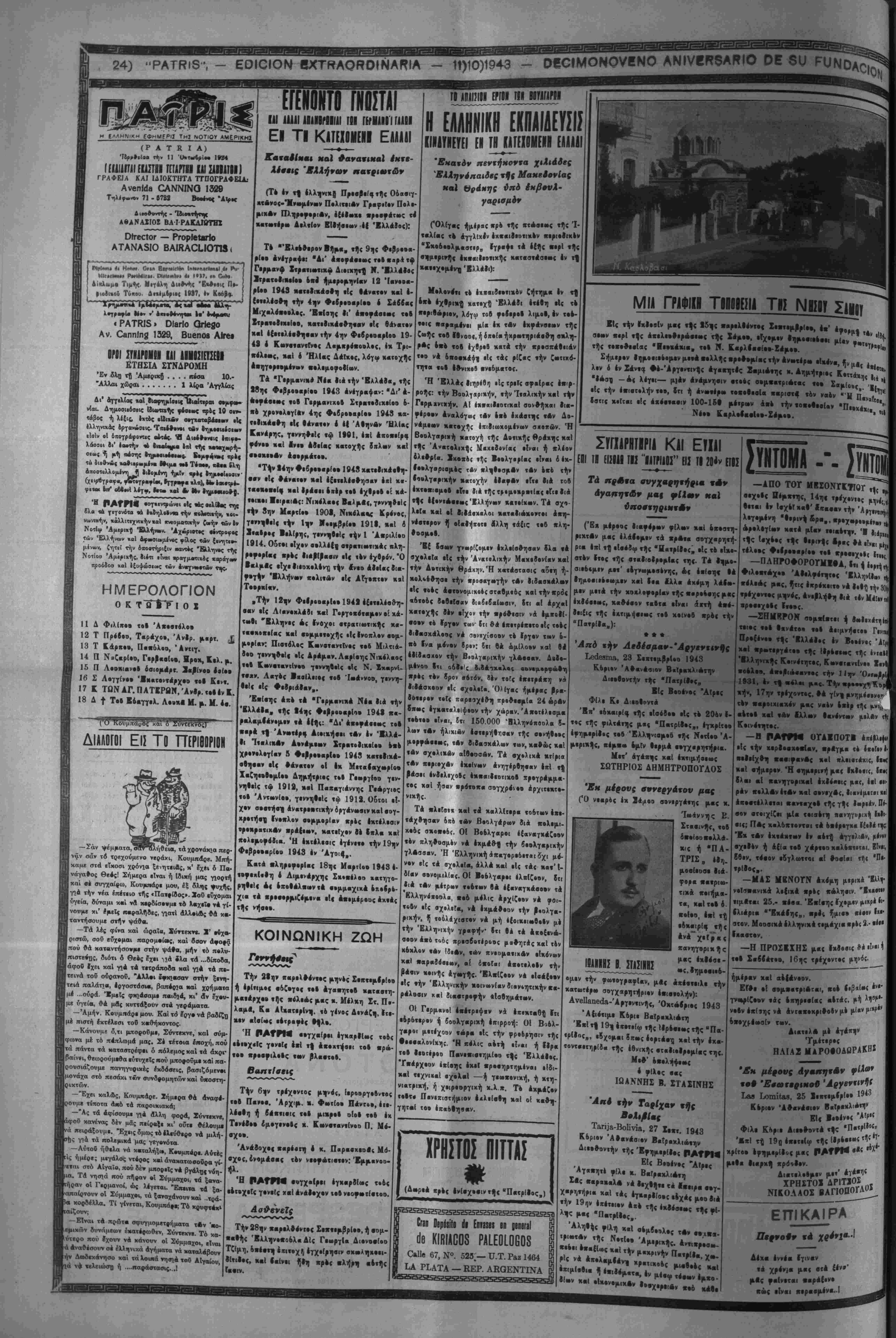 «ο6 Έλλ«|ν(αμ·5 «ή< Ν·τ(·· 'Α- μερικής, κέμ·«» ομΓν ΙιρμΑ ·»γχ«ρη«ι)ρια. Με«' άγά*«|ς χαί έχ«ιμΥ)βε«ς ΣΩΤΗΡΙΟΣ ΔΗΜΗΤΡΟΠΟΓΔΟΣ Έμ μέρονς α»γβ§γάτον μ·ς (Ό νεαρός εχ Ιαμοο σ»νεργά«ης μας χ. Ί»»*ννης Β. Στ·θιν1}«;, «οβ δ··ίβο«·λλά- χις ή "ΠΑ¬ ΤΡΙΣ,, ||η. μοοίευσε Ιιά- φ·ρ« «β«ριοβ- τιχά «οιήμα- ««, καΙ«ο· 6. κ·(οο, έ·1 »ί οοκαιρΕα «ής *~χ·ι>«< *ν« ε4τ·χεΓς γονεΐς χαί άνάΐοχον ιολ ν·ο·ε»τίβί·ο. Ασ&ένεΙς Την 28-ν κ«ρελ*όν«·ς Σε««ιμβρ(··, ή βομ- ■α·ής 'βλλην··ο6λα Αίς Γε«»ργ(· Δι·νο·ίβο , ο«έ·«τ| έκενοχΙ, έγχ·(·ΐ|σιν σχεεληχοιι 81«ιΙ·«, καΐ Ιαίνει ήΐη χρος ·λτ]·«} α4«ής Γασιν. ΧΡΗ-ΤΟΣ ΠΙΤΤΑΣ &» Οίρ.:ίΙι Ι» ίπτ»κ ιπ οβπβγιΙ (Ιθ ΚΙΗΙΑ008 ΡΑίΕΟίΟΒΟδ Ο.116 67, Ν0. 523;— ϋ.Τ. Ρλζ 1464 -Α ΠΑΤΑ — ΒΕΡ. ΑΕΟΕΝΤΙΝΑ ■ΜΜΜΐχ^^ΤΙίΜΙΙΗ ^,^ •μέν «ήν •««ογρα·1αν, μ·ς «χέοτειλ· «ήν χα««τέρ« έ·ισ·ολήν): ή) Ανβ1ΐ8ηβαα-'Αργεν«ινής, Όχτ·4'·(ος 1943 'Α|ιέ«ιμ· Κδριε Β.ΤρετχλιΑτη Ί«1«| 19ΐ| έκετ·(φ «ί|ς »|ρ4σε·ς«ής «Πα- «ρΙΙος», εδχομαι ϊΐτε,ς έβρτάοη χ«1 «ήν έχα- «νταετηεΐβ. «ής έθν.κης σΐ«Ιι·Ι··μ(«ς Με»' »«ολι|ψεε·ς 4 ·1λβς οας ΙΩΑΝΝΗΣ Β, ΣΤΑΣΙΝΗΣ "α!λ»1 *ήν Γαβίχαν «ής •Ι , 27 Ι·*τ. 1943 'ΑΙανάο.εν ρ Δι«ο»ον«ήν· «ής Έ.τ,μερΙΙος Είς Β,βέν.ς "Αΐ-ες 'Αγ««η«| »{λβ β. ΒαΓραχλ«·«η Σ·ς ««Μκ·λ· νΑ ΙεχΙή,ε «ά («.,,« ογ. ρτ^ρ χ«1 τβς 4γκιιρ|(ο»ς.»χ«<|ι,οίιΑ 19,ν έ«έτ.,·ν Α»· «ή«έκί·β..ς «««-{. μας ■Πατ-ΙΙβς,. 'ΑληΙής φ(λι, ».1 ο4μβ·βλος ««ν ο.*... τής Ν·«1·. 'Αμ..,χ,ς. Αν«(,..β<.. χ.«ιηιβ6ς ,,Ας ^ ή έ.ι8·μ«., 4ν Μ-¥ τ§β-ν , .Ικ.ν.μ,χ.ν Ι —ΔΠΟ ΤΟΓ ΜΒΣΟΝΓΙΙΙΙΟΓ Μς σεχ.Ις Βέμ*νης, Ι4η< τρέχοντος Ηη * βεται έν Ισχ4Τχ«·'Ικασαν την 'Αργ,', λεγομένη «Ιερινή £ρα,,«ρ·χ(,ρ,>Κι,Ι(,