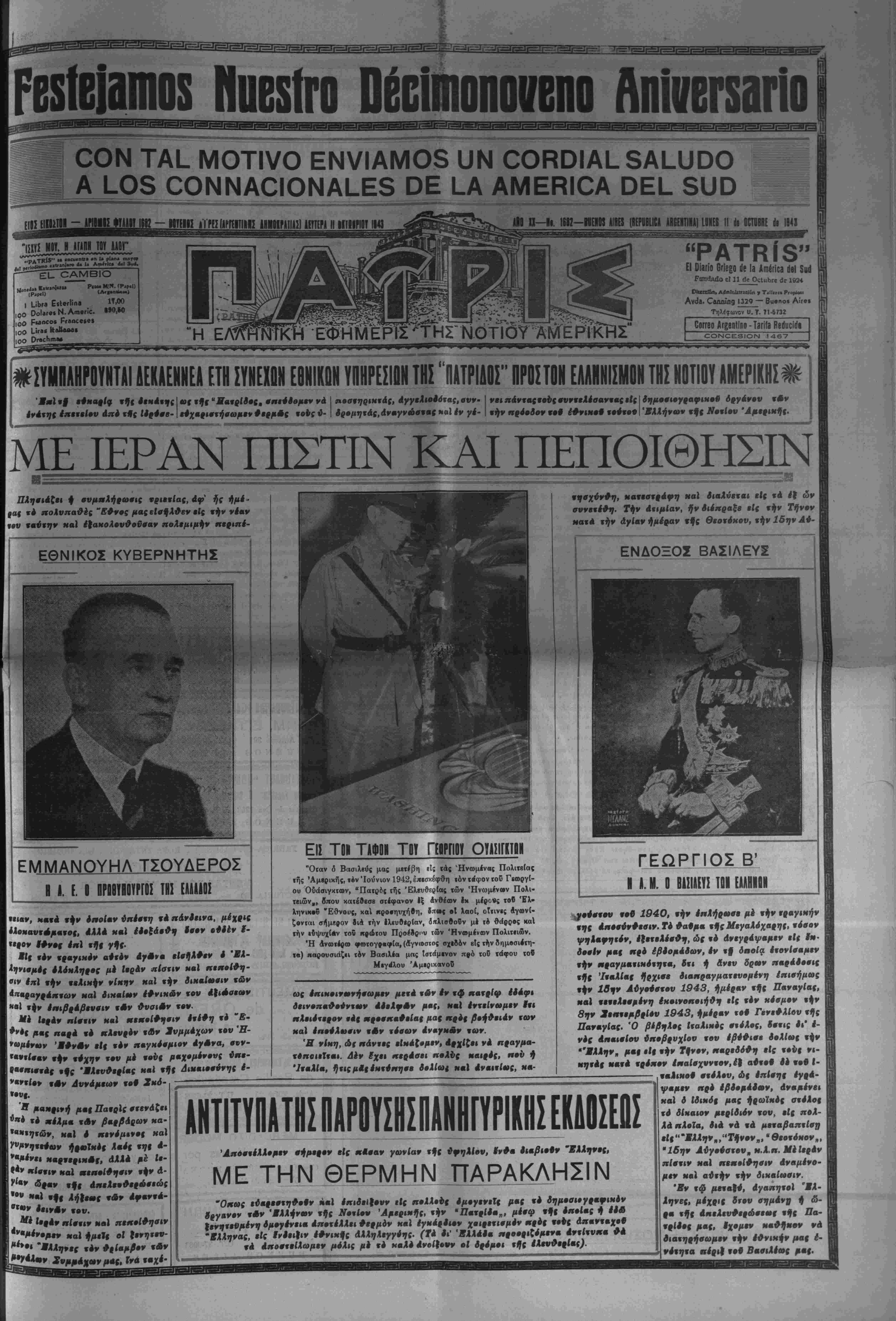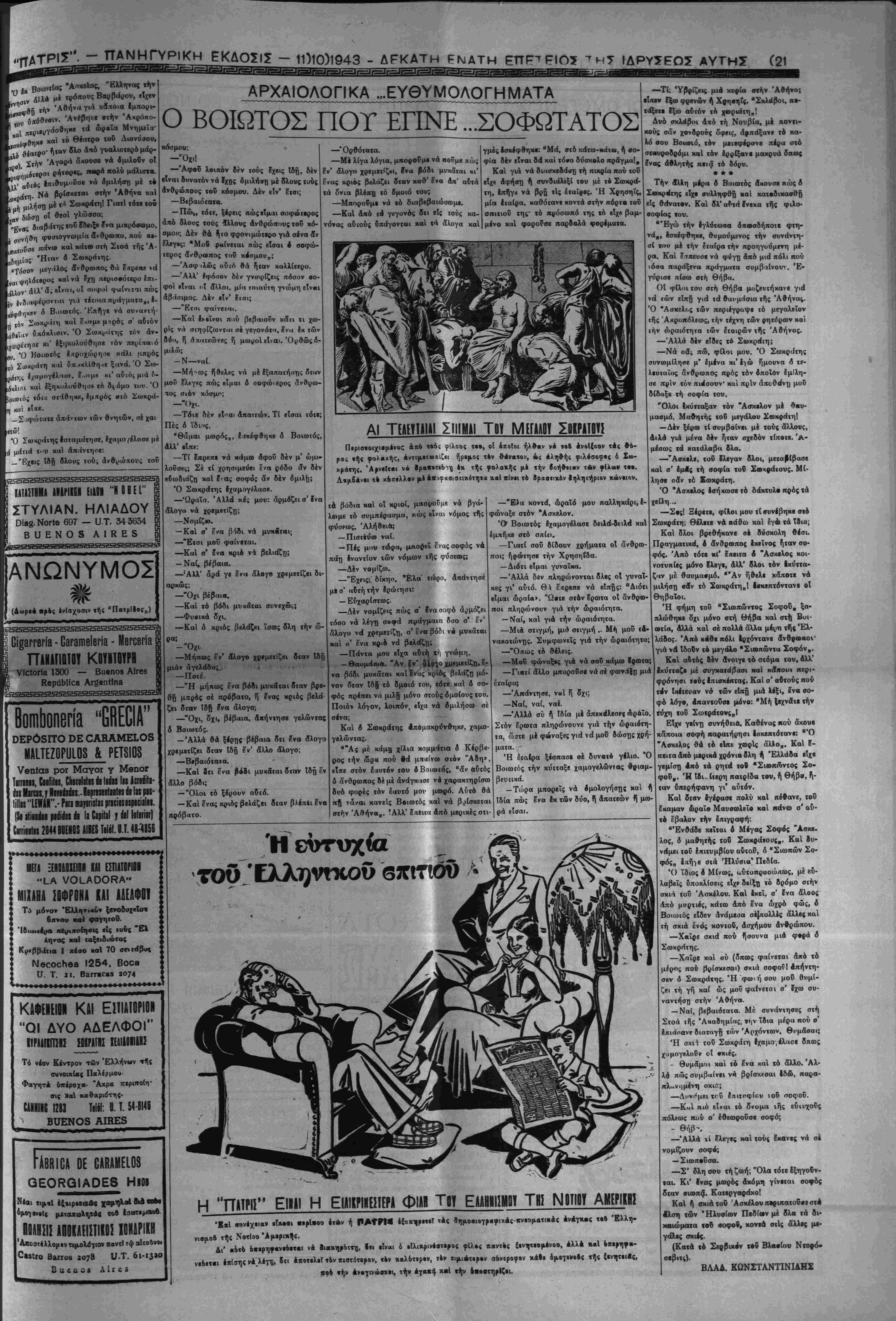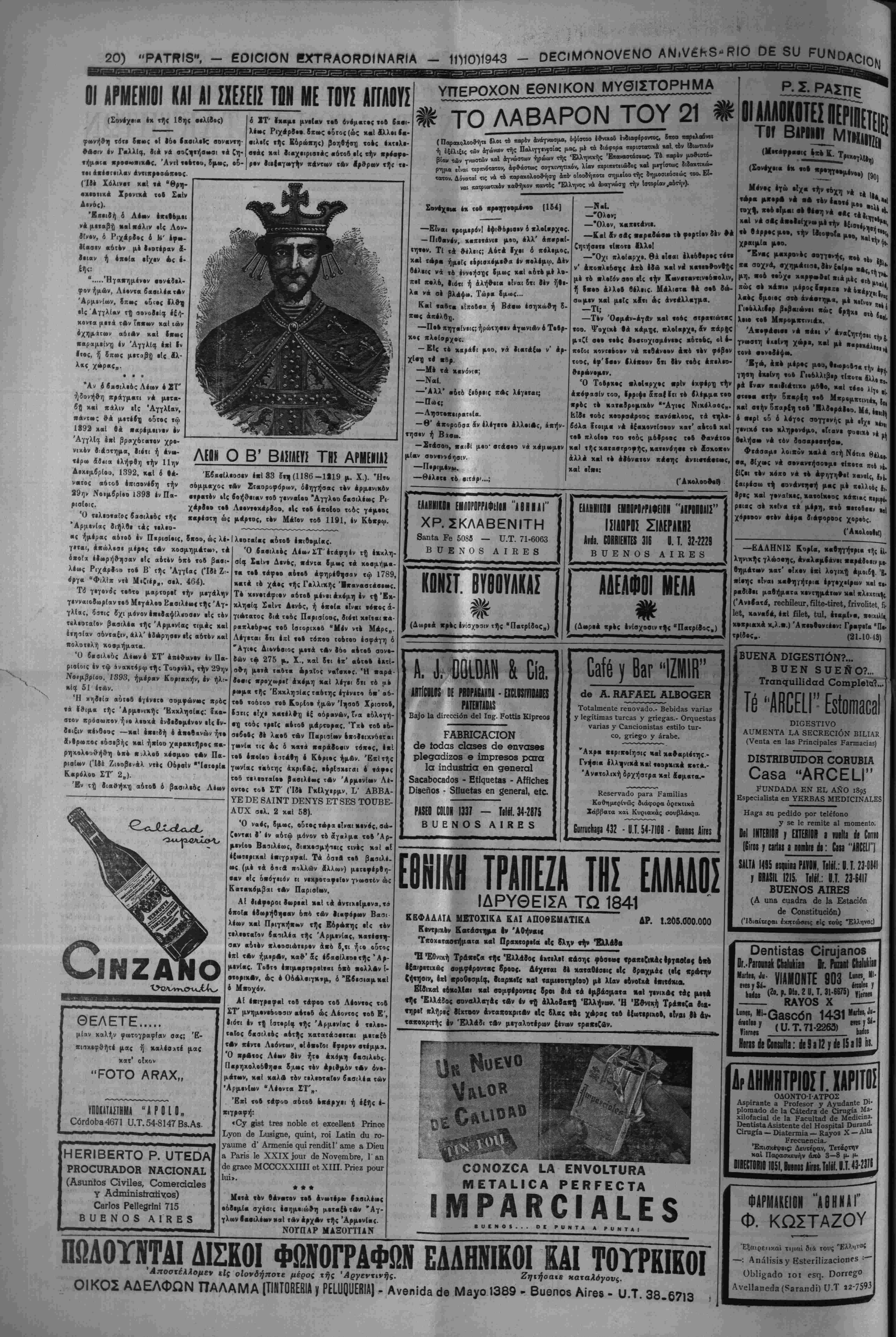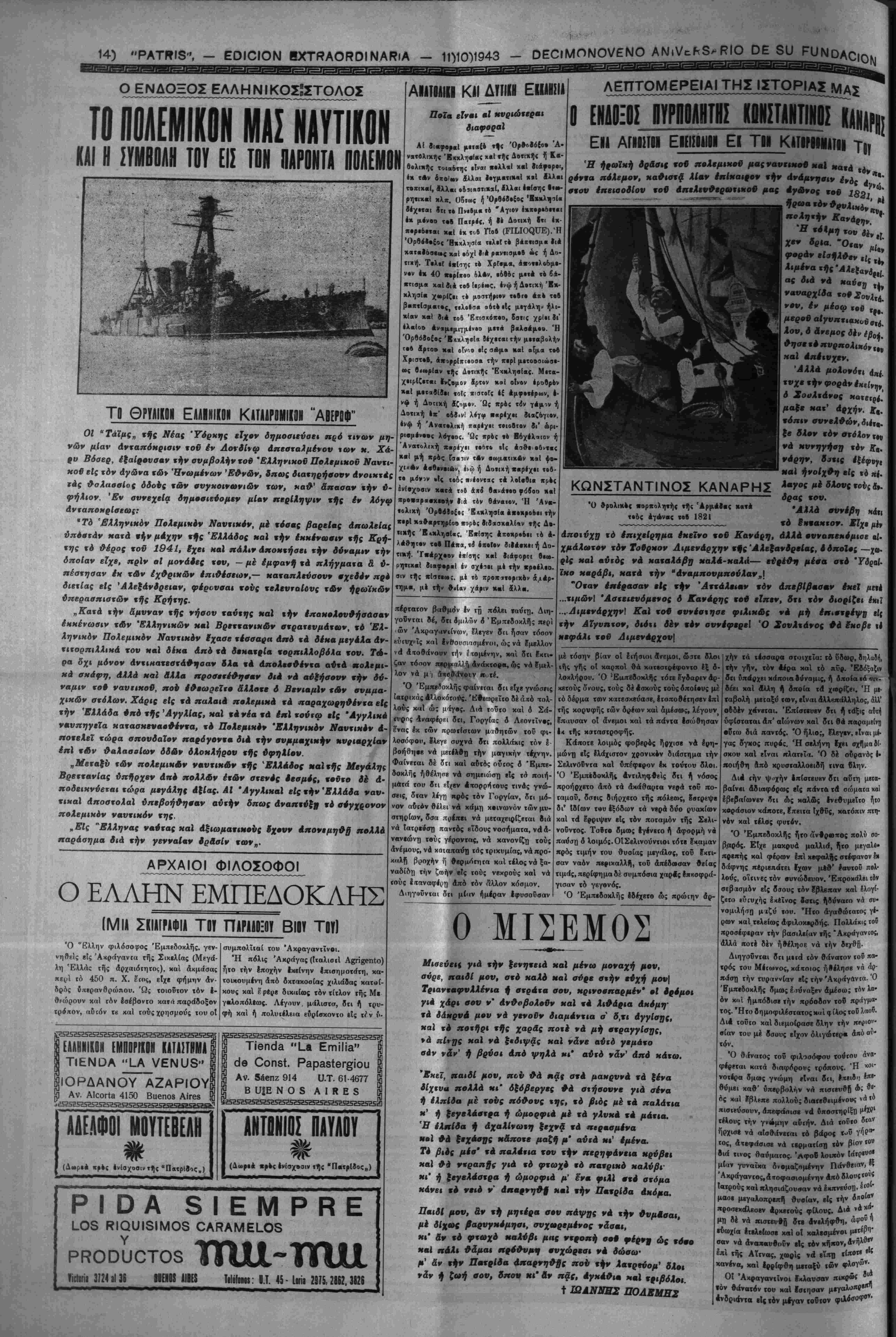 «ο6 Έλλ«|ν(αμ·5 «ή< Ν·τ(·· 'Α- μερικής, κέμ·«» ομΓν ΙιρμΑ ·»γχ«ρη«ι)ρια. Με«' άγά*«|ς χαί έχ«ιμΥ)βε«ς ΣΩΤΗΡΙΟΣ ΔΗΜΗΤΡΟΠΟΓΔΟΣ Έμ μέρονς α»γβ§γάτον μ·ς (Ό νεαρός εχ Ιαμοο σ»νεργά«ης μας χ. Ί»»*ννης Β. Στ·θιν1}«;, «οβ δ··ίβο«·λλά- χις ή "ΠΑ¬ ΤΡΙΣ,, ||η. μοοίευσε Ιιά- φ·ρ« «β«ριοβ- τιχά «οιήμα- ««, καΙ«ο· 6. κ·(οο, έ·1 »ί οοκαιρΕα «ής *~χ·ι>«< *ν« ε4τ·χεΓς γονεΐς χαί άνάΐοχον ιολ ν·ο·ε»τίβί·ο. Ασ&ένεΙς Την 28-ν κ«ρελ*όν«·ς Σε««ιμβρ(··, ή βομ- ■α·ής 'βλλην··ο6λα Αίς Γε«»ργ(· Δι·νο·ίβο , ο«έ·«τ| έκενοχΙ, έγχ·(·ΐ|σιν σχεεληχοιι 81«ιΙ·«, καΐ Ιαίνει ήΐη χρος ·λτ]·«} α4«ής Γασιν. ΧΡΗ-ΤΟΣ ΠΙΤΤΑΣ &» Οίρ.:ίΙι Ι» ίπτ»κ ιπ οβπβγιΙ (Ιθ ΚΙΗΙΑ008 ΡΑίΕΟίΟΒΟδ Ο.116 67, Ν0. 523;— ϋ.Τ. Ρλζ 1464 -Α ΠΑΤΑ — ΒΕΡ. ΑΕΟΕΝΤΙΝΑ ■ΜΜΜΐχ^^ΤΙίΜΙΙΗ ^,^ •μέν «ήν •««ογρα·1αν, μ·ς «χέοτειλ· «ήν χα««τέρ« έ·ισ·ολήν): ή) Ανβ1ΐ8ηβαα-'Αργεν«ινής, Όχτ·4'·(ος 1943 'Α|ιέ«ιμ· Κδριε Β.ΤρετχλιΑτη Ί«1«| 19ΐ| έκετ·(φ «ί|ς »|ρ4σε·ς«ής «Πα- «ρΙΙος», εδχομαι ϊΐτε,ς έβρτάοη χ«1 «ήν έχα- «νταετηεΐβ. «ής έθν.κης σΐ«Ιι·Ι··μ(«ς Με»' »«ολι|ψεε·ς 4 ·1λβς οας ΙΩΑΝΝΗΣ Β, ΣΤΑΣΙΝΗΣ "α!λ»1 *ήν Γαβίχαν «ής •Ι , 27 Ι·*τ. 1943 'ΑΙανάο.εν ρ Δι«ο»ον«ήν· «ής Έ.τ,μερΙΙος Είς Β,βέν.ς "Αΐ-ες 'Αγ««η«| »{λβ β. ΒαΓραχλ«·«η Σ·ς ««Μκ·λ· νΑ ΙεχΙή,ε «ά («.,,« ογ. ρτ^ρ χ«1 τβς 4γκιιρ|(ο»ς.»χ«<|ι,οίιΑ 19,ν έ«έτ.,·ν Α»· «ή«έκί·β..ς «««-{. μας ■Πατ-ΙΙβς,. 'ΑληΙής φ(λι, ».1 ο4μβ·βλος ««ν ο.*... τής Ν·«1·. 'Αμ..,χ,ς. Αν«(,..β<.. χ.«ιηιβ6ς ,,Ας ^ ή έ.ι8·μ«., 4ν Μ-¥ τ§β-ν , .Ικ.ν.μ,χ.ν Ι —ΔΠΟ ΤΟΓ ΜΒΣΟΝΓΙΙΙΙΟΓ Μς σεχ.Ις Βέμ*νης, Ι4η< τρέχοντος Ηη * βεται έν Ισχ4Τχ«·'Ικασαν την 'Αργ,', λεγομένη «Ιερινή £ρα,,«ρ·χ(,ρ,>Κι,Ι(,