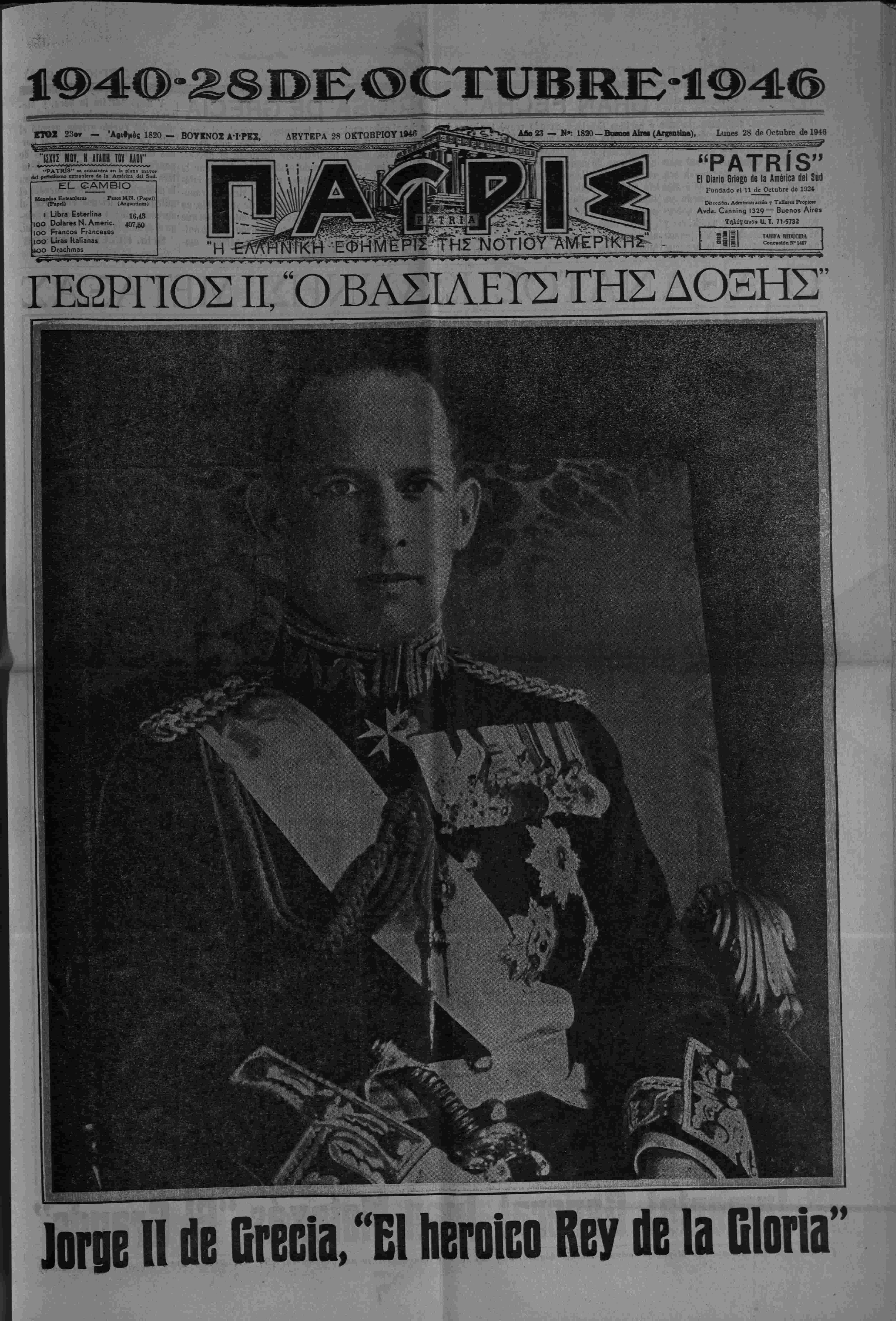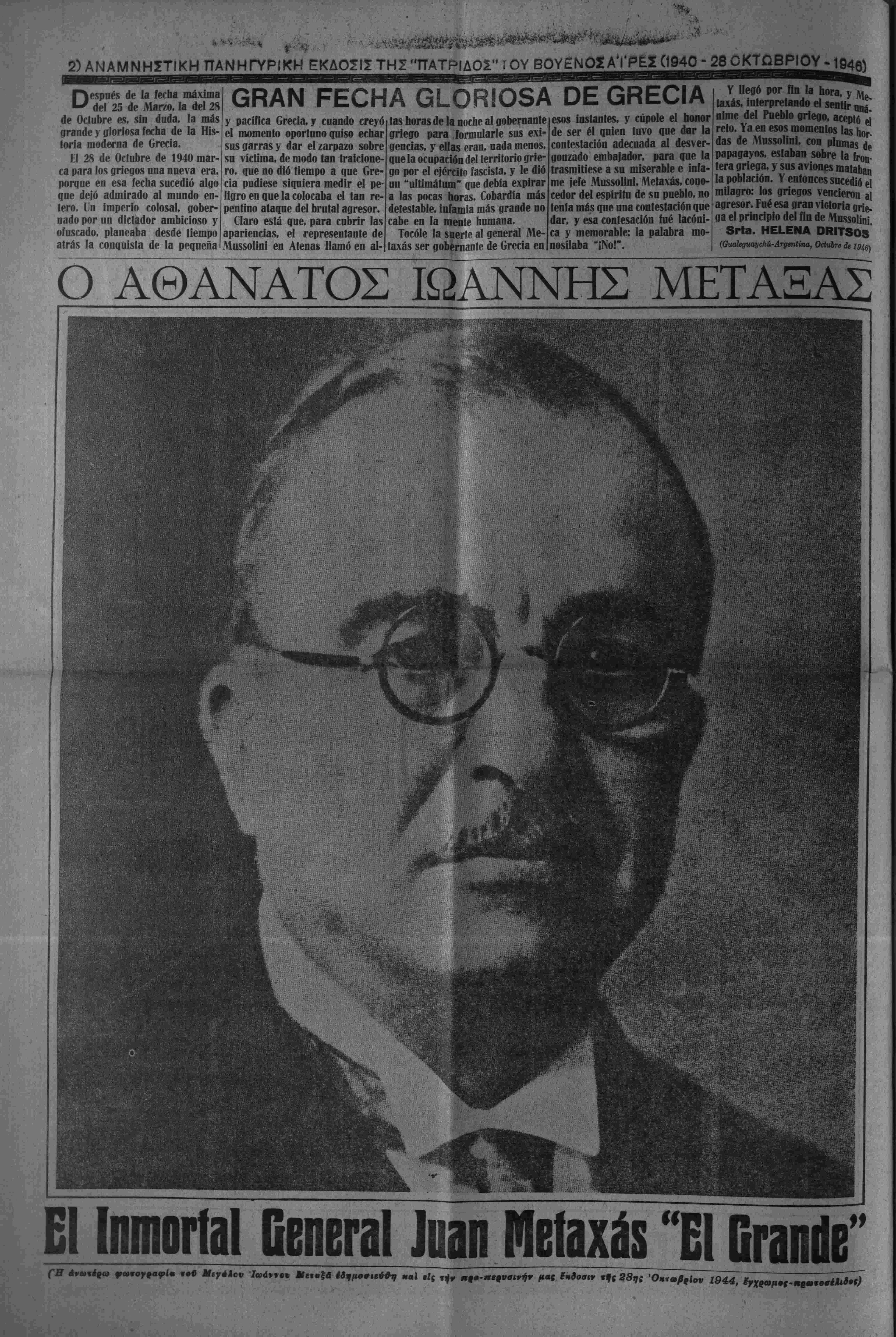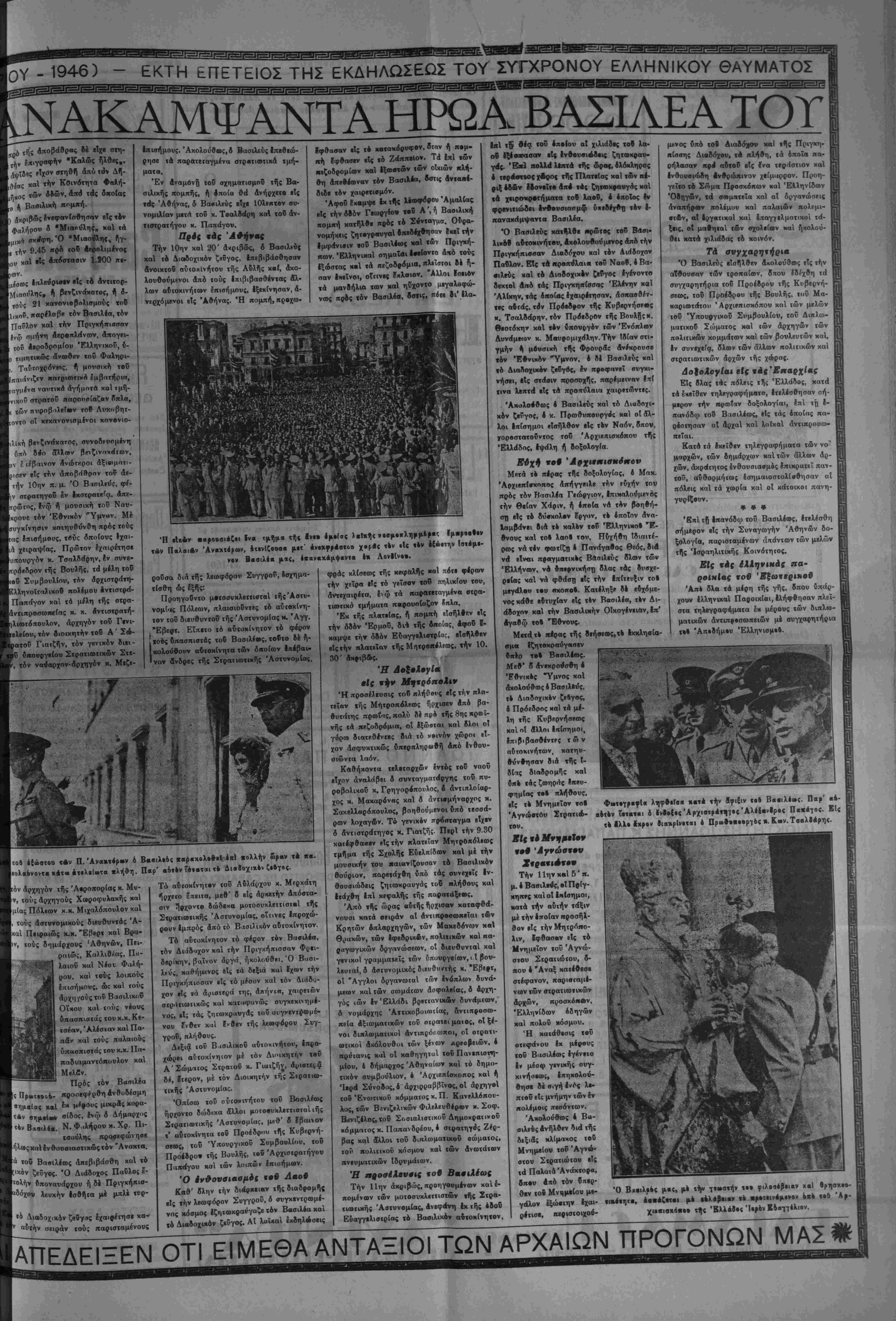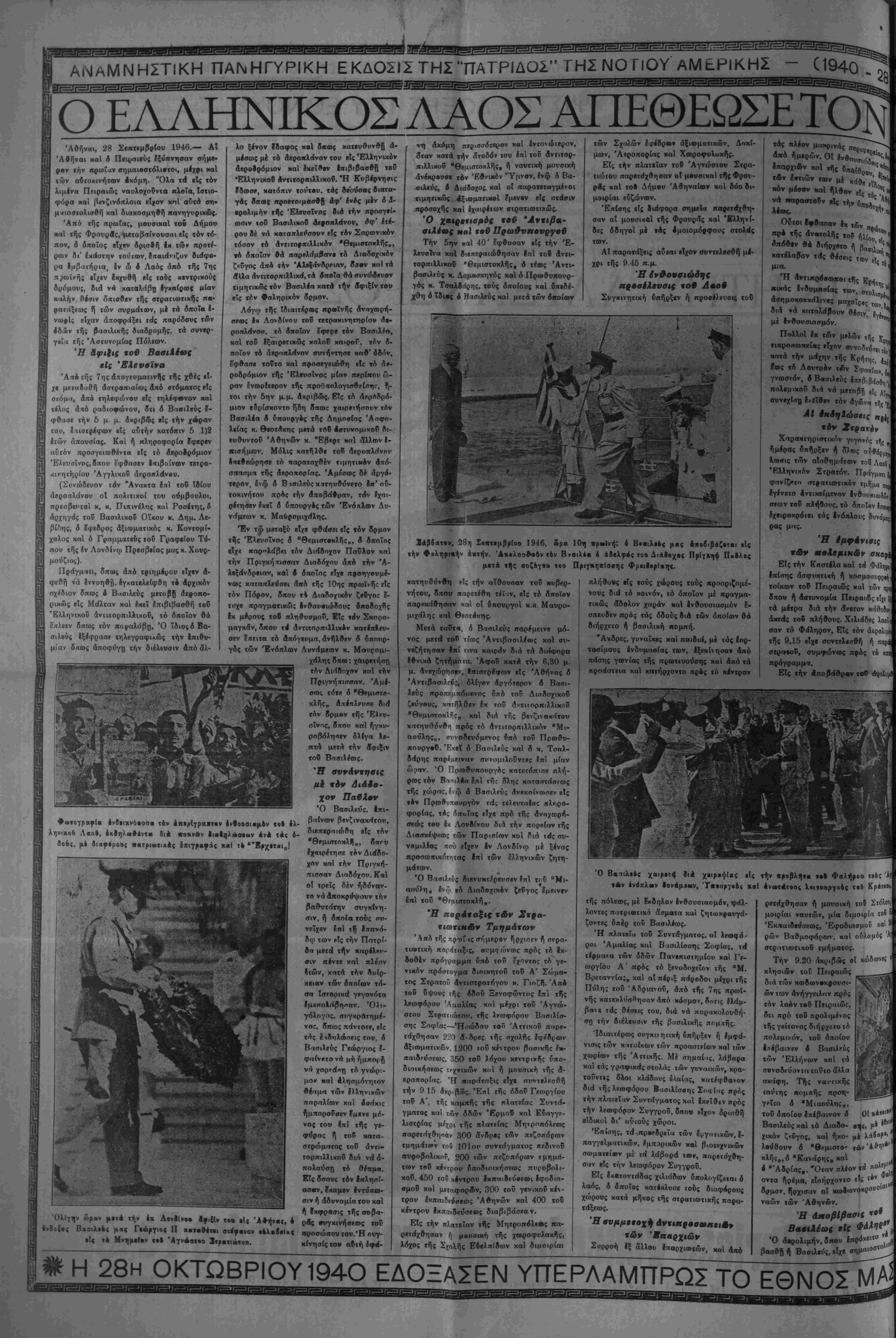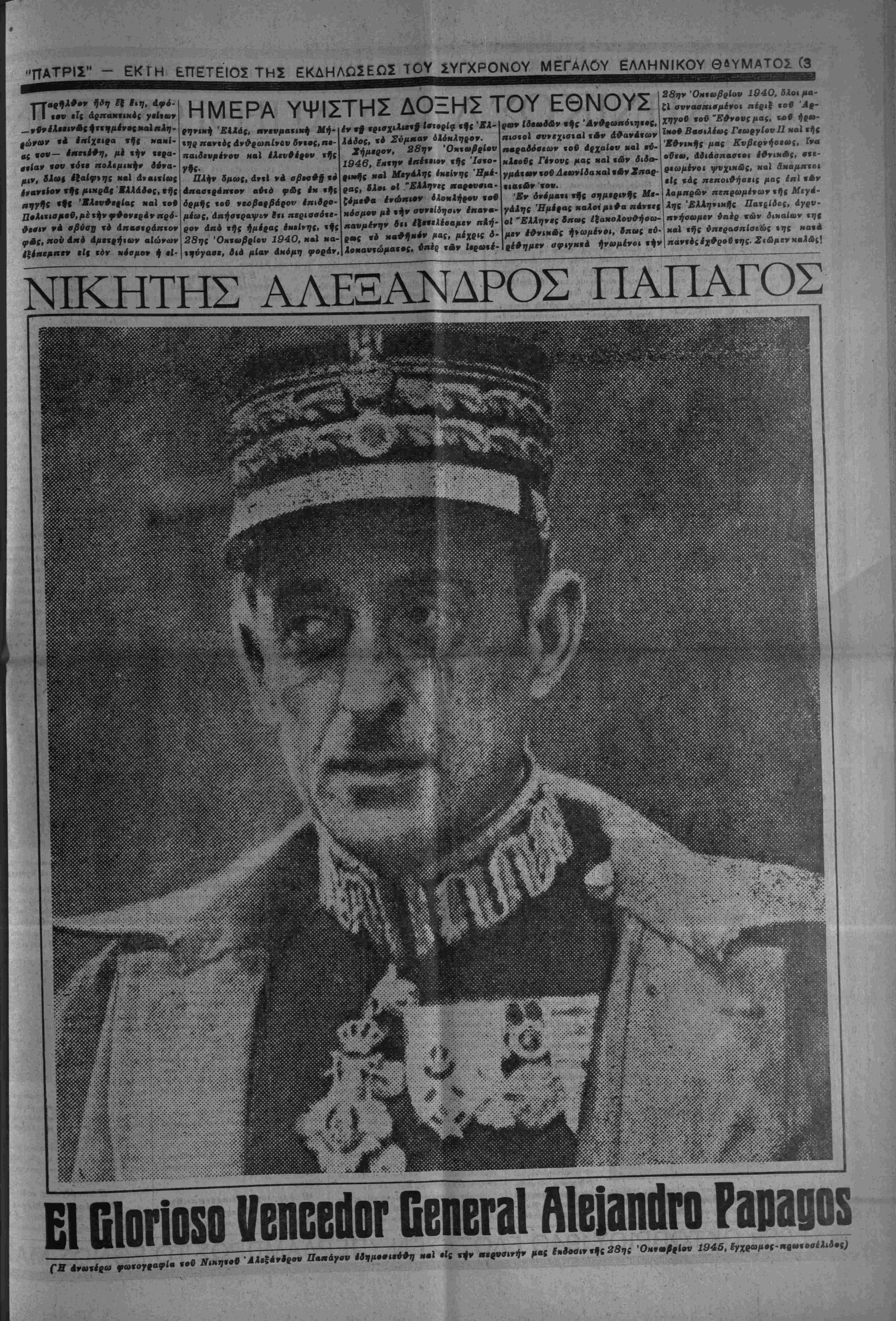 «#< '^λευθειίας καΐ το» μϋ, μέ «»)ν ·#ονερ« ν πρό- θεετιν νέ) #βι)αη το (Ιπβσΐράίτΐον φΛζ,Λθύά*· 4μβ%»ή%ων «Ιώνων έξίιββμηβν εί| εόν κόσμο» τ) «Ι- ΗΜΕΡΑ ΥΨΙΣΤΗΣ ΔΟΞΗΣ ΤΟΥ ΕΘΝΟΥΣ Είΐβς, —',υ«αοκτ) ή «ηρ πειννόε; 4νθ«ωηίνύυ όν«·ς,π«- δ καΐ έΑεν*έ9Θν χής Πλήν δμως, άν<1 νε σβ««#0 «ου νε*οβ··βαρον έηιδρο- μέως, ρον 28ης Όκτωββίου 1040, κ·1 κα- , διά μίαν άκόμη φοράν, ρ #ς ΊΓΛ- λβδος, «β ΣνμΜΛΨ όΙΟΜλη^ον. Σήμερον, 25η ν Όκ«β»β·ί·υ 1*946, £««ην έπέεειβν «ής '/βνο· ·ι·*ης καΐ ΜεγάΑης έκείνης Ημέ¬ ρας, ίλ·» 0% "ΕλΑηνις «ταρ·υ«τια· κόσμον μ«τ «ι)ν σννβ/δησιν <ηα»«- πανμένπν δκ έΙ***λέσα,νβν πΛή- ρε*ς «· κβ#η«·ν μας, μέχρις δ- ρων ίσεεοδών «τ)( Άνθβωπόιηεος, πισνοΐ «ν*βχΐ0ΐα· ν4ν (Ιθανέίνων *»β(αι5όετεων %οΰ Λςχαί·ν κ«« ·τ}. κ1*οΰ( Γένους μας καΐ «ών διδα- γμά%Φ»ν %οϋ Λβεανίδα καΐ «ών 2ααρ· Μ«- γάΐης Ήμίβας καΑοίμιφα ηάνχβ$ οί "ΕΑληψ§ς δαως έξακολουθήοω- μβν έθνικάΐς ι)>ωμένοι, όπως βύ