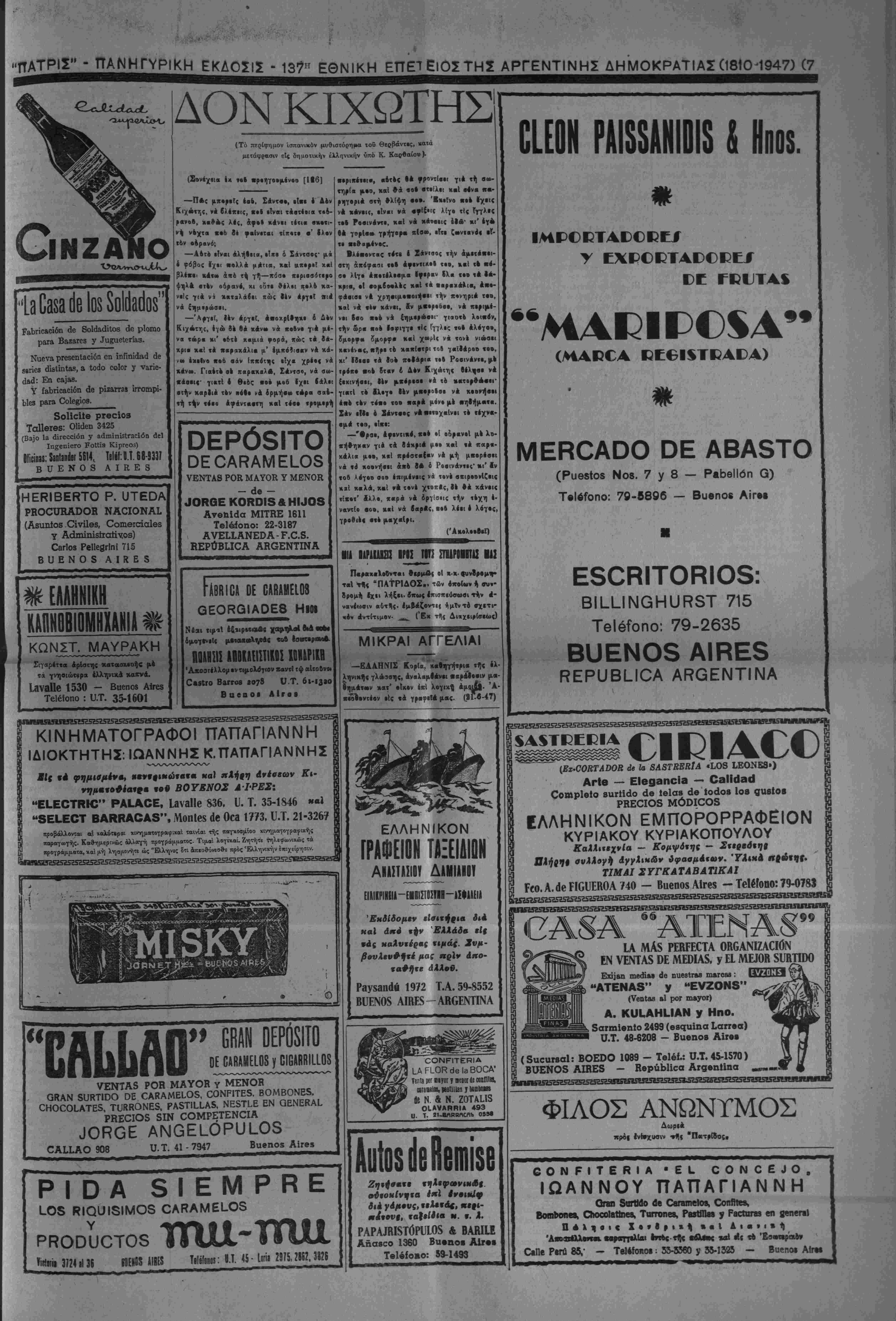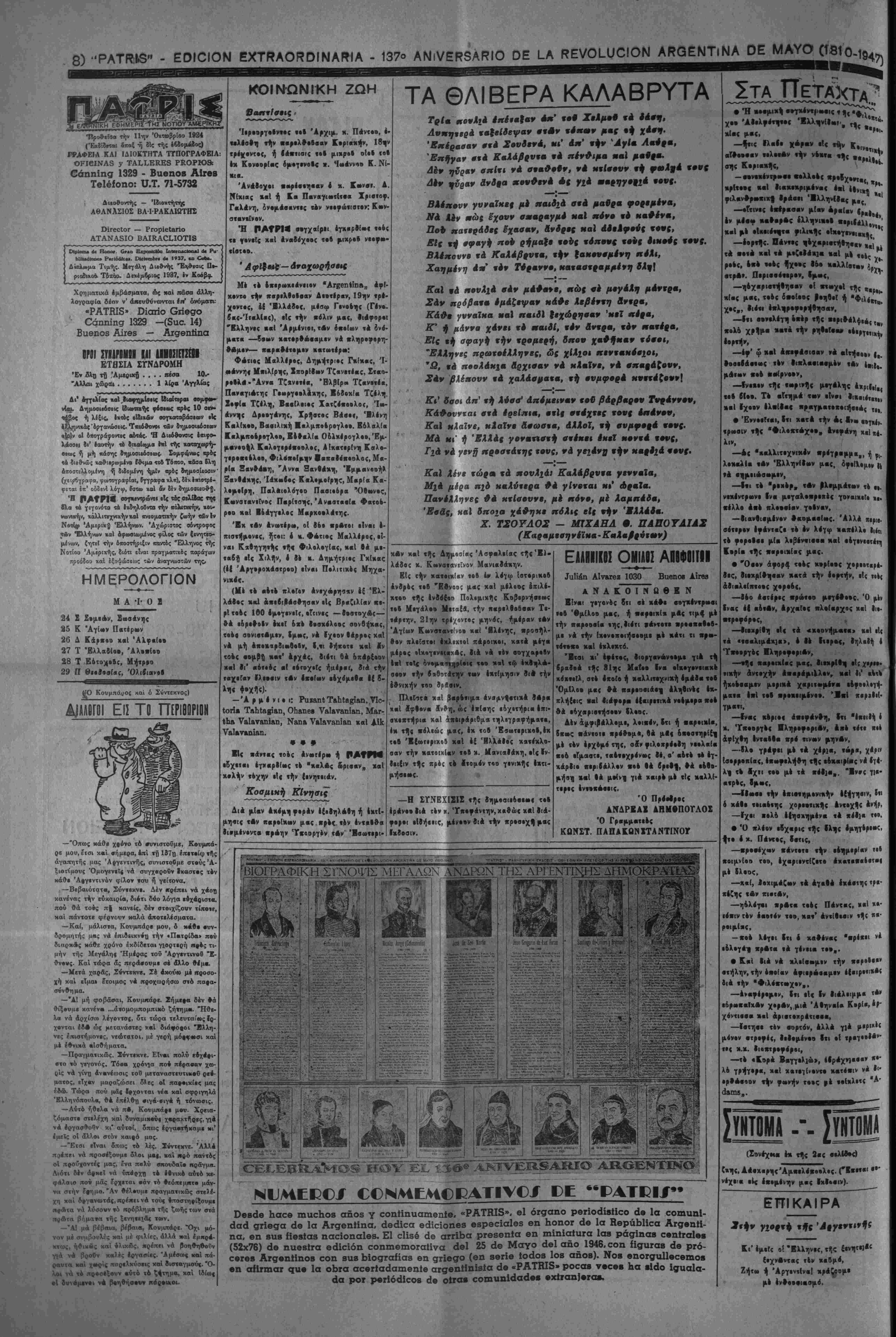 Βκα·ς βάντοιε «ροθνμ·, β* μ·< μέ τ4ν έρχβμέ της, αί* φιλοχεόοΐη νεολαΐα «οο εΤμαστε, τ«4«·χρένε*ς 14, ο' α««* «ο 4γ- χάρΐιο «εριβάλλον ·ο· ·έ ίρε·|, «α *4·· μήιιβ, καί Ιλ μοίν| γιά χαιρο μ! «Ι« καλλ(- τερες έν»·χε.·εις. Ό ΠρνοΙρος ΔΝΔΡΙΑΧ ΑΗΜ·Π0ΤΛ0Ζ Ό Γραμματεος ΚΩΝΣΤ. ΠΑΠΑίΟΝΙΤΑΝΤΙΝΟΓ ΓΒ1ΟΓΡΑΦΙΚΗ ΣΓΝΟΨ1Σ ΜΙΤΑΛΩΝ ΡΩΝ ΤΗΣ ΑΡΓΕΝΤΊΗΗ Στα Κ·'ν·*ι·4, Ή μ* 'Δ»·λ·4«~ΐο( χ(α< μας, -ήτις Ιλ.ί. νώραν είς αΓθοοσαν «·λε«*ν «ήν ν·κ«α οης Κοριαχής, -σ·νοχ4ν—ε>σ· ·ολλ·4< κρΙ«ο»ε «αί 8ιαχεκριμ4να< 4·1 φιλαν·»ε.«τχ| 8ρά··ι Έλλην||.ς —οίτινες »«ερασ·ν μίαν 4·α(αν 1ν μΐα·· »α».ρ·ς ίλλ-νι»·· ·ι§ιΐ4χ·,,( «αί μλ ο!χοι4««4<α φιλι«τ)ς οΙ«ογενβιακής —ε·ρ«ή(. Πάντες ηΙχ·ρι·τή·η,,ν ^ «« ·ο«· καί «α μ·ζ·Ιάκια καί μ| ,Α|ς * ρ·»<, 1«· «ο*ς ή·χ··ς Ιοο «αλλΐσ»·» *Γ σ<ρα)«. Περισβέ«ερ·ν, Ιμεις, —ηβχα·ι»ΐτ]·ησαν οί «τε·χοΙ «ής κ(ας μας, τβ·ς 4αο(·βς ρθ( ή "Φ <», Ιι4« έ«λτίββ·βρτ}η —-Ι»ι σονελέγη ο«έρ «ής ·ν.ις ,„ έβρ«ι|ν, —έ·' φ «αί άβεφάσιοαν να αί«ν].Μν »·ο«Ιάσ«··ς «όν ·ι*λασιασμέν | μοΊτεεν «οί ••♦ίρνββν, —Ινεβον ««€ «ε»βι»·< μεγάλης έχρι|,|,( «·§ 6(ο·. Τβ αΤτημά «ε»ν είν«ι Ι καΐ Ιχοον 4λ·ΙΙα« πραγμαι·χ • Έννοεΐ'ται, Ι«ι χατέΊ «ήν ·ς Ινε* «ρεοοιν «ής "•(λο««ά>χο·ιι ένεφάνη χ.) ,4.