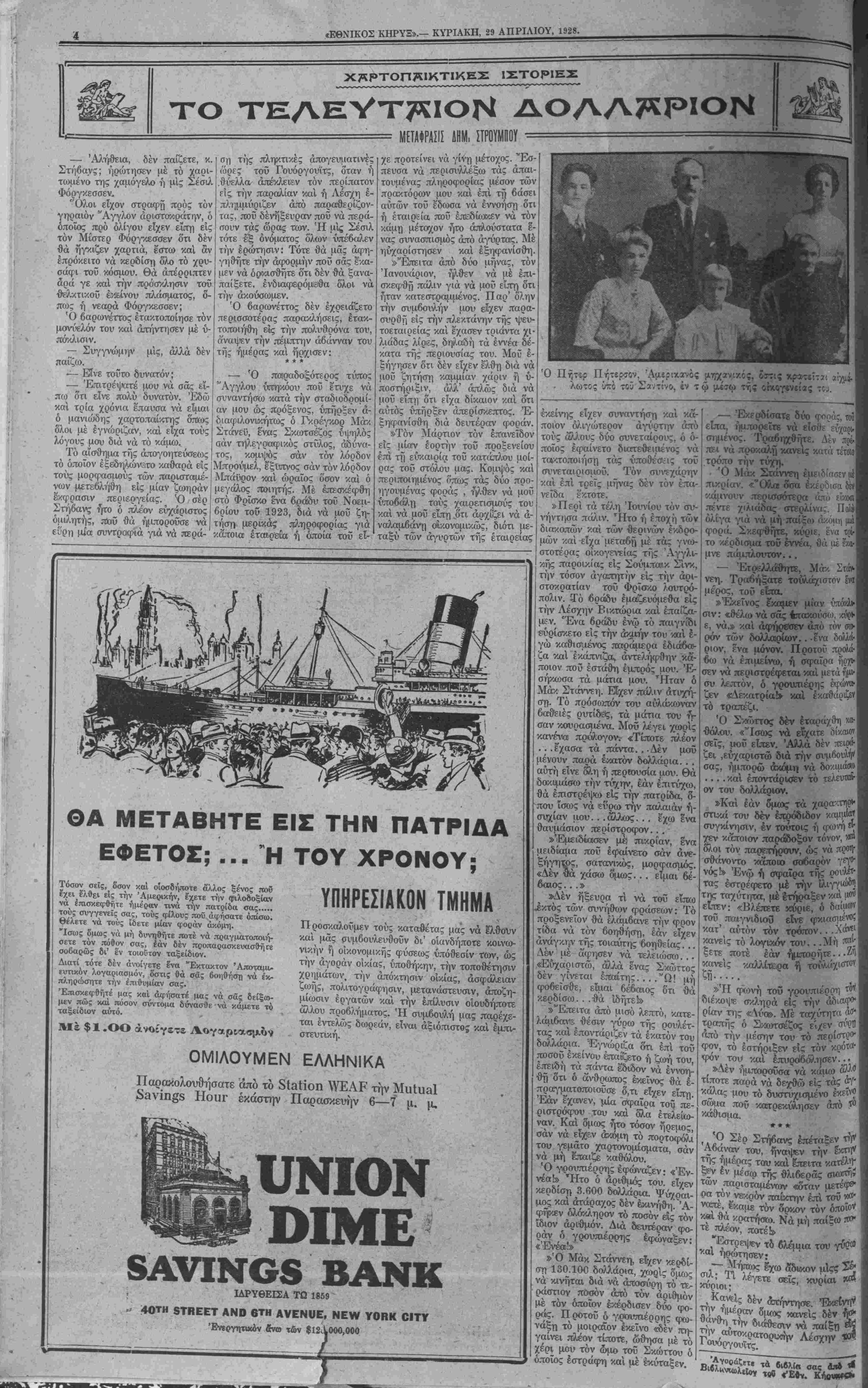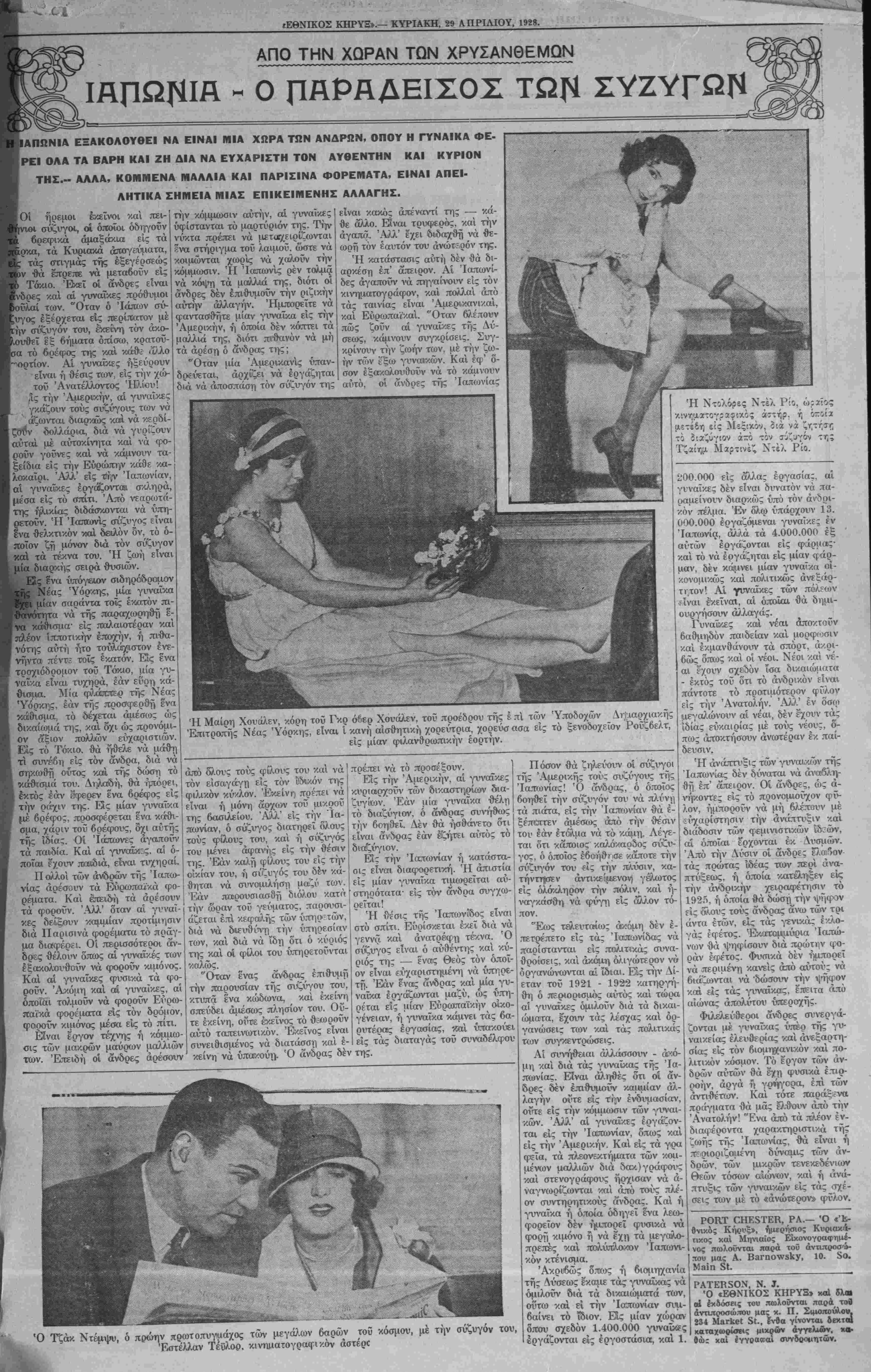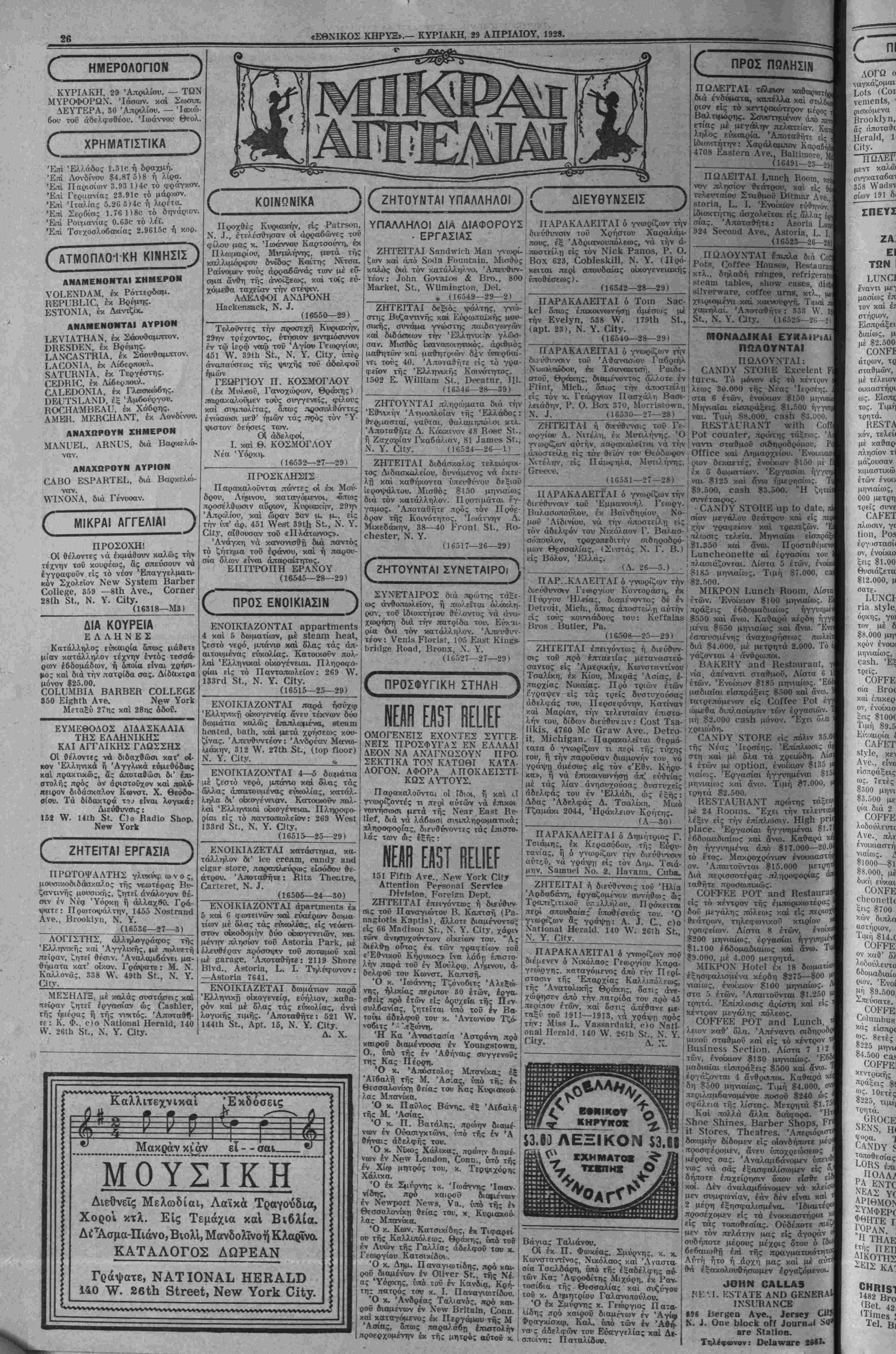 ΝΕΥ ΥΟΚΚ, ΚΥΡΙΑΚΗ, 29 ΑΠΡΙΛΙΟΥ, 1928