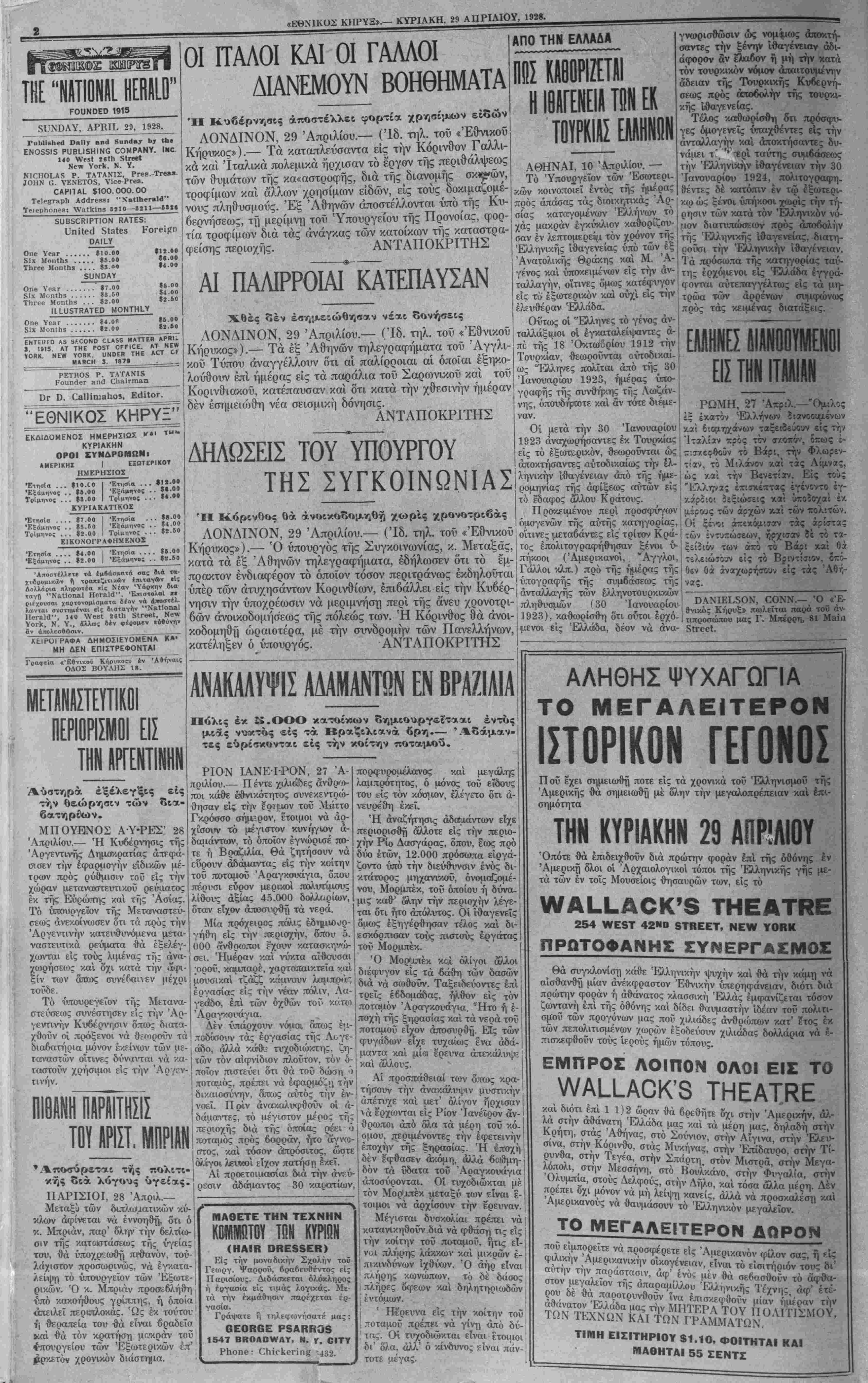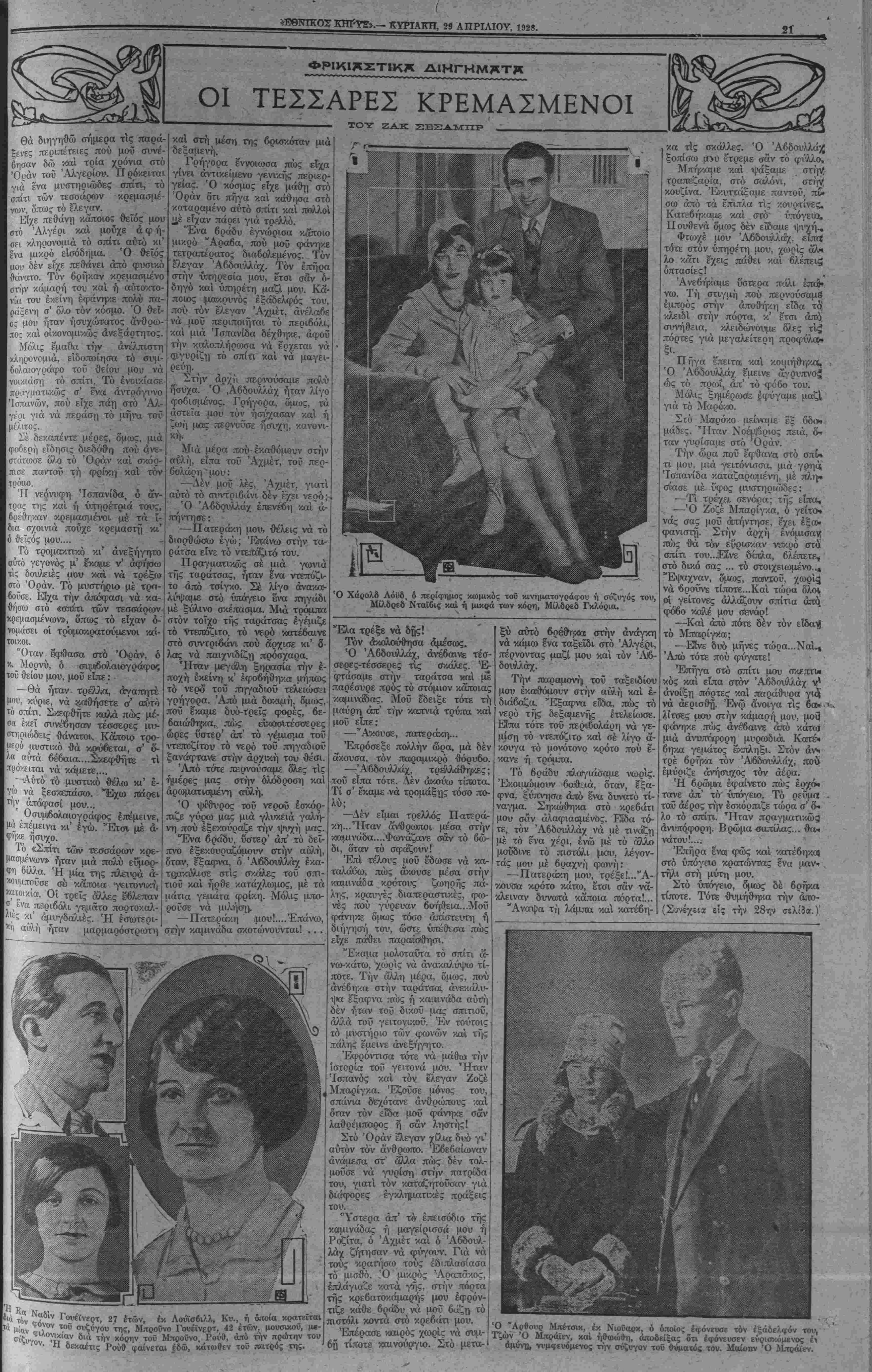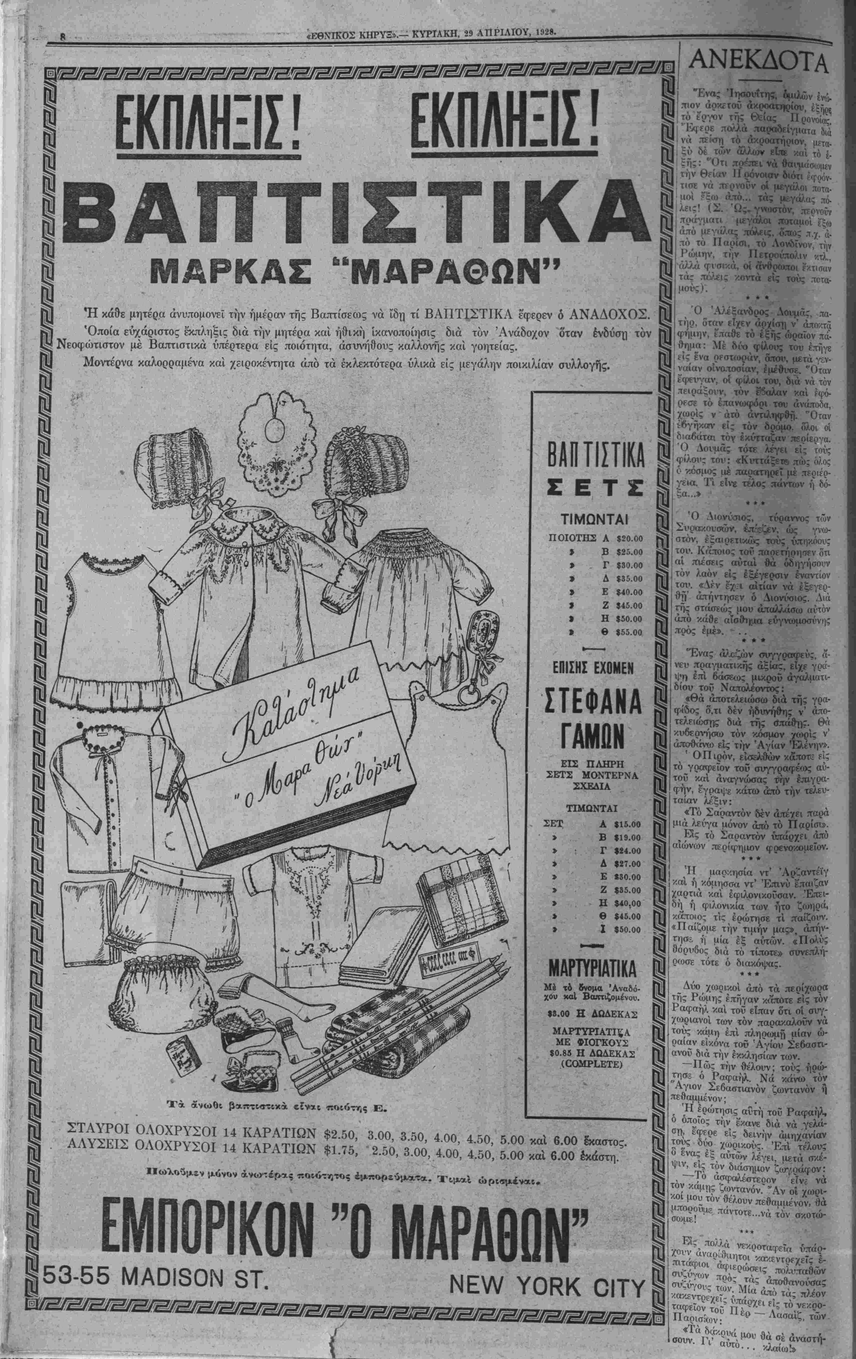 ΝΕΥ ΥΟΚΚ, ΚΥΡΙΑΚΗ, 29 ΑΠΡΙΛΙΟΥ, 1928