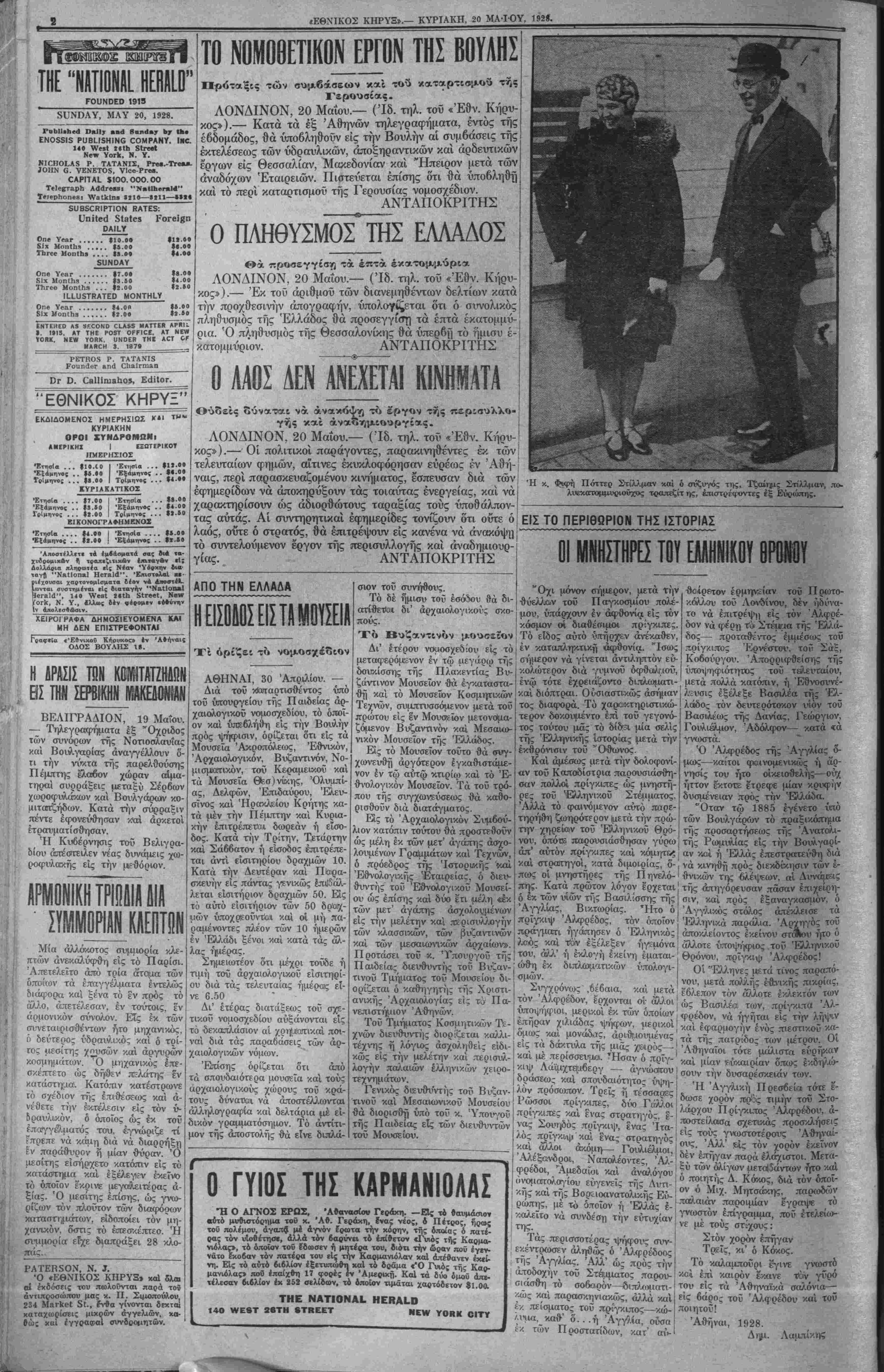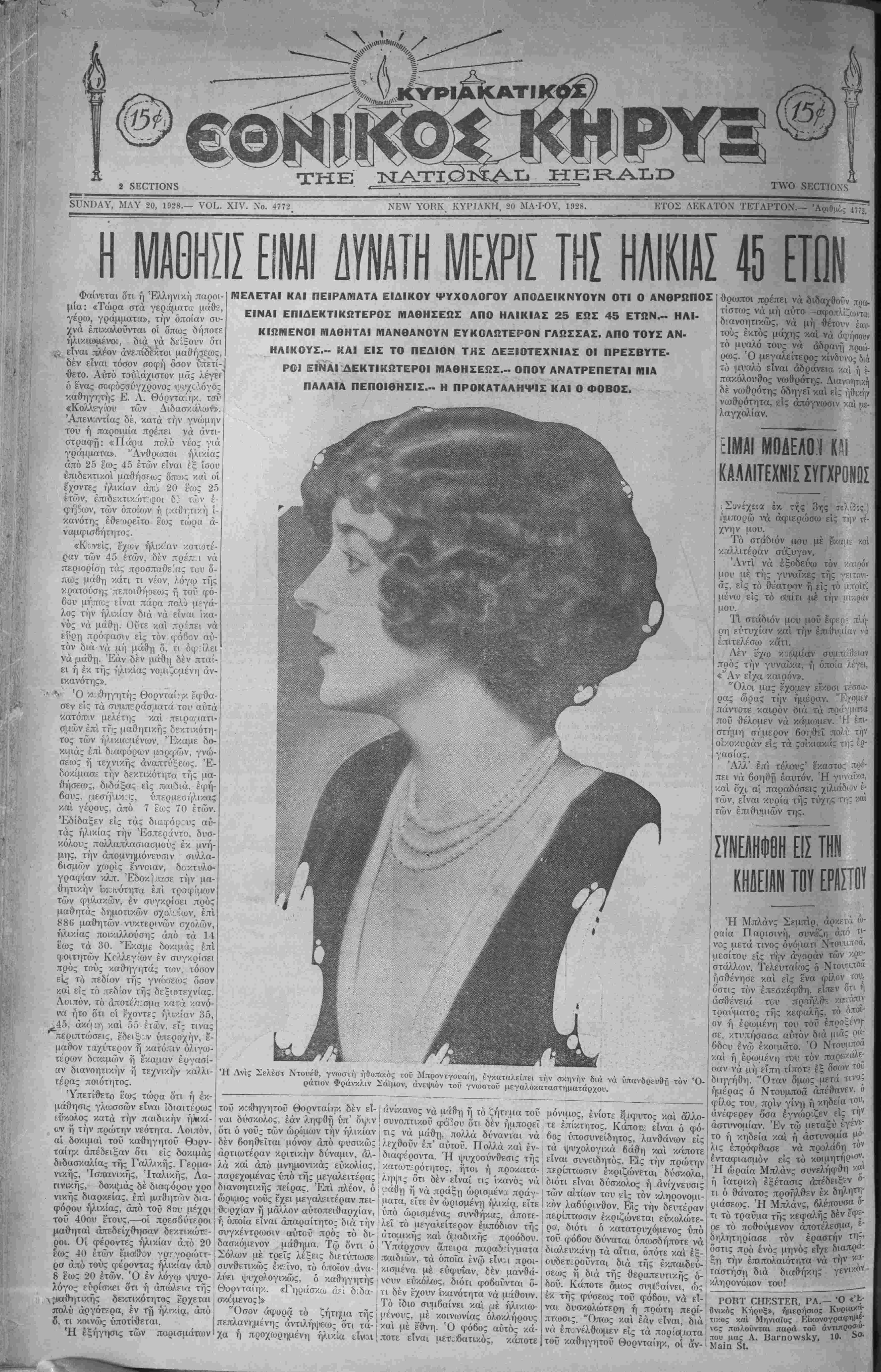 ΝΕλΥ ΥΟΒΚ ΚΥΡΙΑΚΗ, 20 ΜΑ-ΙΟΥ, 1928.