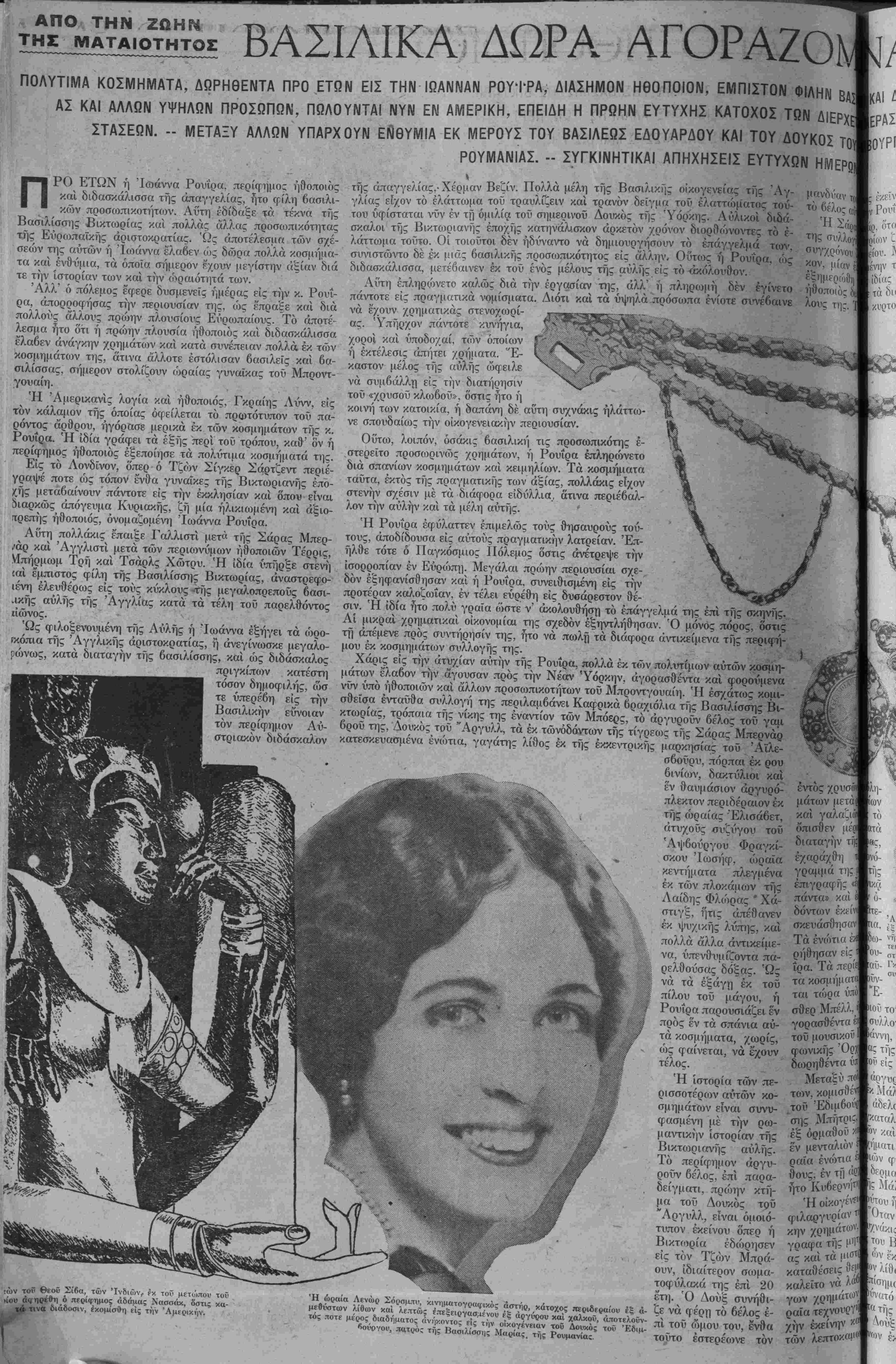 τε δμως 6 Λώγκραν νπερί<τχυσε τοΰ άντιπάλου τού διά μιας θαυ- μασίας σνστηματικής έπιθετικότη- τος, χωρίς δμως νά δννηθτ) νά ε¬ πιτύχη νάκ άουτ, παρ' όλην την άπεγνωσμένην πρός τουτο προσ- πάθϊΐάν τού. Την πυγμαχίαν παρηκολούθη¬ σαν μόνον 12^000 φίλαθλοι, αί δέ όλικαί ε'ισπράξεις άνήλθον μόλις είς 18.000 δολλάρια. Τουτο άπο- δίδεται είς το ότι οί φίλα&λοι δέν είχον την αρίστην ιδέαν διά την ίκανότητα τοϋ Λάτζο, όπως διεκ- δικήση, τόν παγκόσμιον τίτλον έ·/ τοΰ ύπερτέρου τού καί πλέον έπι- δεξίου πρωταθλητοΰ, ένώ τα πράγ ματα άπέδειξαν τό εναντίον, παρ ΒΜΚΑ ΚΚΙΗΙΚλπ ίίβΡΙΙ- ΖΟϋΝΑ ΑΠΟ ΗΒΗΕΐΊ (Στ.'νέχεια έκ τής 16ης σελ.) γνωστοΰ είς τόν κόσμον των νυ κτεοινών λεσχών καί των «σκαν- δάλων», ύπ' αύτοι δέ έδωρήθη είς την ήθοοΜΗΟν. Ή ιδία εχει προσέτ καί μίαν περίφημον πόρπην. 'Η 'Λενώρ Σόρσμπυ, έτερα ή- θοποιός τοϋ Μπρόντγουαίη, εχει τό έξ άμεθύστων καί άργΰρου κοί χαλκοϋ λεπτώς έπεξ'ειργασμένον περιδέραιον. Τό κόσμημα τουτο ήτο άλλοτε μέρος διαδή,-ιατος, α¬ νήκοντος είς την οικογένειαν τοΰ Δουκός τοϋ Έδψ15ούργον, πατρός τής Βασιλίσσης τής Ρονμανίας. ..,-, ^-----------1=, . ^ _ Ή Μίςς Σόρσμ-υ προσέτι εχει τα έξ άγάτου ένοίτια, κατασκευαττθέν¬ τα έκ περιδεραίου, ανήκοντος πο- τε είς την Μαρίαν, Μαρκησίαν τοϋ Άϊλεσμπούρν. Ή Γκρίϊς Λΰνν εχει τό άργυρό- πλεκτον περιδέραιον μέ τα νομί- σματα, τό οποίον άνηκέ ποτε είς την αντοκράτειραν 'Ελισάβετ τής; Αυστρίας, ώ; καί εν δραχιόλιον των σφυρών, έξ άργύρου καί κο- ραλίον, δώρον τοΰ Ιμπραΐμ Πα¬ σά της Τουρκίας πρός την Σάραν Μπερνάρ. Αϋριο τό 6ράδυ θά γίνουν οί άγώνες στόν 'Ελί.ηνοαμ^ρικανικόν άθλητικόν Σύλλογθν τής Νέας Υ¬ όρκης γιά την άνάδειξιν των καλ¬ λιτέρων παλαιστών καί πυγμάχων σέ διάφορες κλάσεις, όπως άπό τοΰς νικητάς άποσταλοϋν οί μέλ- ?.οντες όπως κριθοΰν καλλίτερον είς τούς έφετεινβύς Όλνμπιακοΰς1 τοϋ "Αμστερνταμ. Πόσοι δμως νοώ&ουν την σημασίαν των άγώ¬ νων τούτων; Εφέτος ή Ελλάς καλείται νά λά5η μέρος είς τοος Όλνμαιακβϋς αγώνας καί είς την Έλλάδα δέν εχονν σχεδόν κανένα μέ ρεκόρ α¬ ι ξιον λόγου όπίος μεταβή. Παρατη- ροΰντες τάς επιδοθείς των έν Ελ¬ λάδι άθλητών μας, ιμέ λύπη μας βλέπομεν πώς κανε'ις σχεδόν δέν §χει ελπίδας επιτυχίας είς τούς προσεχεΐς Όλυμπιακοτ);, οχι μό¬ νον πρώτης νίκης, άλλ' οϋτε καί ζαν πέμςττης. "Ας μή αύταπατώ- μεθα. "Ας μή κρυβώμεθα πίσω άπό τό δάκτυλό μας. Δέν πρέπει οί ά)· θλητικογράφοι καί οί διευθύνοντες τόν ά&λητισμύν νά κρύβοιτν την ά?.ήθεια καί νά βαυκΌλίζωνται μέ δνειρα θερινής ννκτός. Δυστυχώς ή Ελλάς είς τα αγωνίσμιτα στίβου δέν εχει νά παρουσιάση άναλόγους άθλητάς, μέ τσύς γίγαντας ποΰ θά διαγω- νσθοϋν είς την Όλλανδίαν τόν προσέχη Ιούλιον Μέ τουτο όμως·, ουτε θέλομεν νά επικρίνακιεν κα¬ νένα, οΰτε νά άποθαρρυνθϋΛΐεν. "Αν δμως ή Ελλάς δέν έχη έλ« πί5α:ς επιτυχίας είς τόν δρόμον, τον δίσκον, τό πήδημα, τό άκόν· τιον, λιθοιβολίαν κλπ., ό έν 'Αμερι» κη Έλί,ηνισμός μπορεϊ νά ύπερή- νευθΐΙ, διότι εχει νά παροτσιά·· οΐ| πολΰ καλοΰς άθλητας στήν πΛ.'γ» μαχία καί την πάλην, άθλητας ποΰ εΰκολα θά μπορέσουν νά διεκδική- σονν την νίκη άπό τα χέρια των όντιπάλων των στήν προσέχη Ό- Κ'ΐιπιάδα. Οί άθληταί ούτοι, 'βιο- παλαιστο'ί τοΰ Αμερικανικόν Ελ¬ ληνισμόν, προπονούνται έπ' άρκε- τό καιρό γιά τονς αυριανόν; α¬ γώνας. Καί αν λείψονν τα άπρόο- πτα πιστεύομεν πώς θά άναδίΐ- χθοϋν οί καλλίτεροι. Άπ' αύτούς θά άποτελεσθτί ή Έλληνοαμερικα- νική άθλητική όιιάς, ή όποία θά άίΐοσταλη είς την Όλλανδίαν, γιά νά άντιπ.ροσωπεύστι την Έλλ