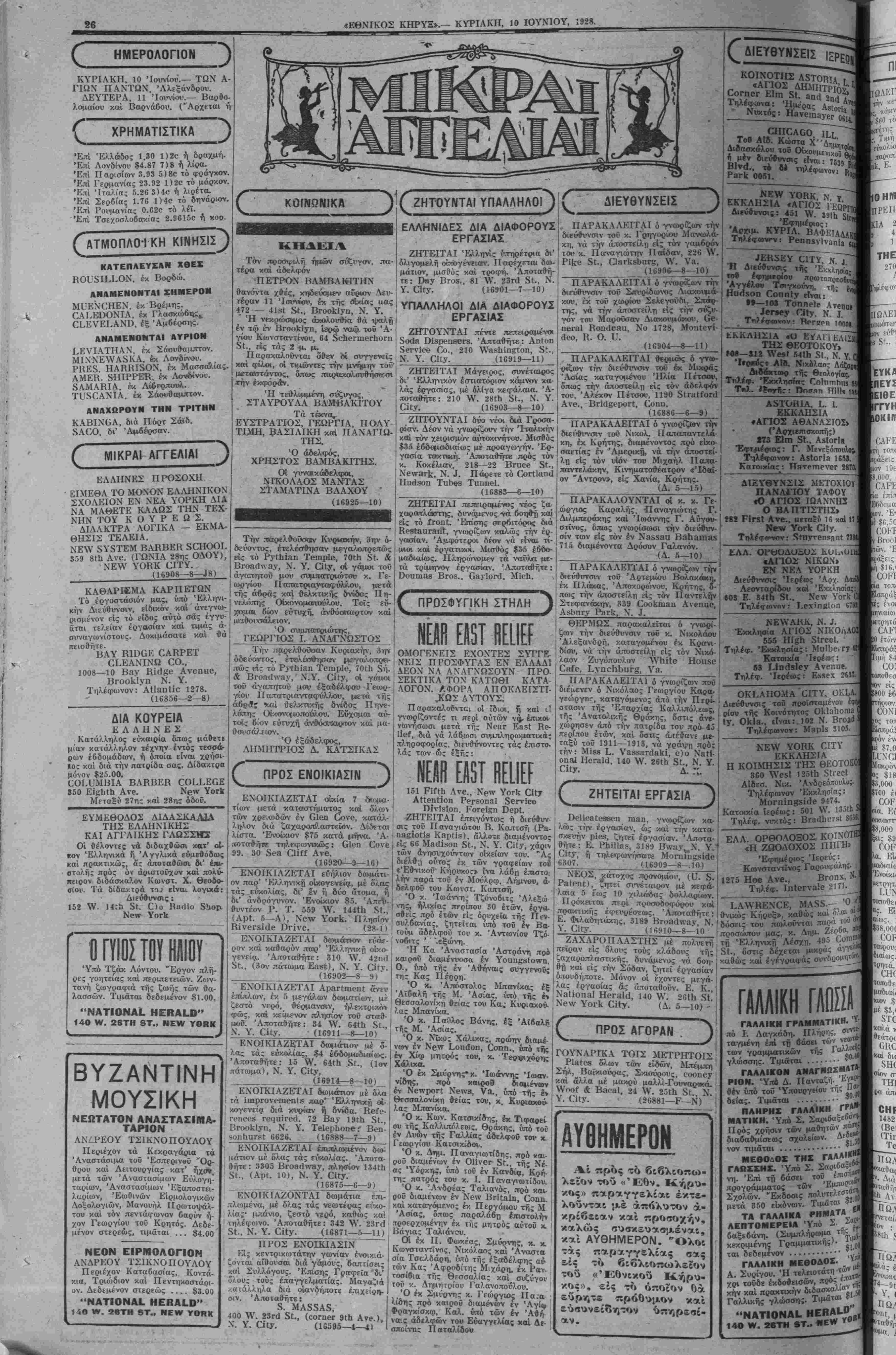 ΝΕΥ ΥΟΚΚ, ΚΥΡΙΑΚΗ, 10 ΙΟΥΧΙΟΥ, 1928.